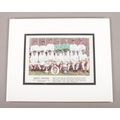 A mounted team photograph of Leeds United, fully autographed. (1964-1965). To include Jackie Charlton, Billy Bremner, Freddie Goodwin and Ian Lawson etc. H:13cm W: 18cm.