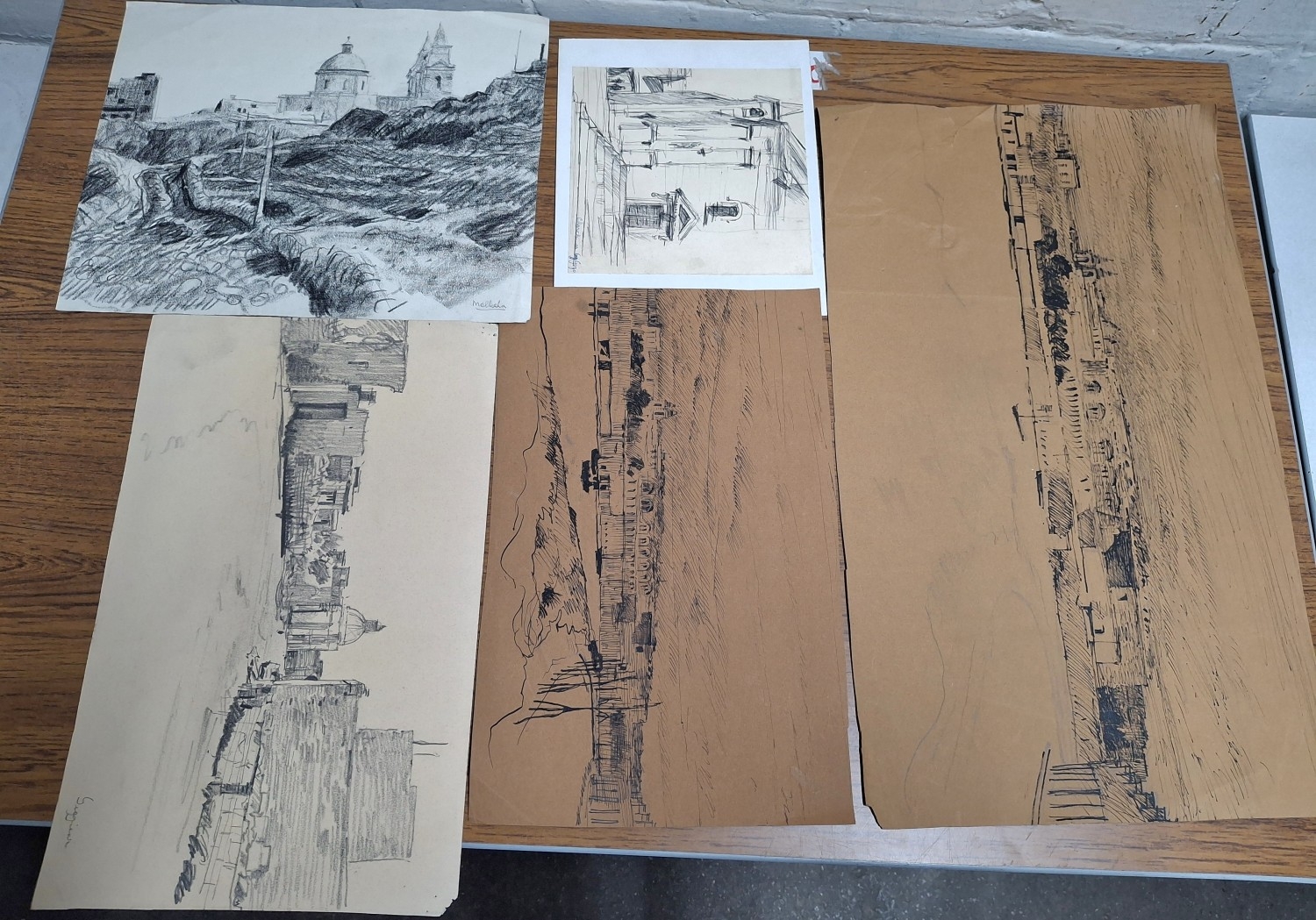 Five, Joseph Pighills (Yorkshire 1901-1984) various sized Pen & ink/pencil sketches depicting MALTA landscapes, all unframed (5).