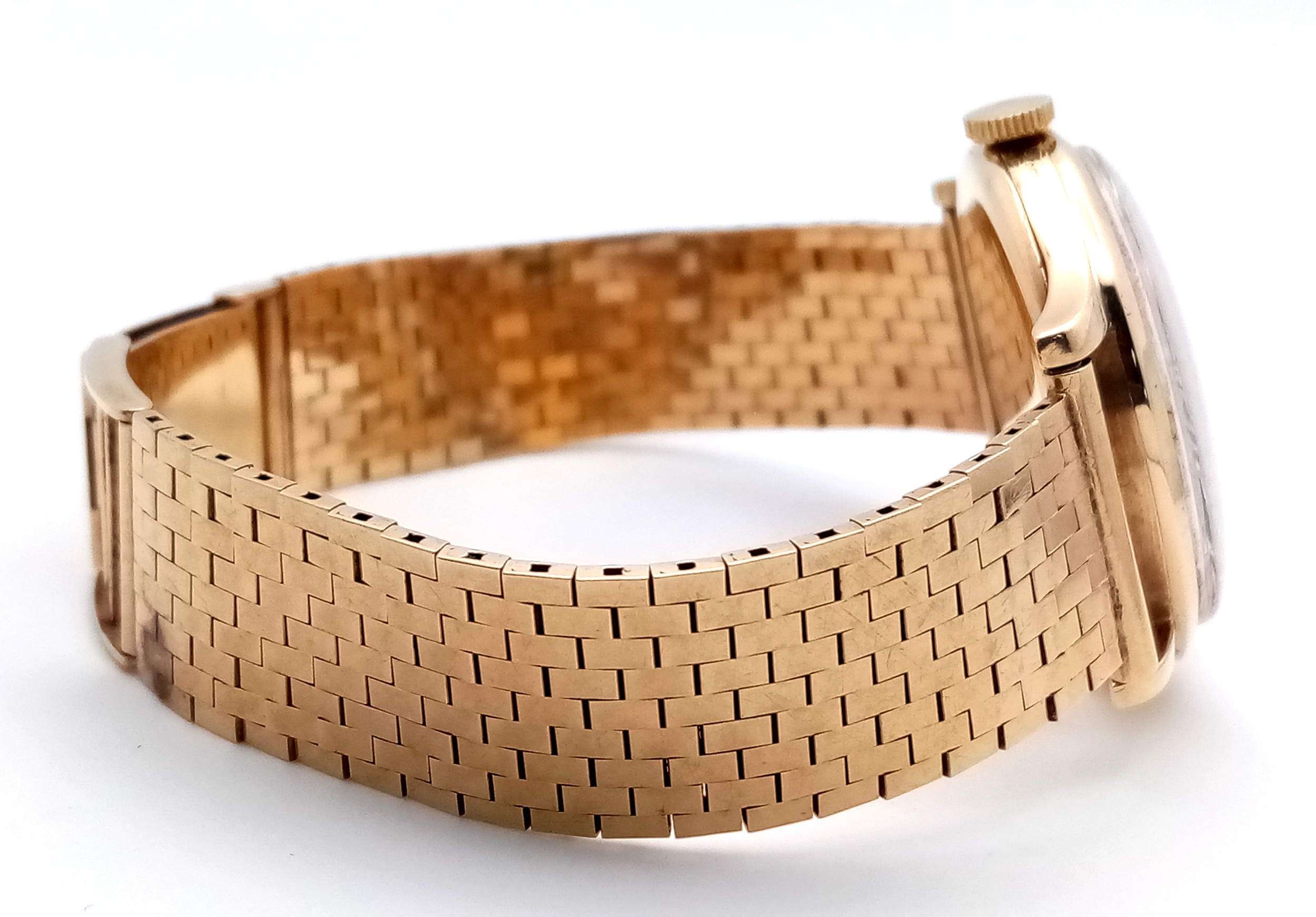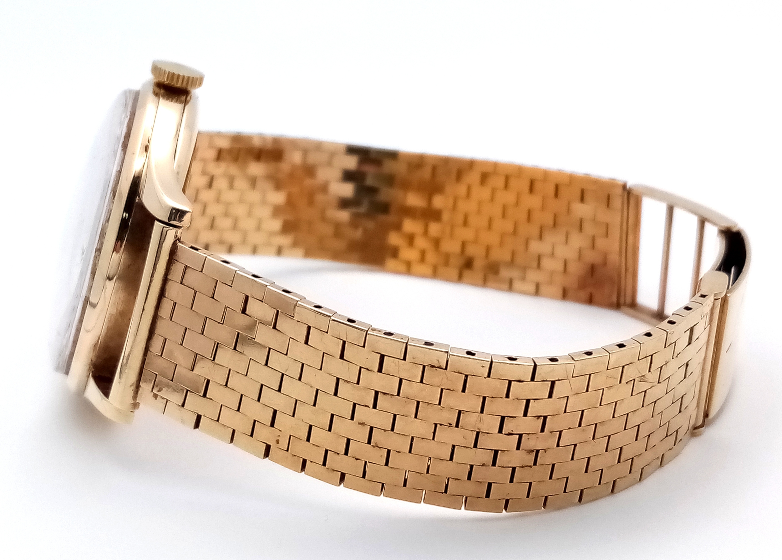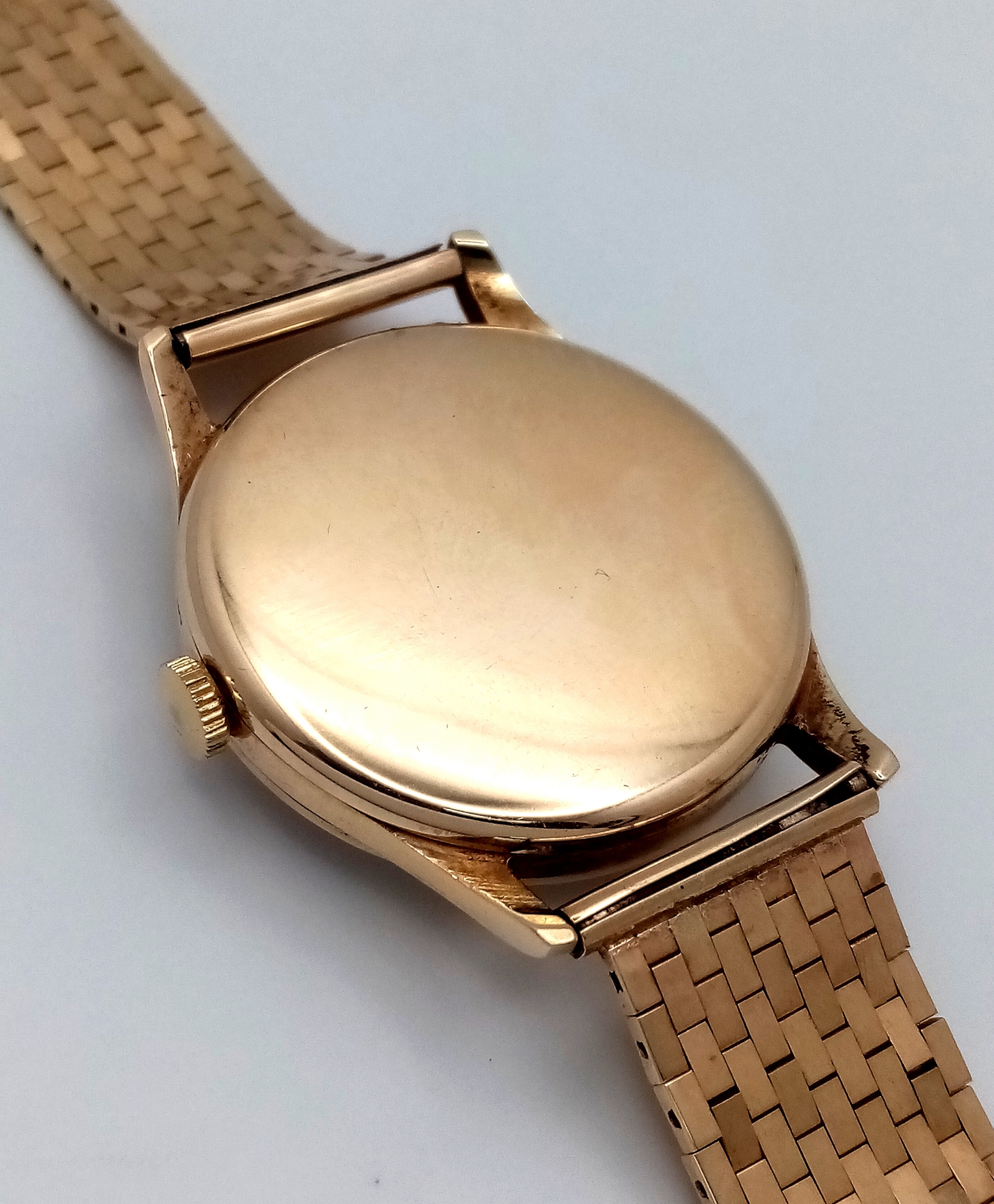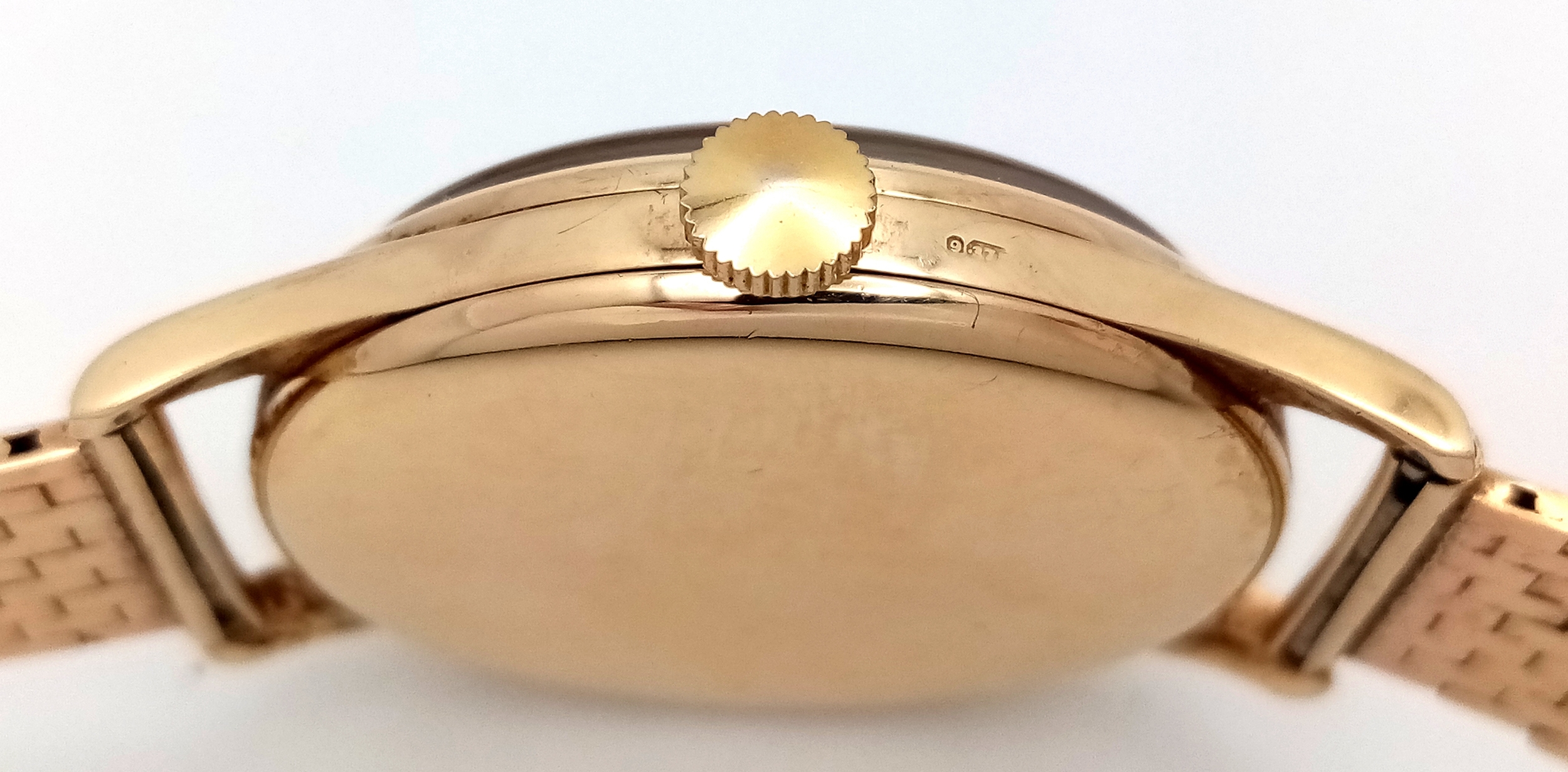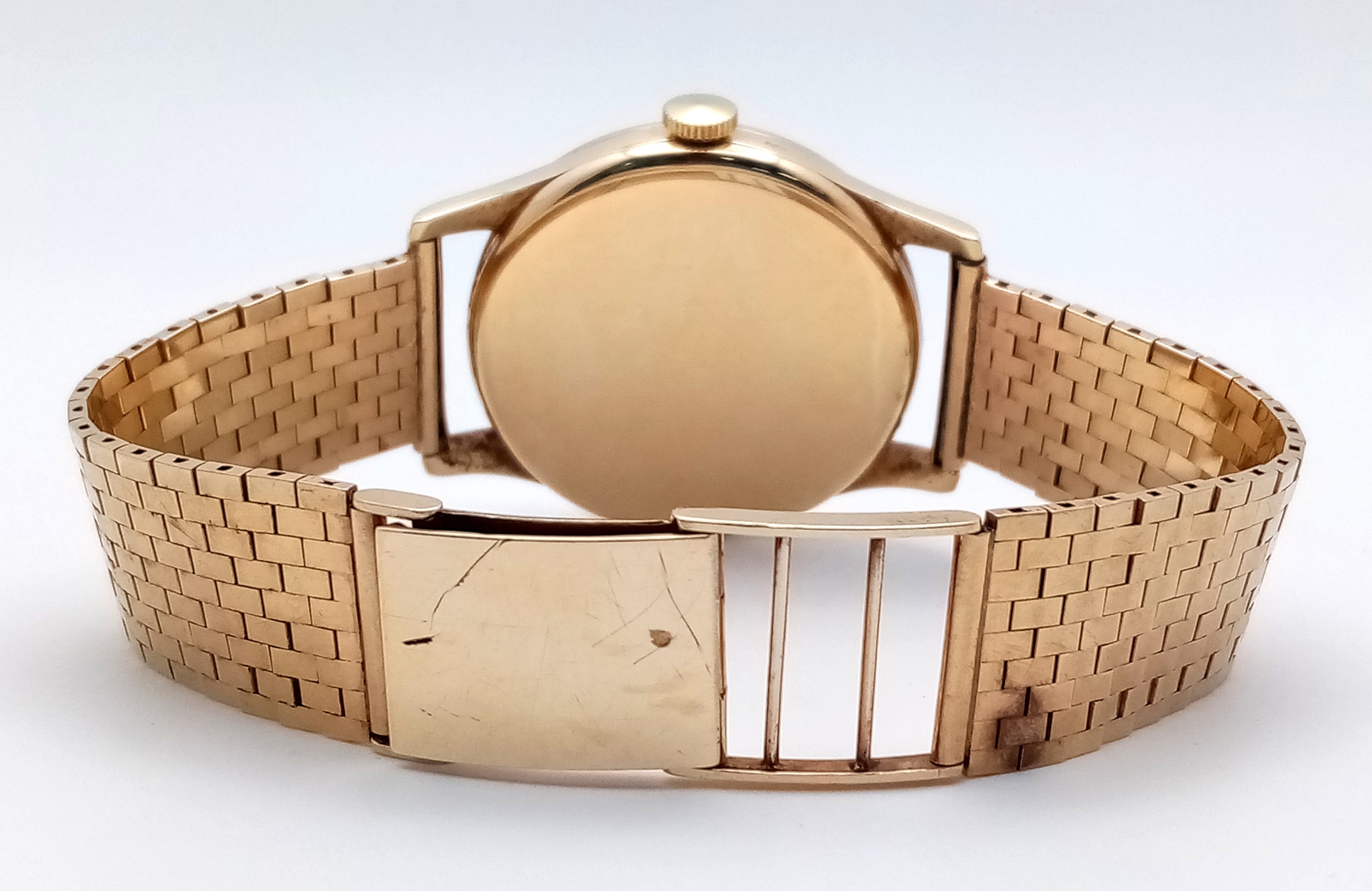 A Vintage Omega 9K Gold Gents Dress Watch. 9k gold bracelet and case - 34mm. Cream dial with second sub dial. Mechanical hand wind movement. Recently serviced, in full working order. In wonderful condition for its age. Comes with an Omega case. 59.7g total weight.