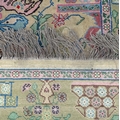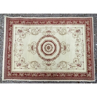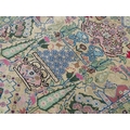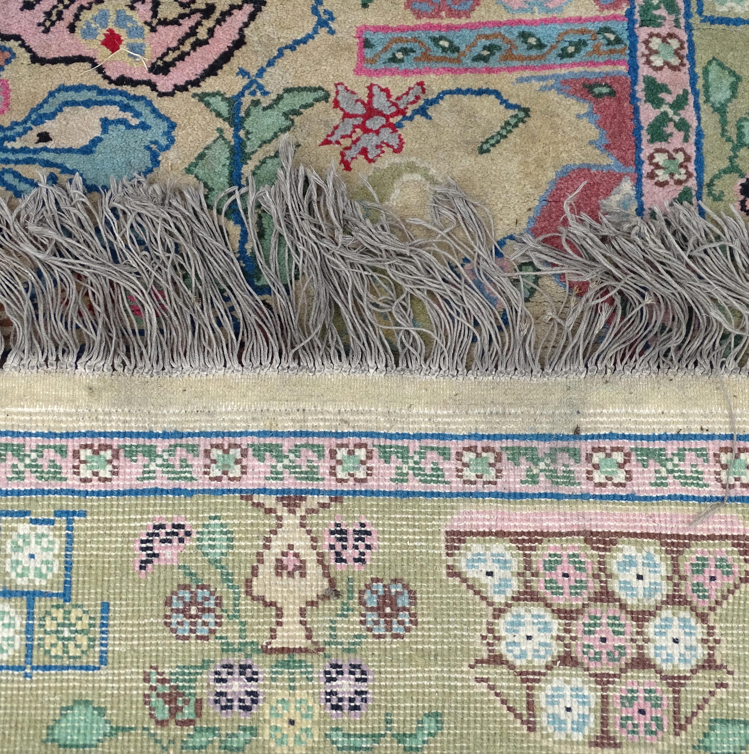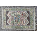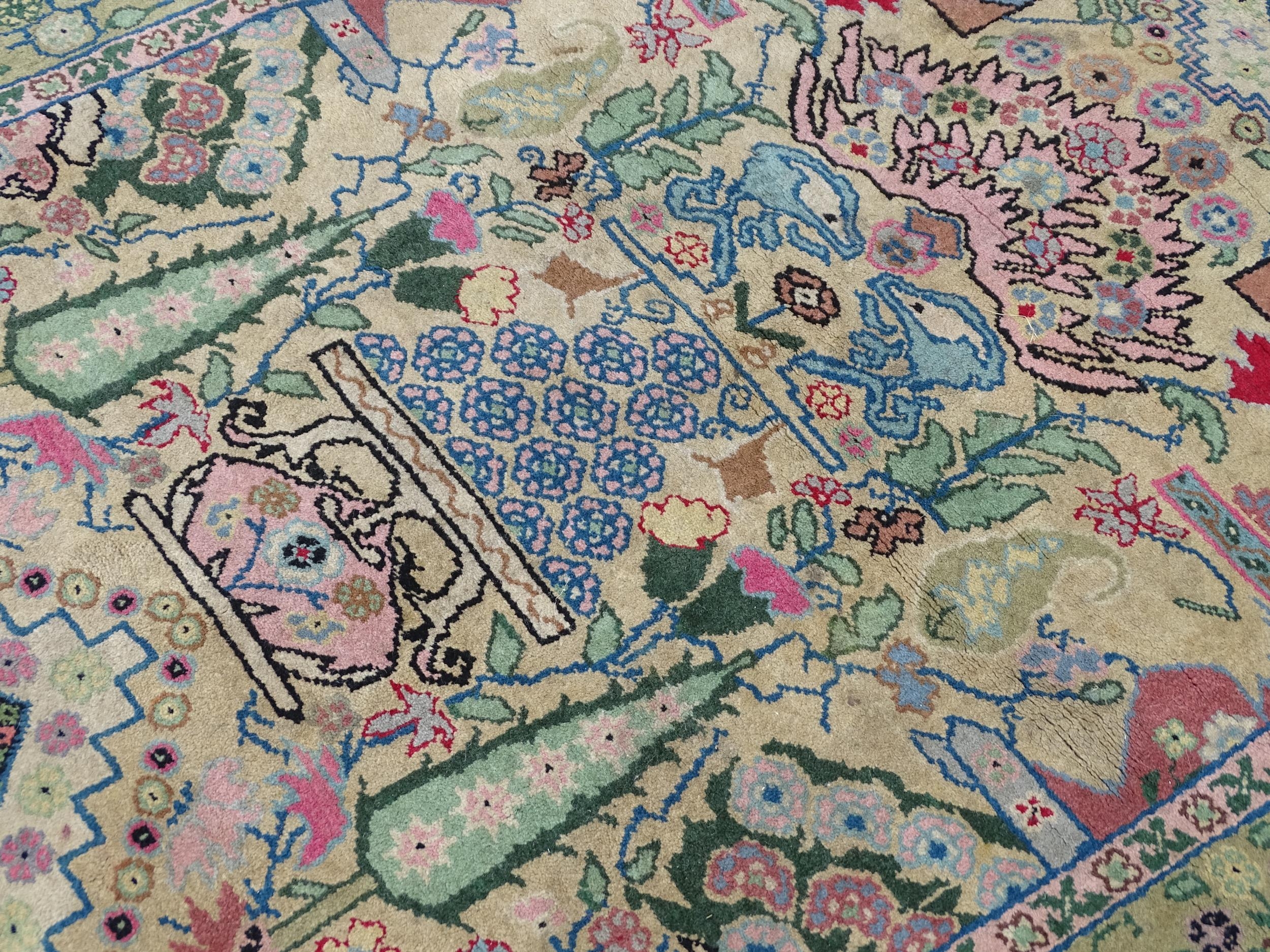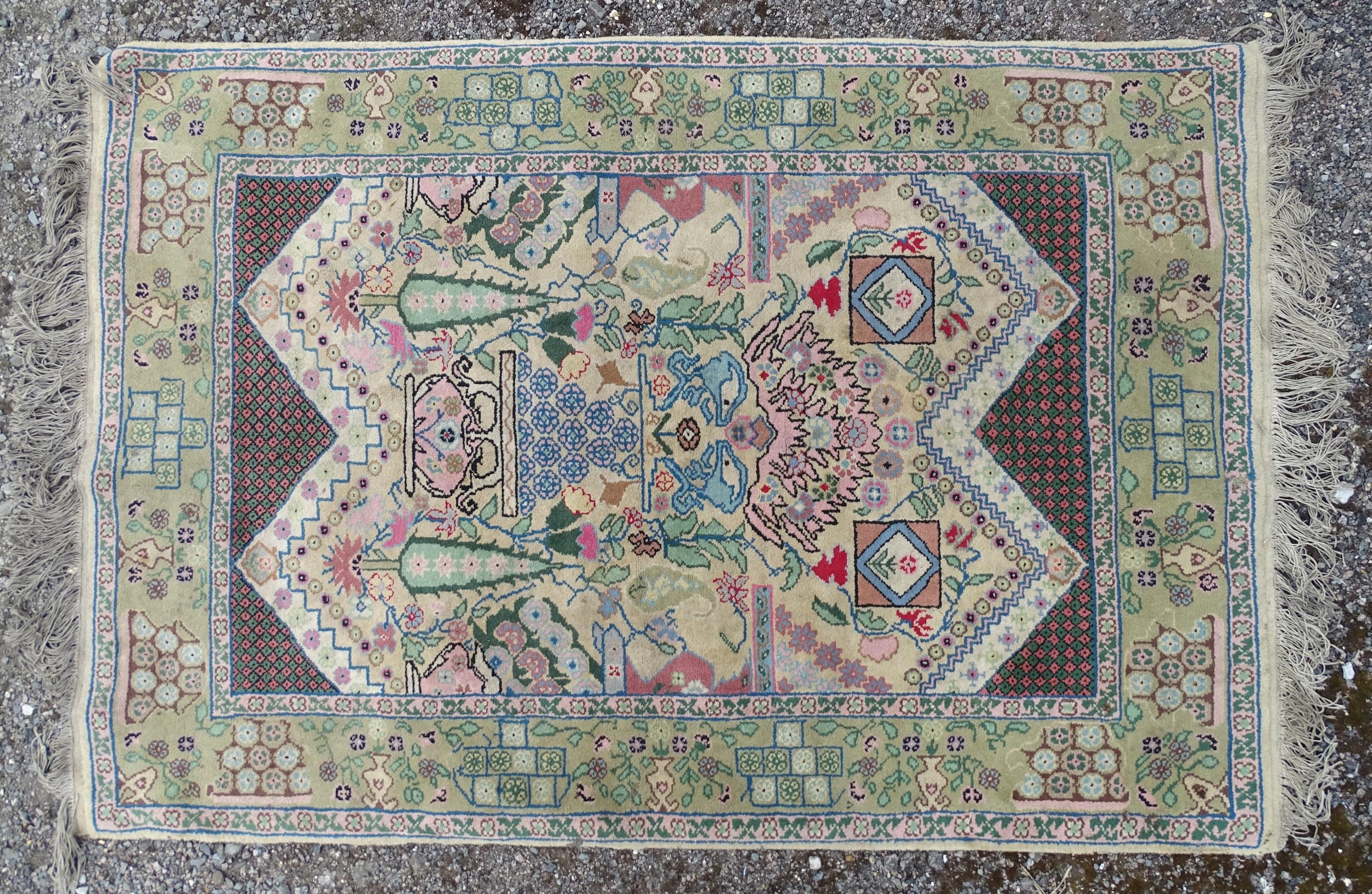 Carpet / Rug : A cream and green ground rug profusely decorated with floral detail with vases, trees etc. approx 76" x 48"