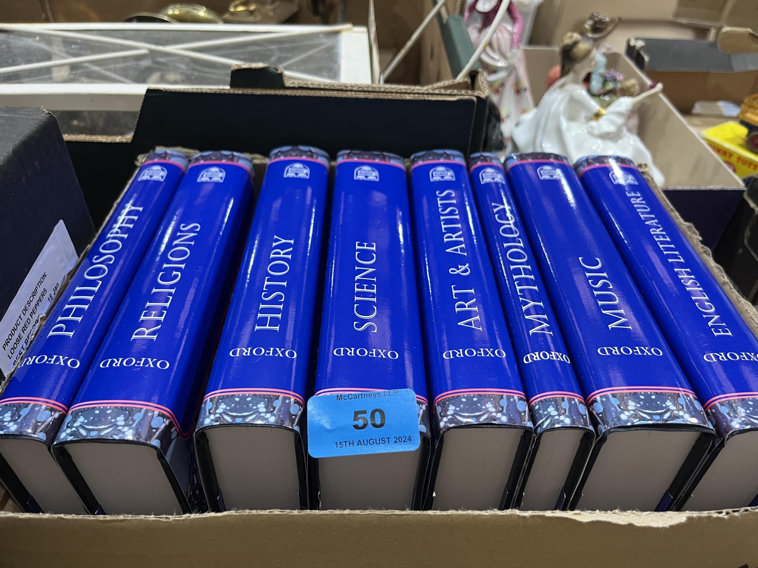 A box of eight Oxford dictionaries.