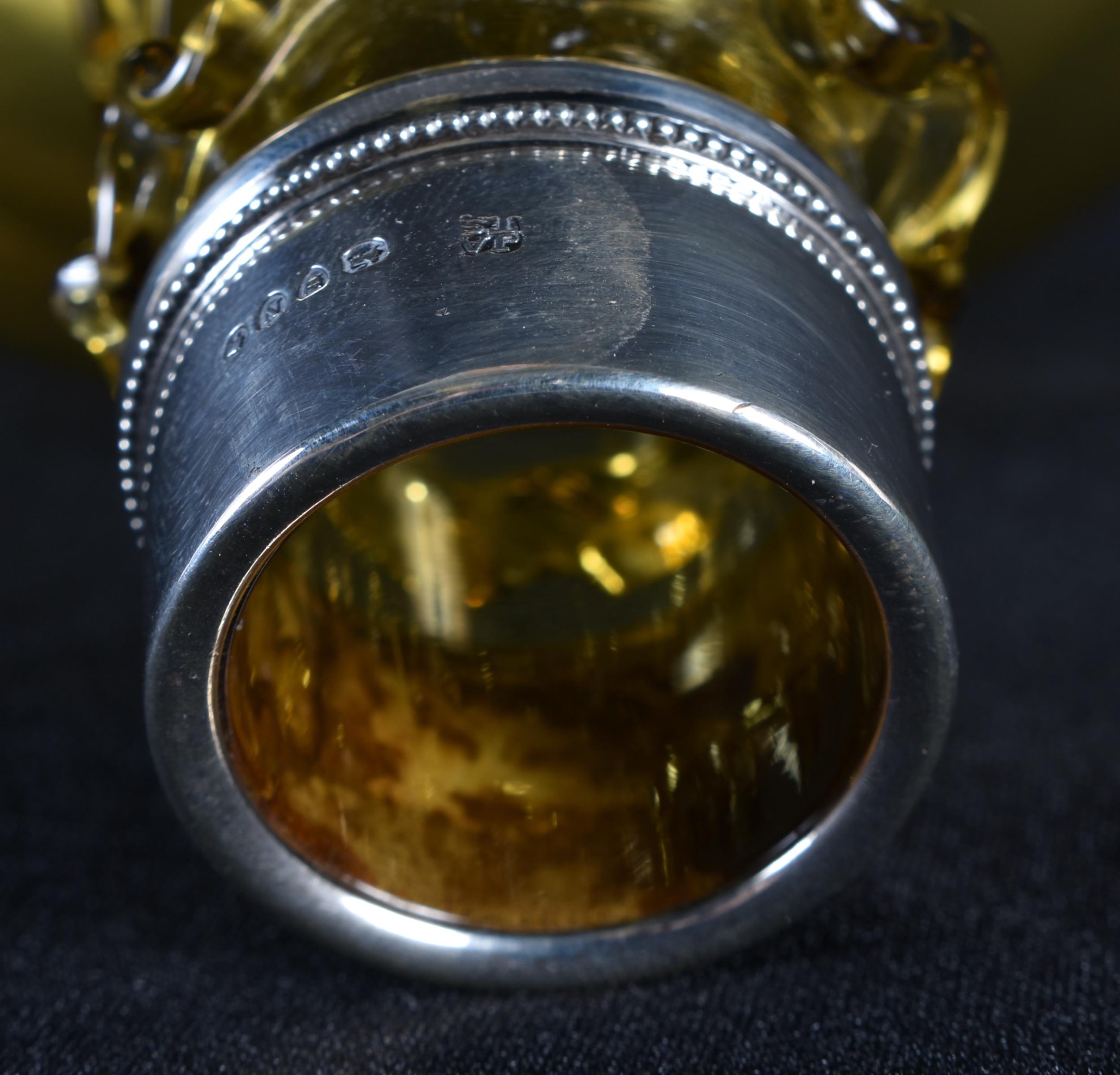 A VICTORIAN SILVER MOUNTED SMOKEY AMBER GLASS DECANTER. 18 c...