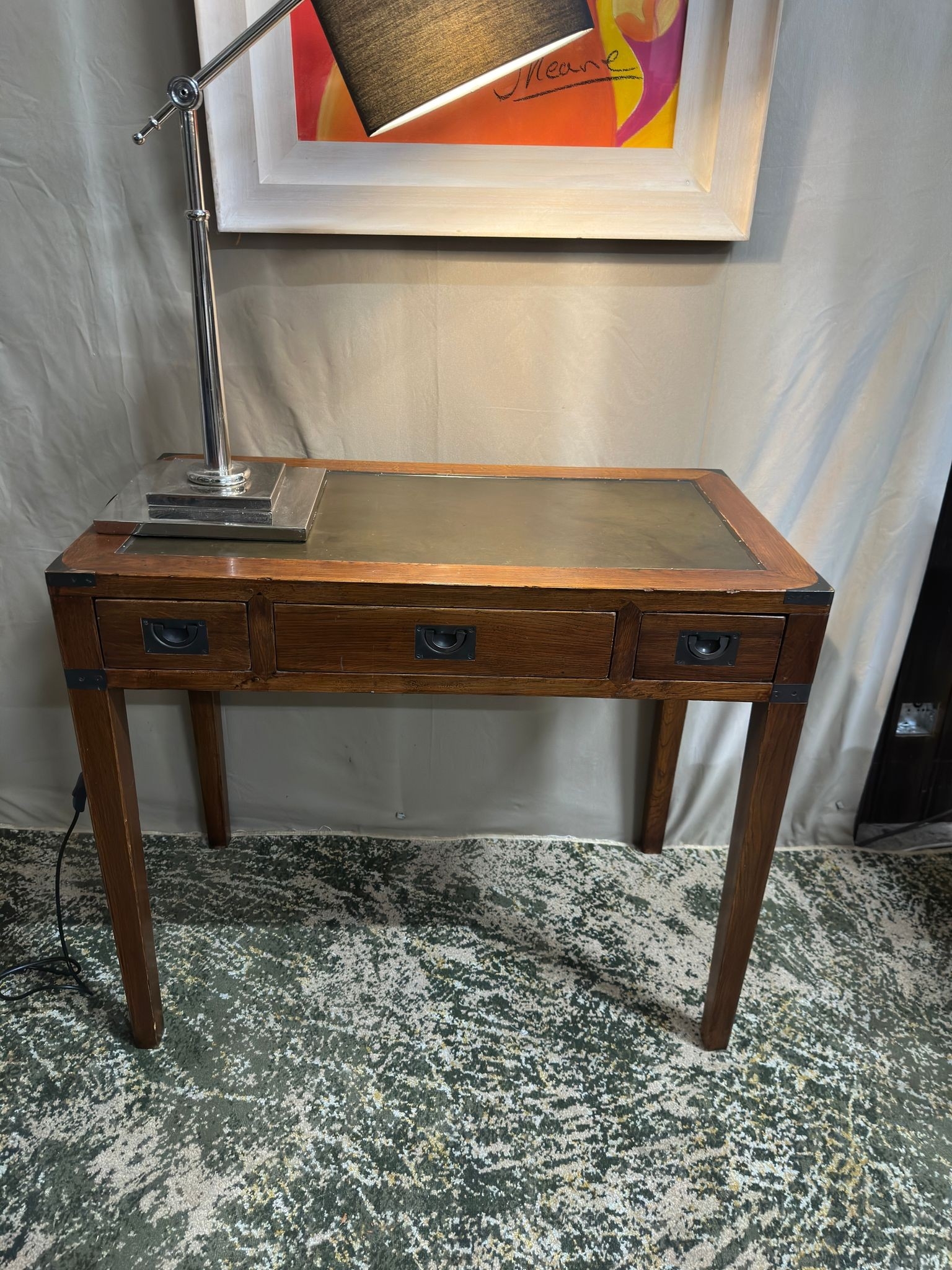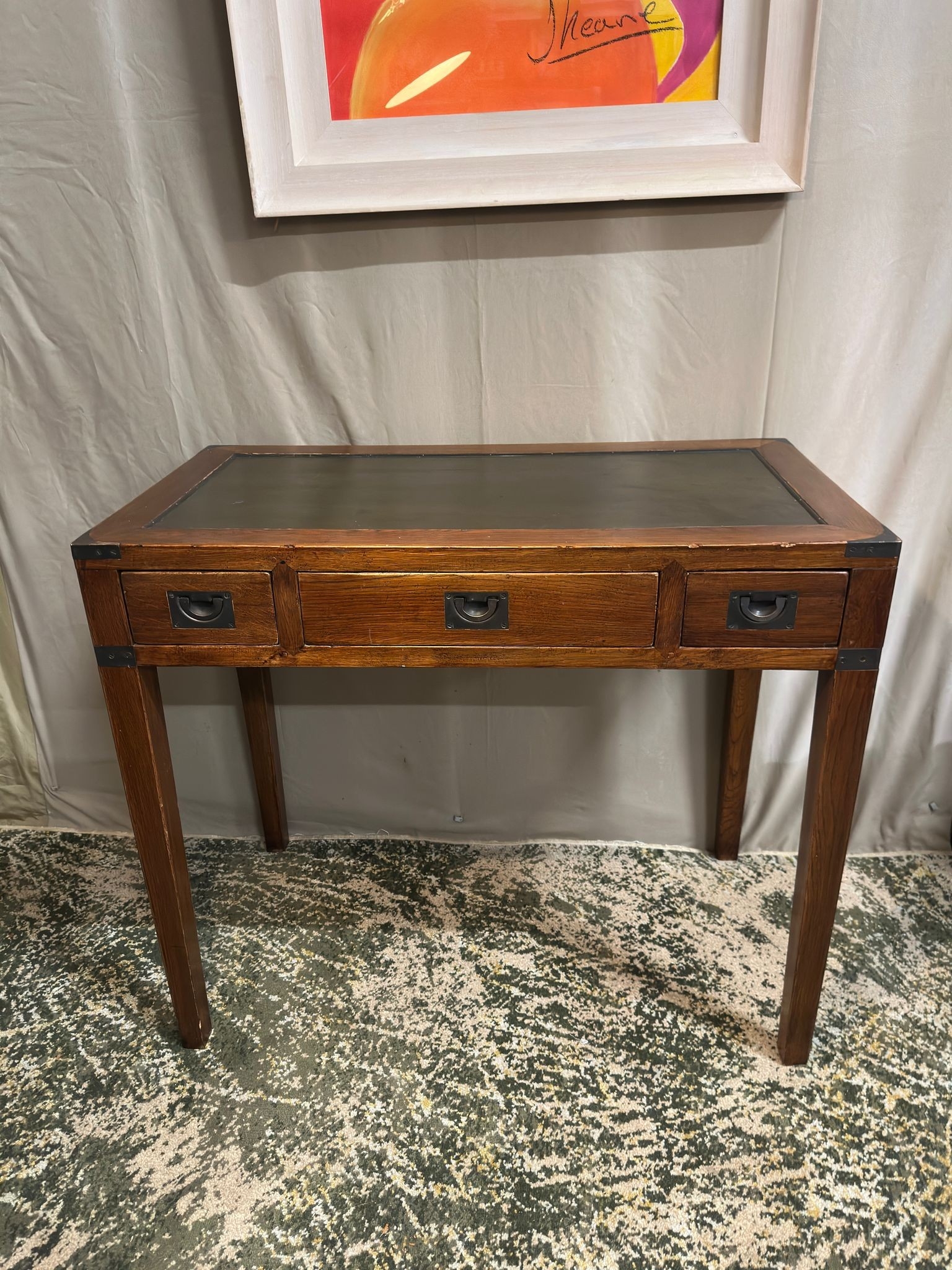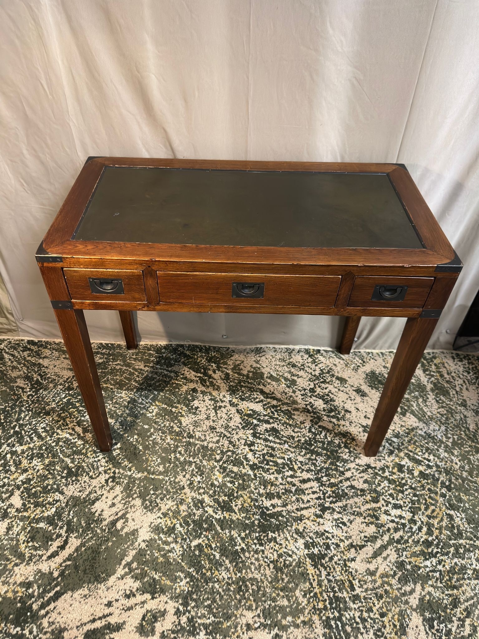 Military Campaign style Writing Desk with Leather insert (90cm W x 48cm D x 78cm H)