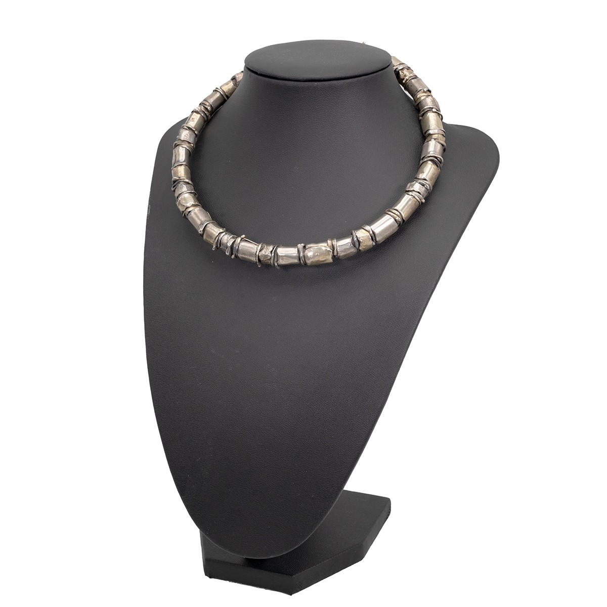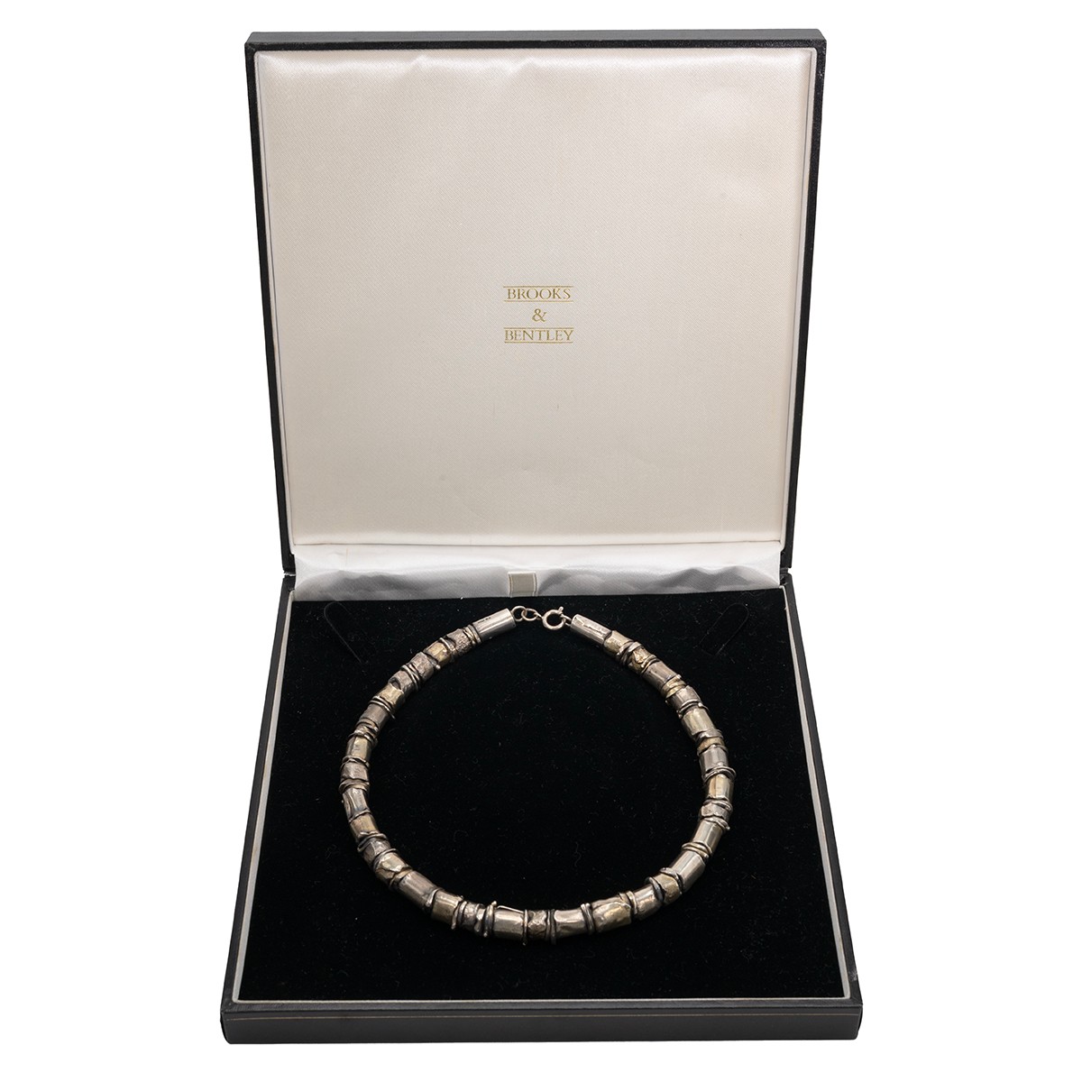 A Jane Watling, Lacock, Wiltshire, designer silver gilt collarette with spring-ring clasp, bespoke design, hallmark London 1985, 70.8 grams. Cased.