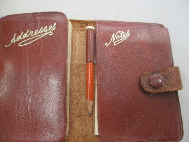 VINTAGE BROWN LEATHER NOTEBOOK AND PENCIL