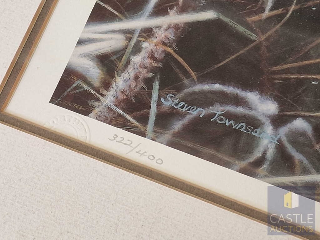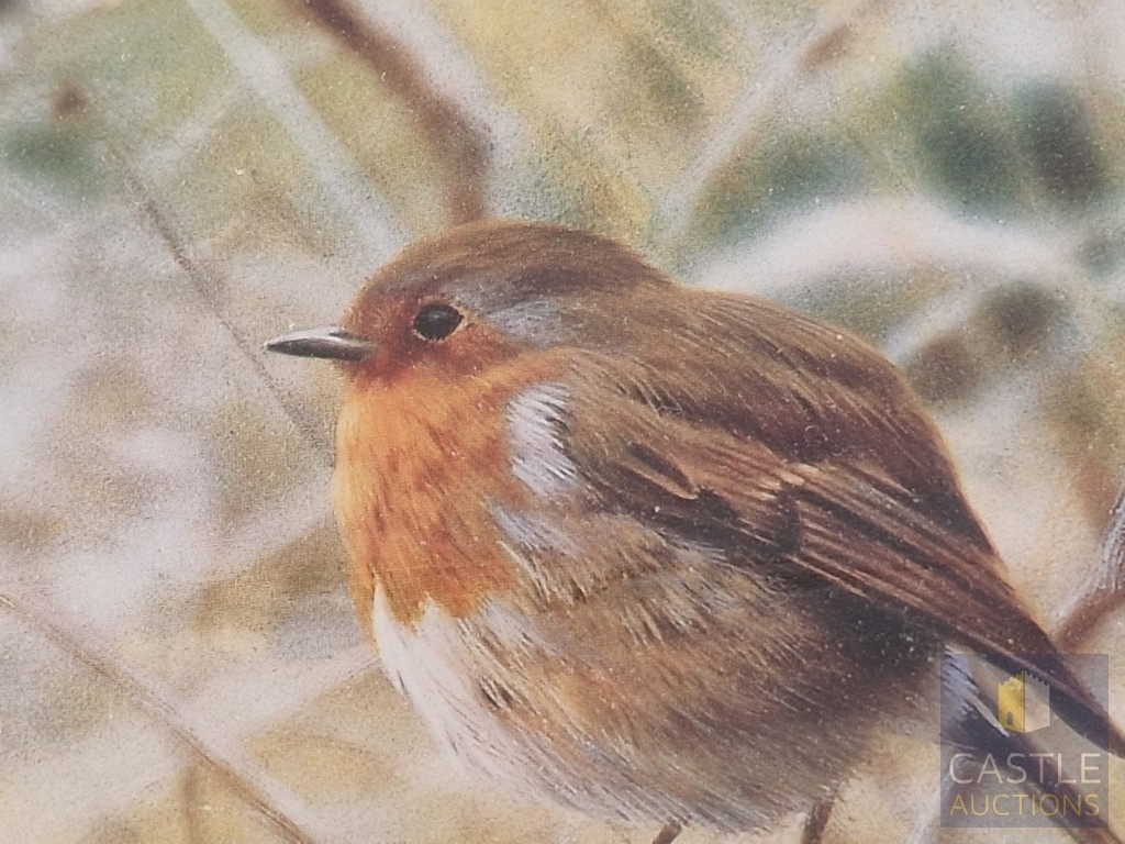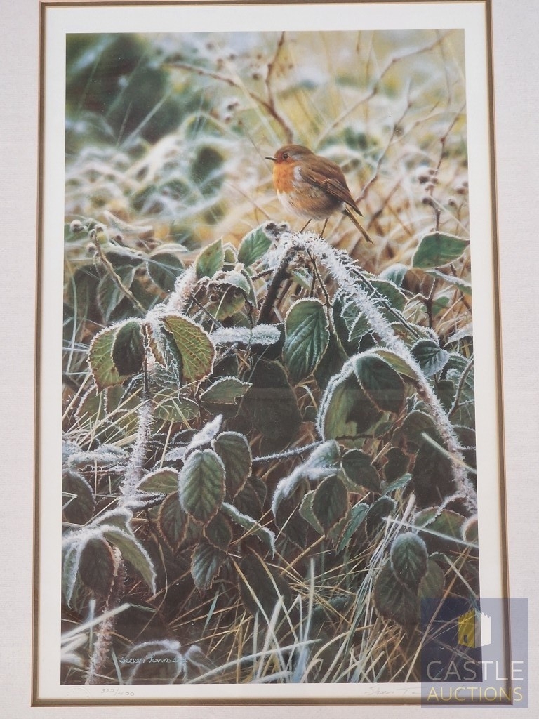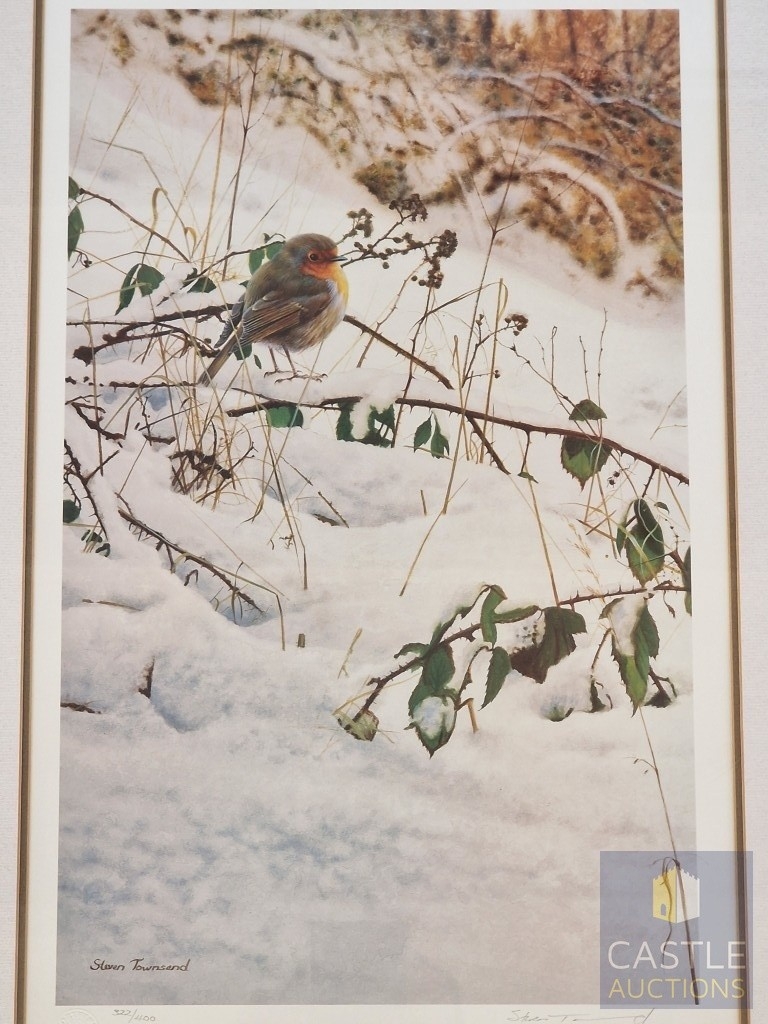 2 x Framed, Signed and Limited Edition Prints by Steven Townsend of Robins (Birds), Titled 'Red Watch' and 'Winter Robin', (Approx. 41 x 56cm), (2)