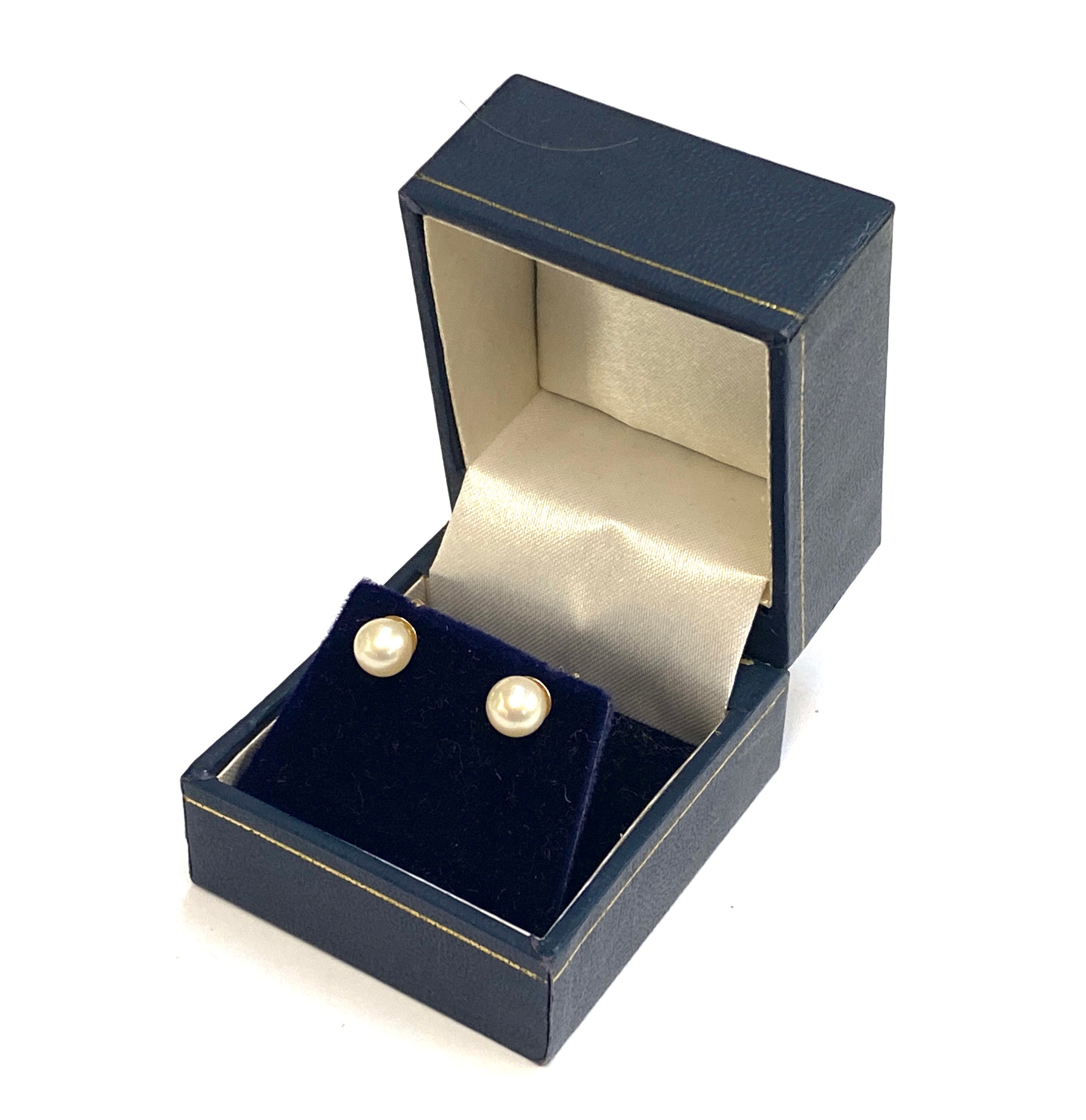 A pair of 9ct gold and pearl stud earrings, the pearls 6.1mmD, 1.1g gross weight