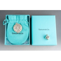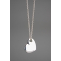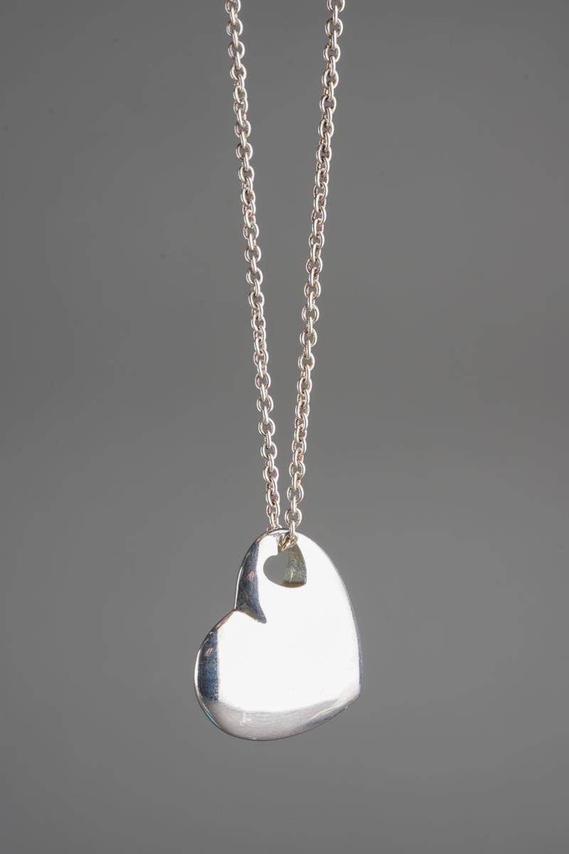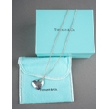 A boxed Tiffany & Co silver heart shaped pendant on chain, the pendant with heart shaped hole stamped "2004 TIFFANY & CO. 925", the chain stamped "TIFFANY & CO / 925 ITALY" to link near clasp, chain length 41.5cm, 0.27ozt, 8.42 grams approx, comes with fabric pouch and lidded box (1)