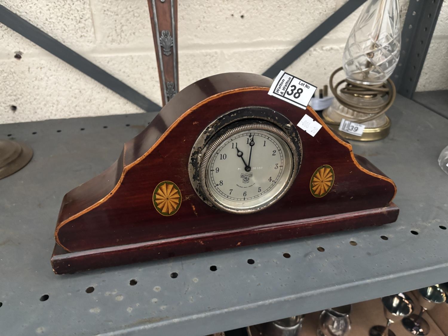 Ornately inlaid Smiths mechanical mantle clock (working)