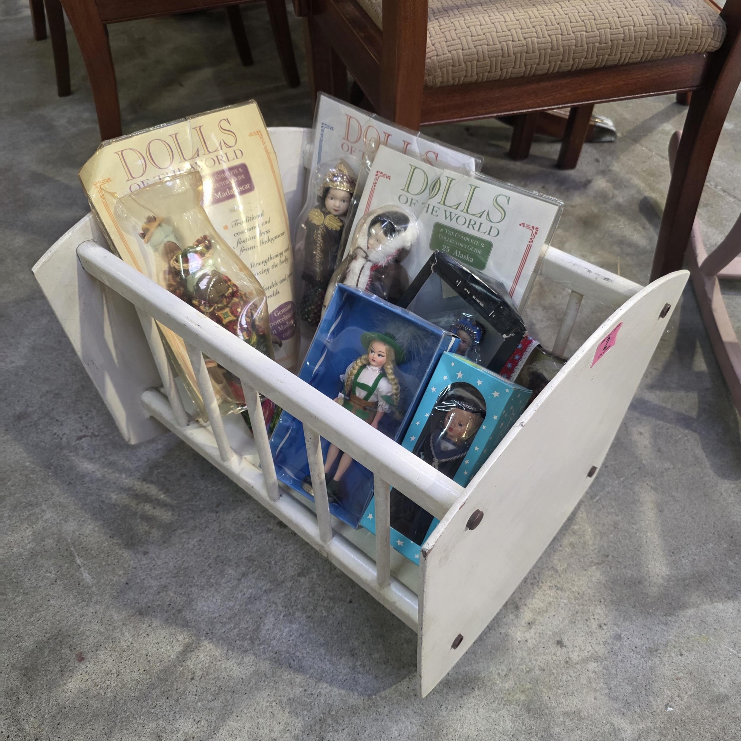 Vintage Rocking Doll/Bears Cradle & Dolls