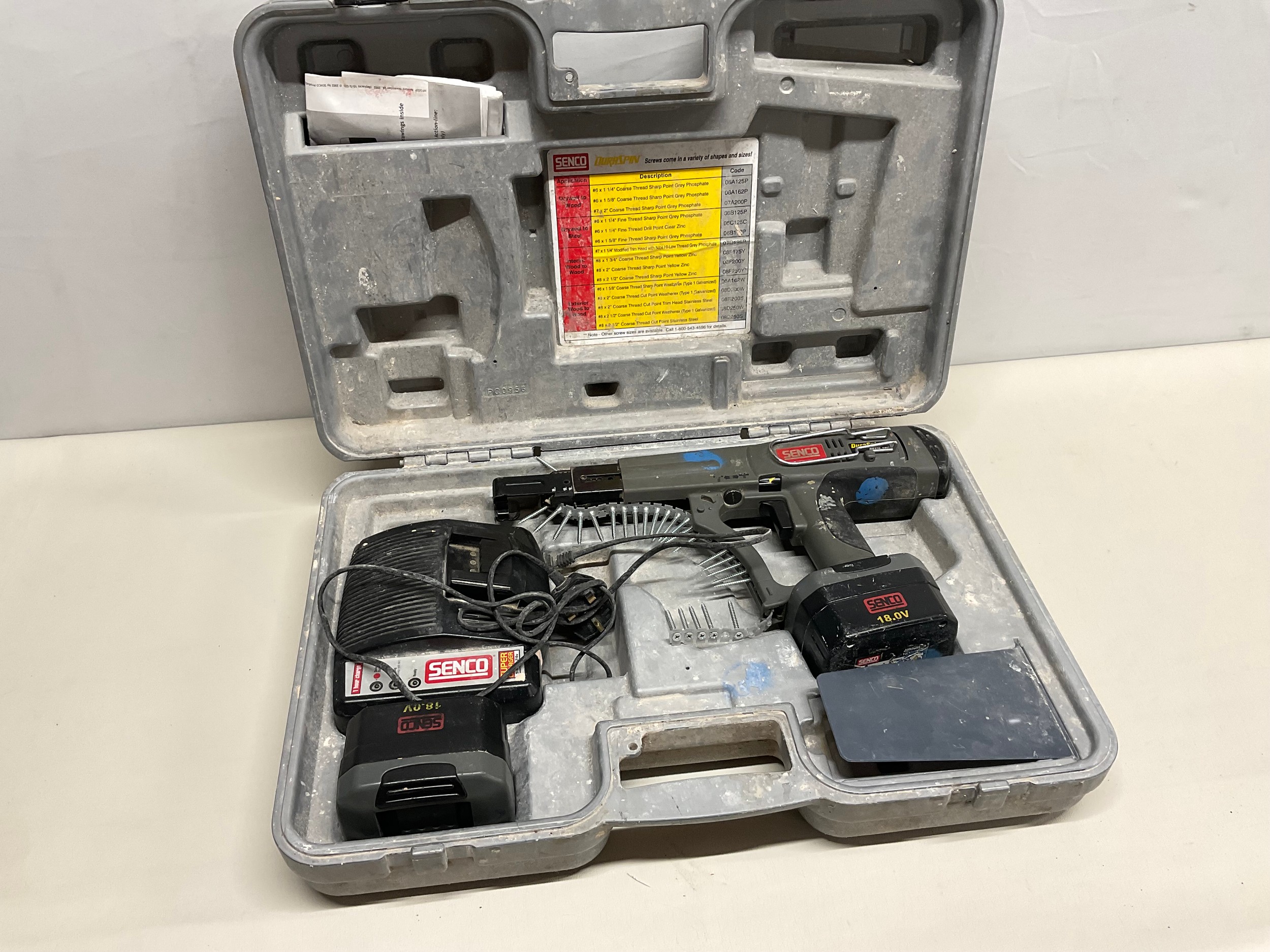 CASED SENCO 18V CORDLESS ELECTRIC SCREWDRIVER WITH CHARGER AND SPARE BATTERY