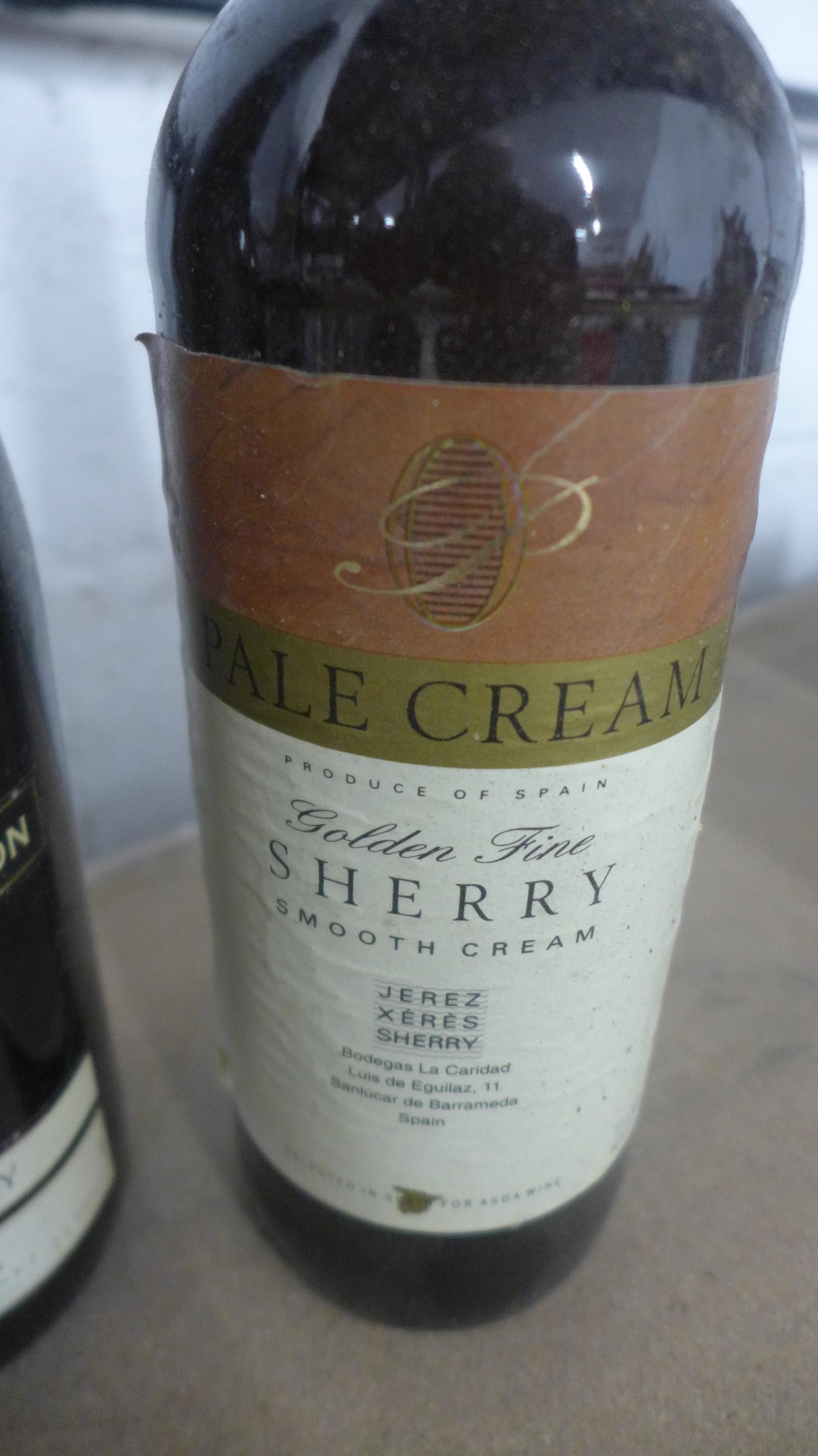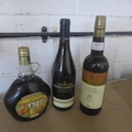 Three bottles of sealed alcohol including a Trovador rosé wine, a bottle of French Connection reserve Chardonnay and a bottle of Pale Cream smooth sherry