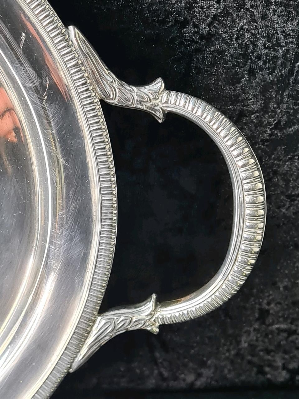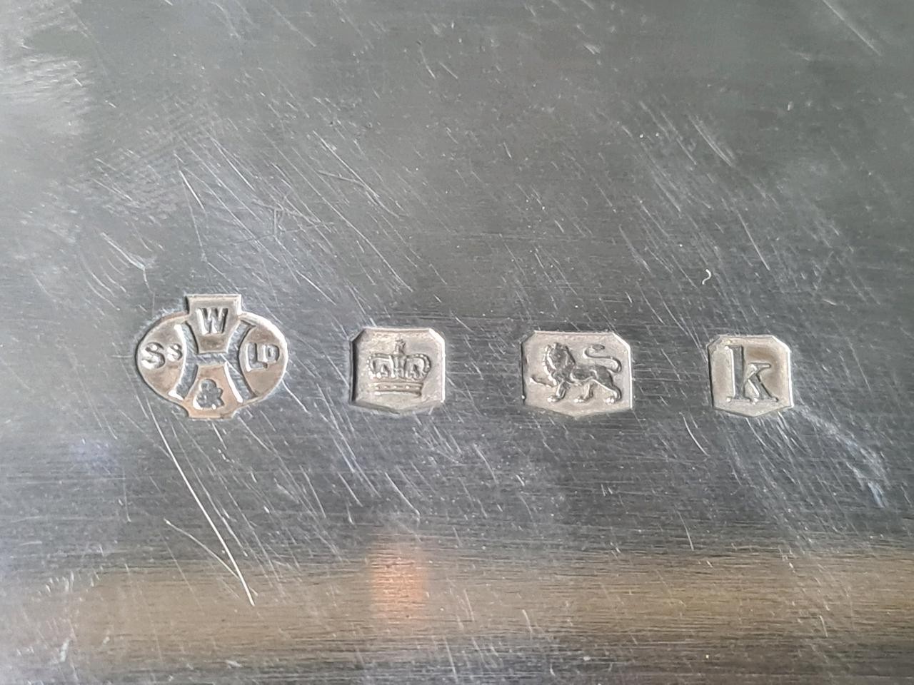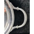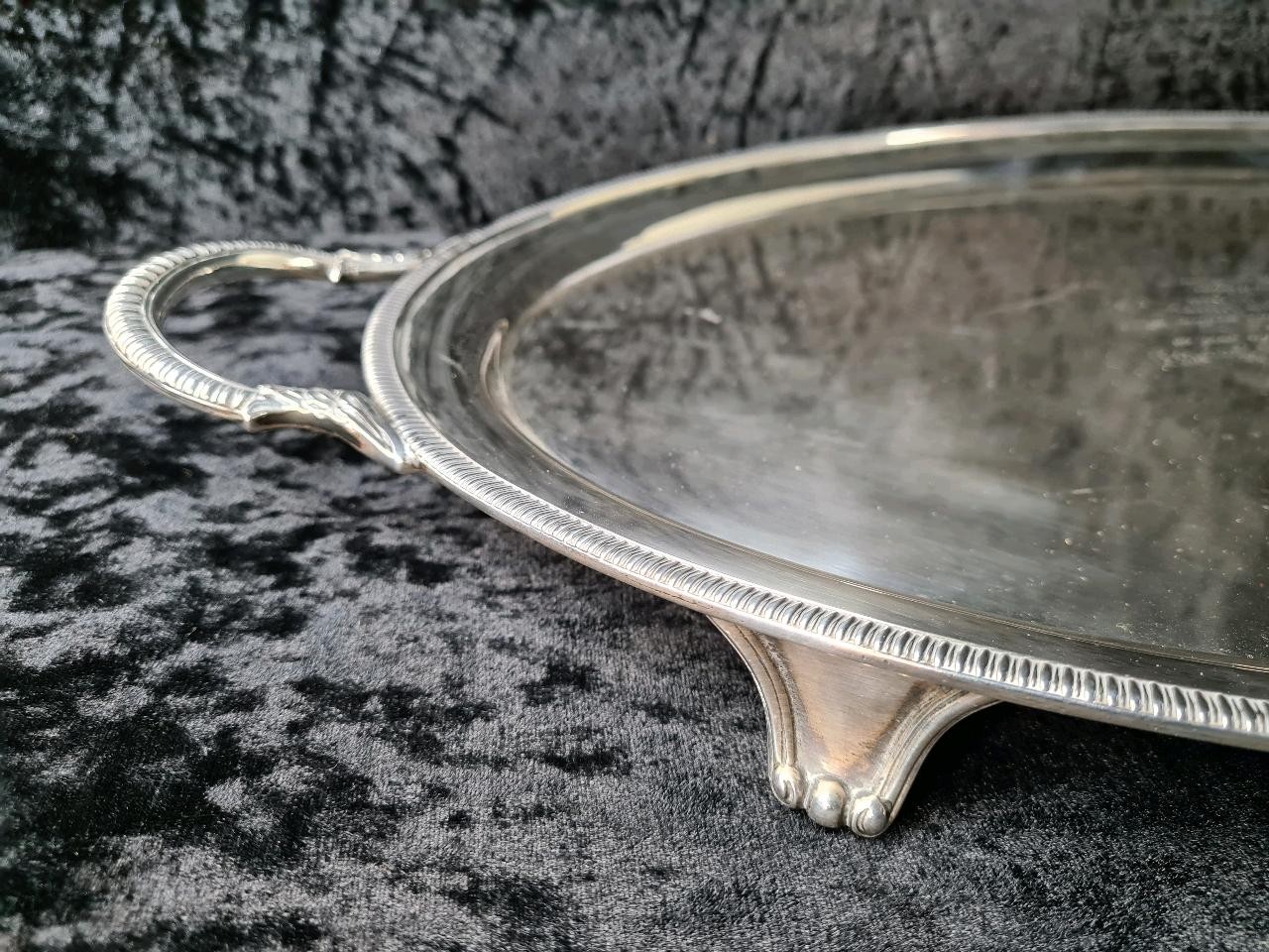 Magnificent solid silver gallery tray with Masonic dedication inscription dated 1929, William Hutton & Sons, Sheffield 1927, approx 1800g. Measures W57cm (including handles) x H33cm.