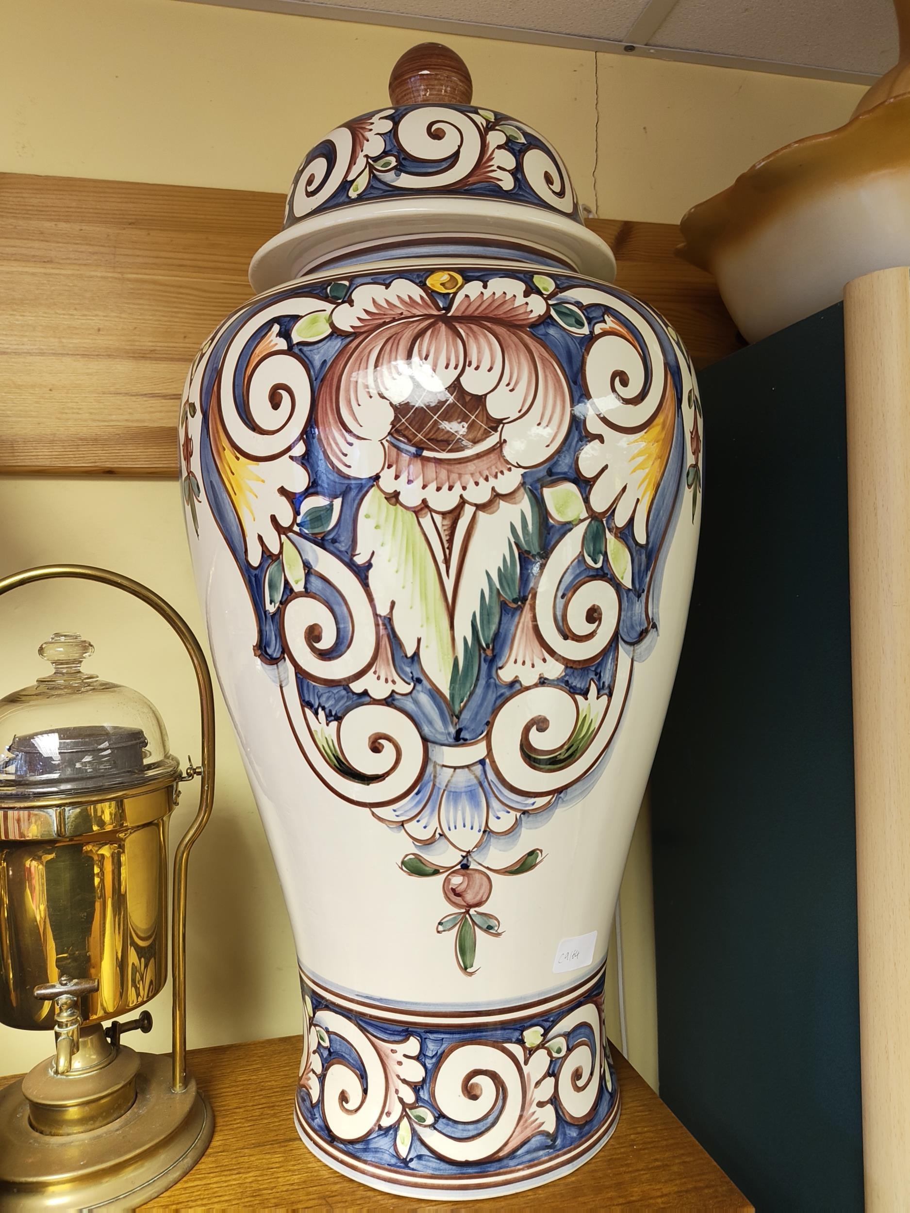 A large decorative hand painted vase, Measuring approx 70cm