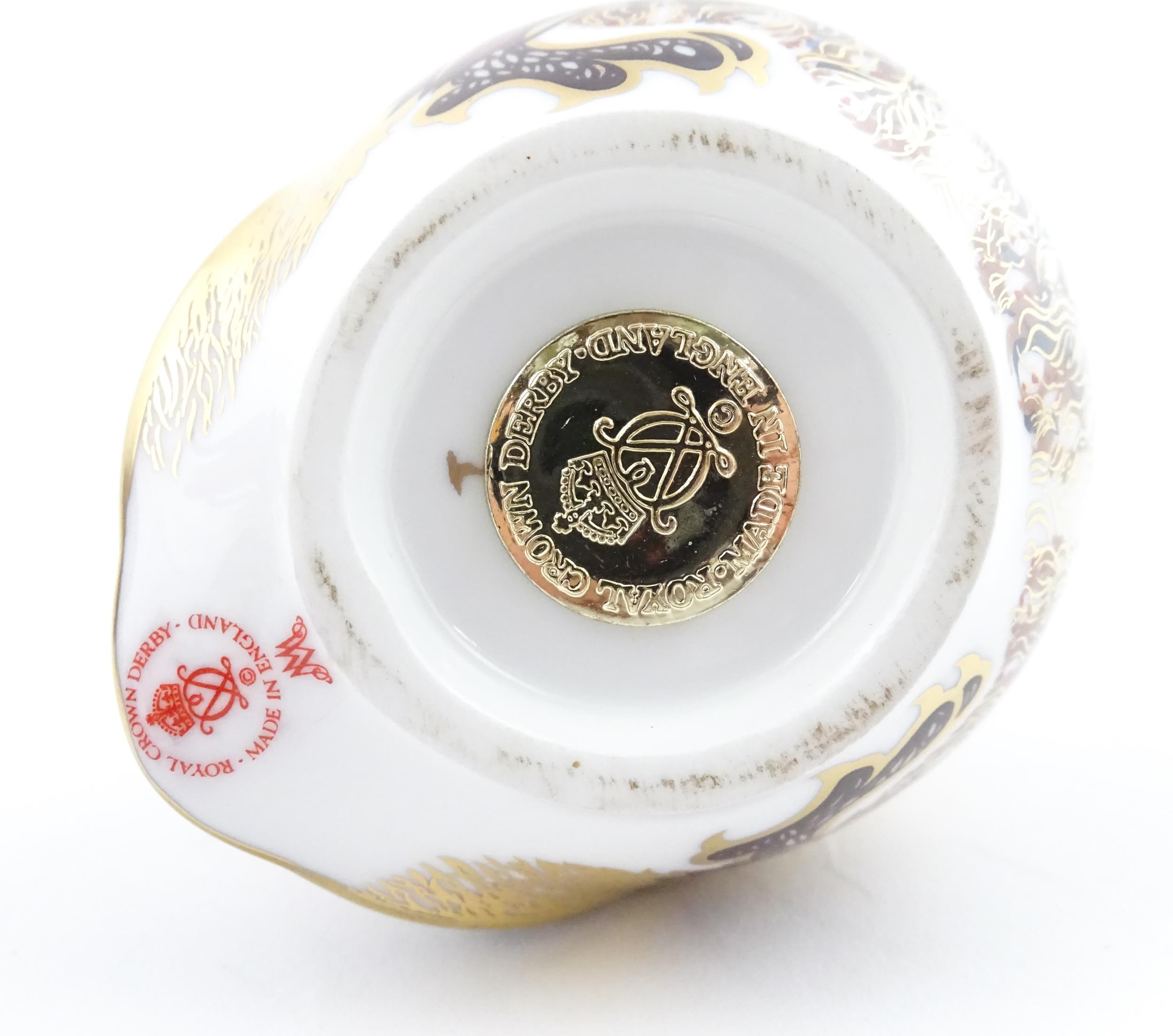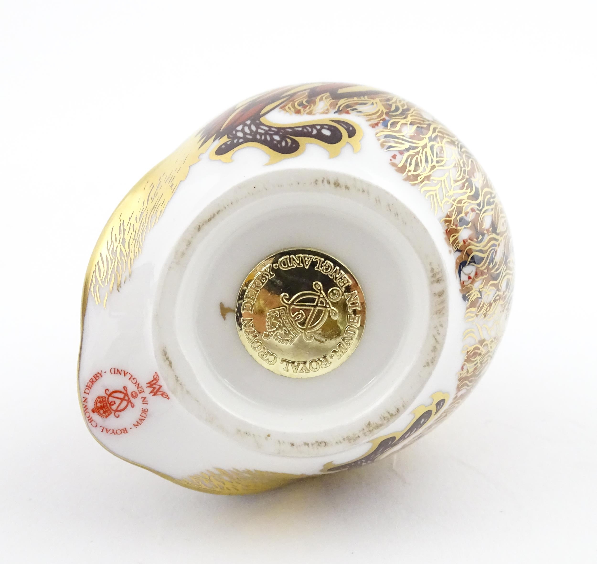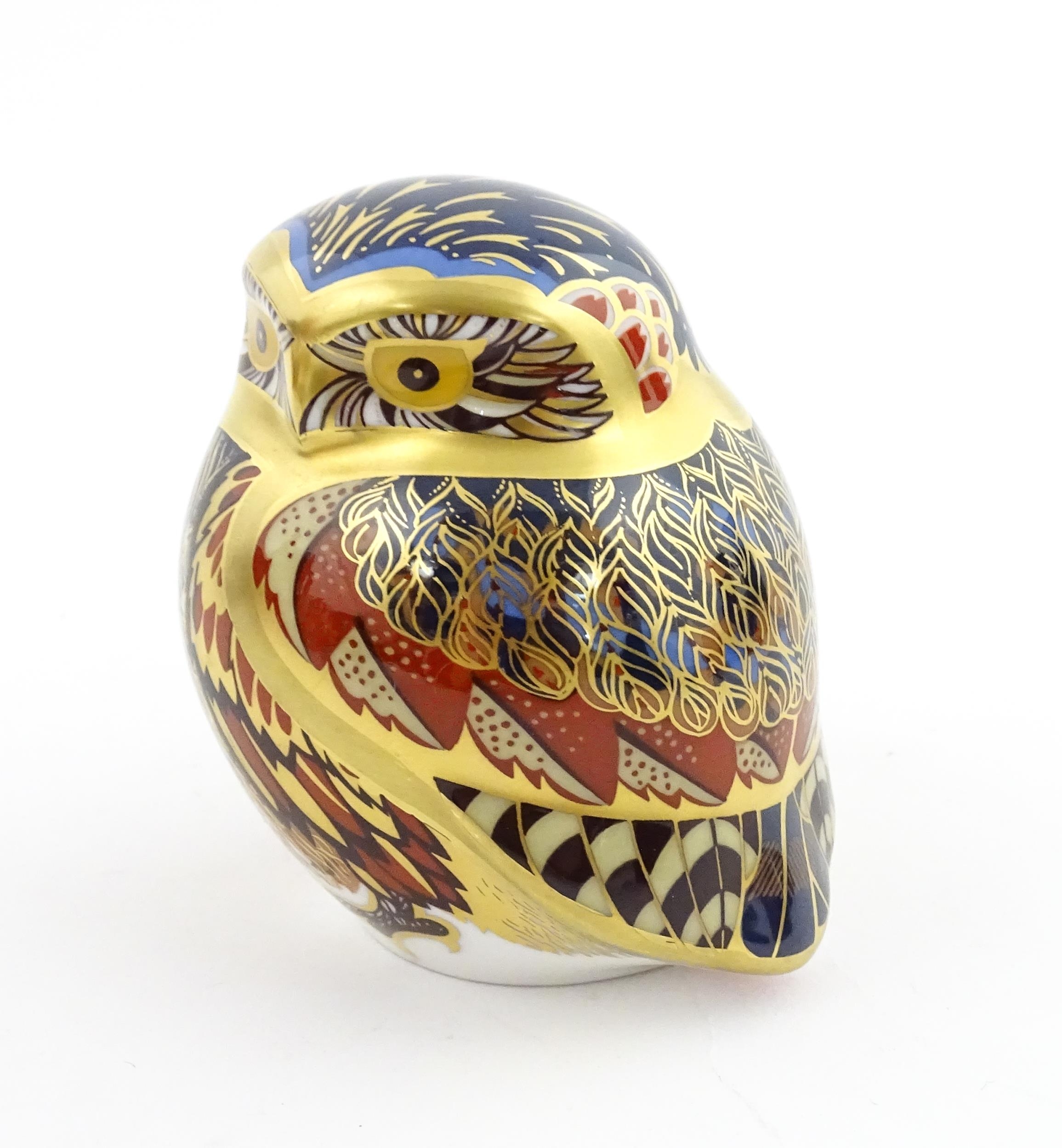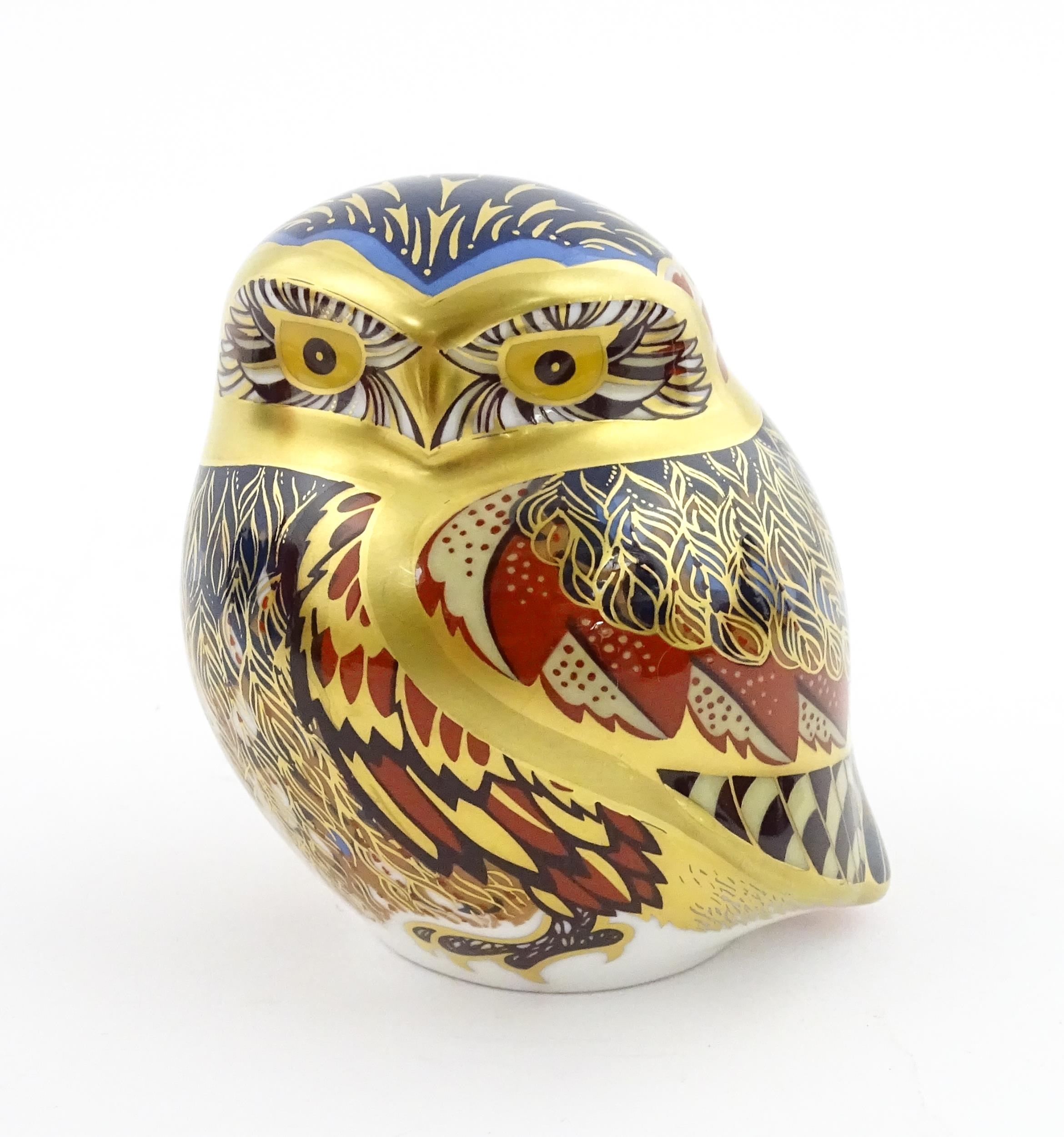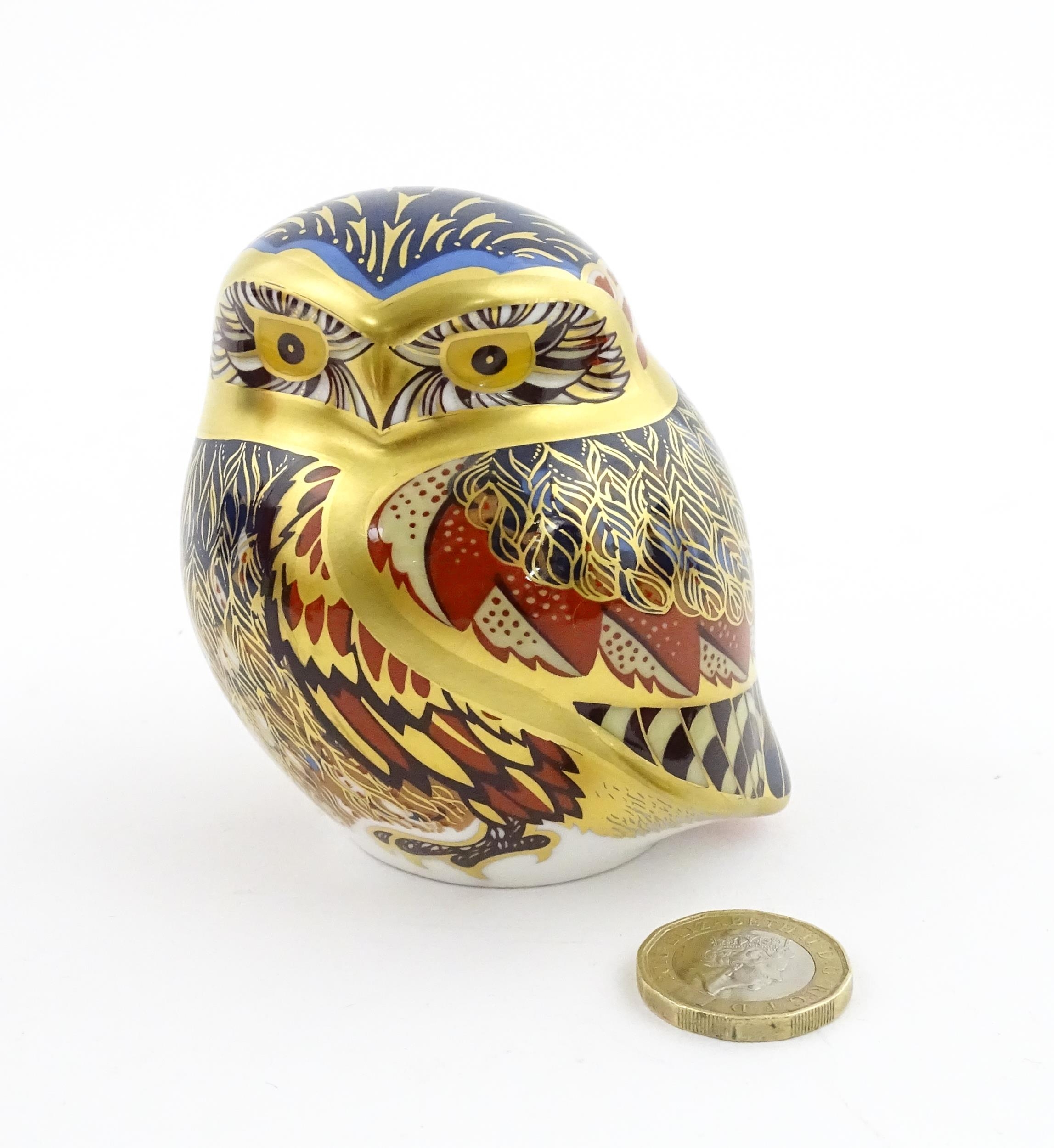 A Royal Crown Derby paperweight modelled as a Little Owl. Boxed. Approx. 3 1/4" high