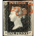 Great Britain 1d black Plate 4 (RF) used