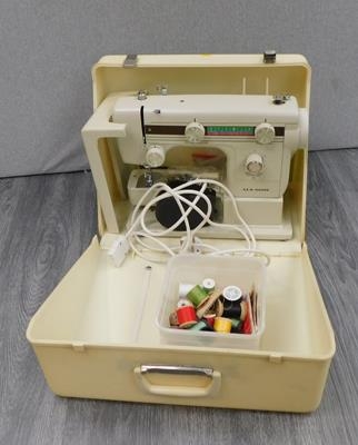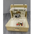 New Home sewing machine and box of reels W/O