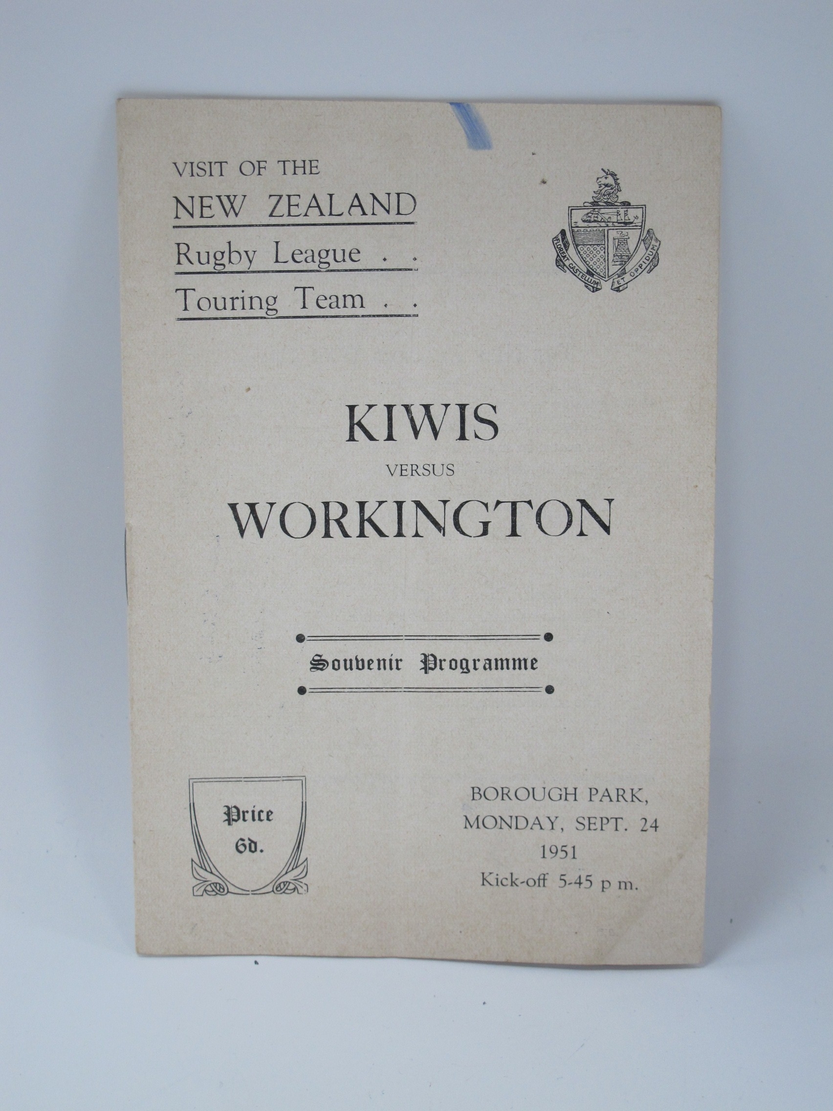 Workington V. New Zealand 1951 Programme for The Rugby League Game at Borough Park, dated 24 September 1951.