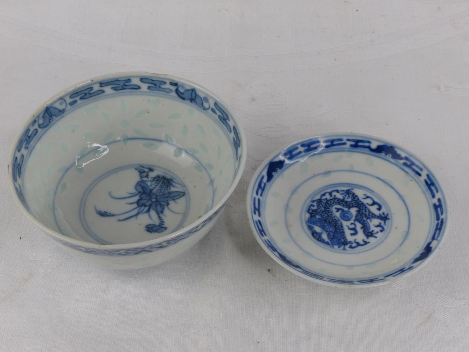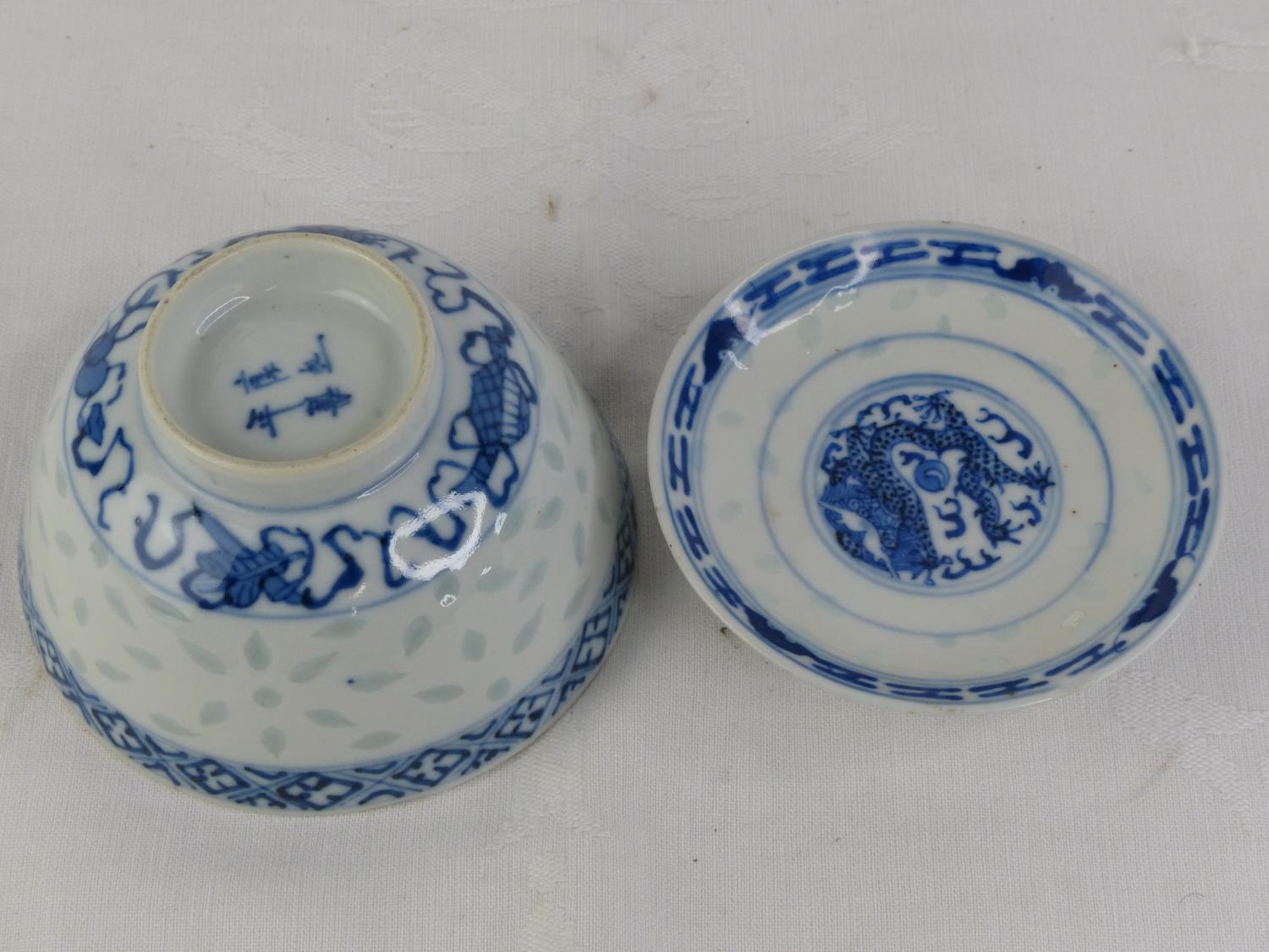 A stunning decorative Chinese tea bowl and saucer, each signed to base.