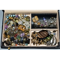 TWO BOXES OF COSTUME JEWELLERY, to include three micro mosai...