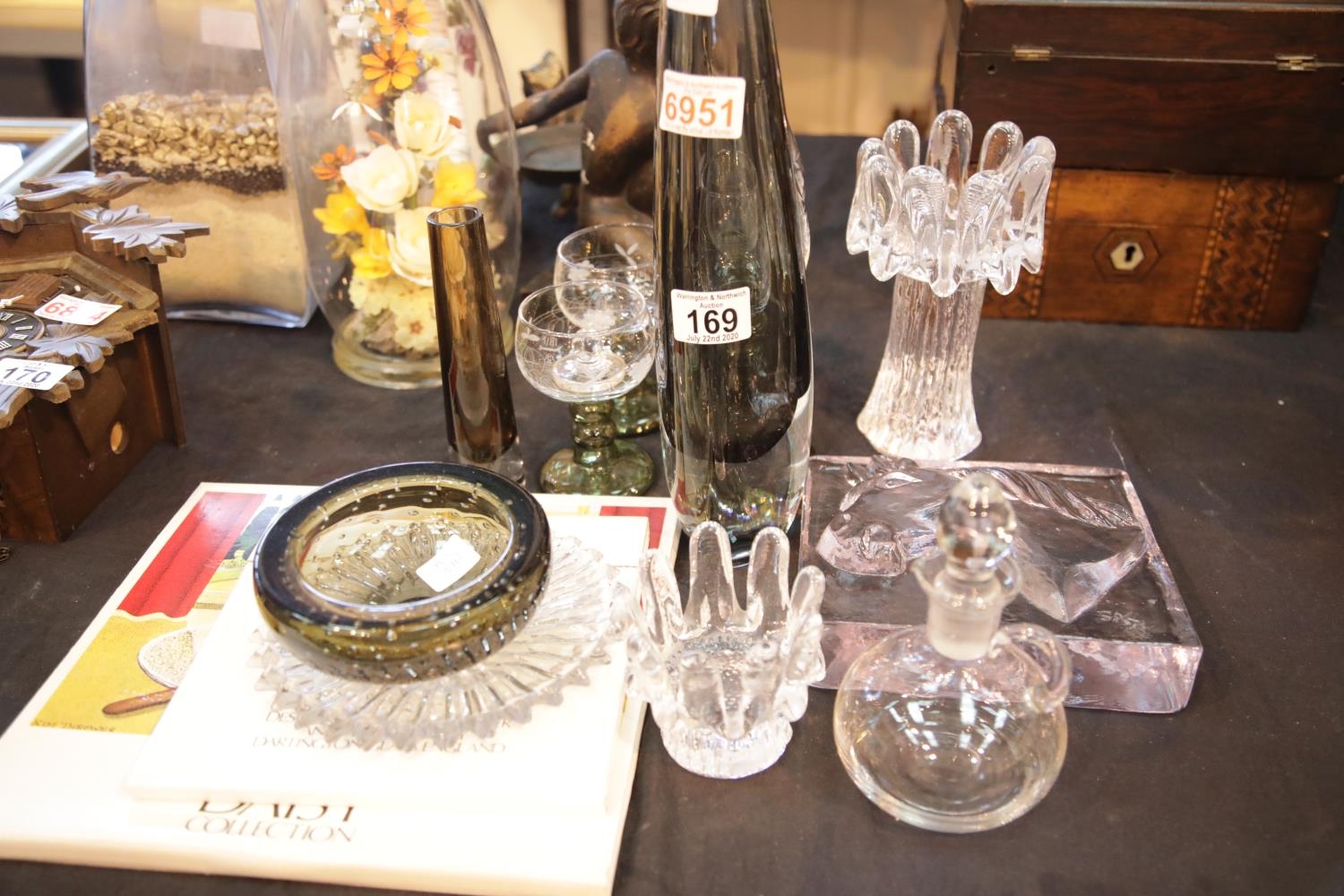 Collection of mixed glassware including signed art vase. This lot is not available for in-house P&P.