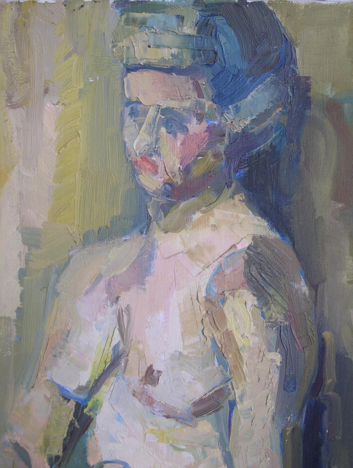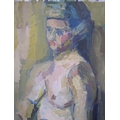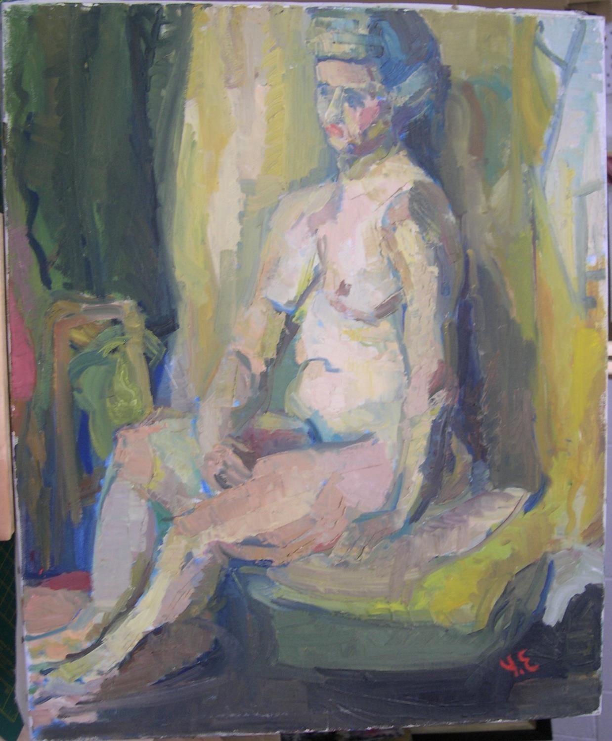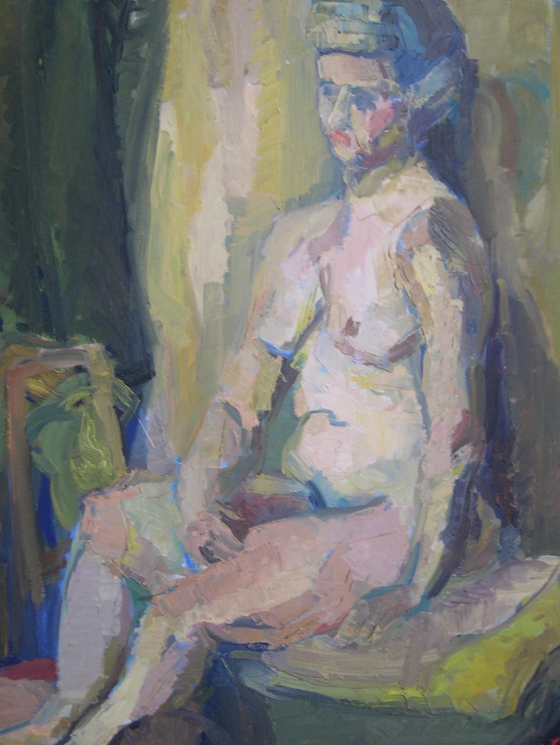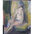 Large Yvette Eckman oil on canvas “seated female nude” 61 x 50cm, unframed,