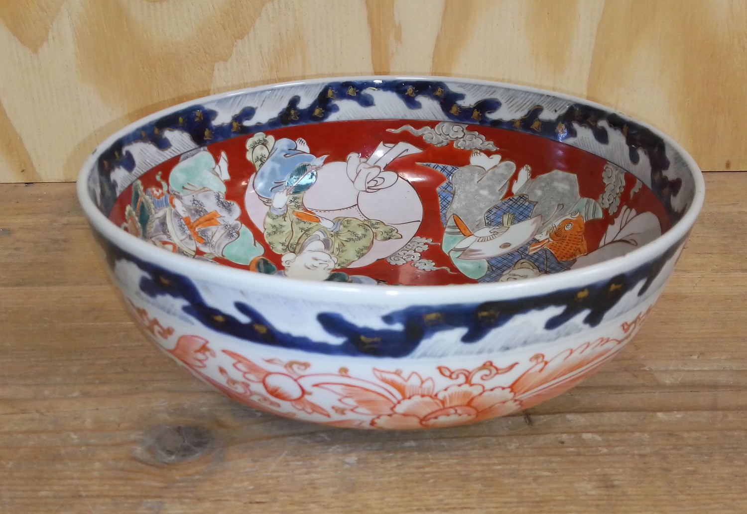 A Japanese Imari bowl, 19th century, the interior decorated with figures, four character mark to base, diam. 24.5cm.