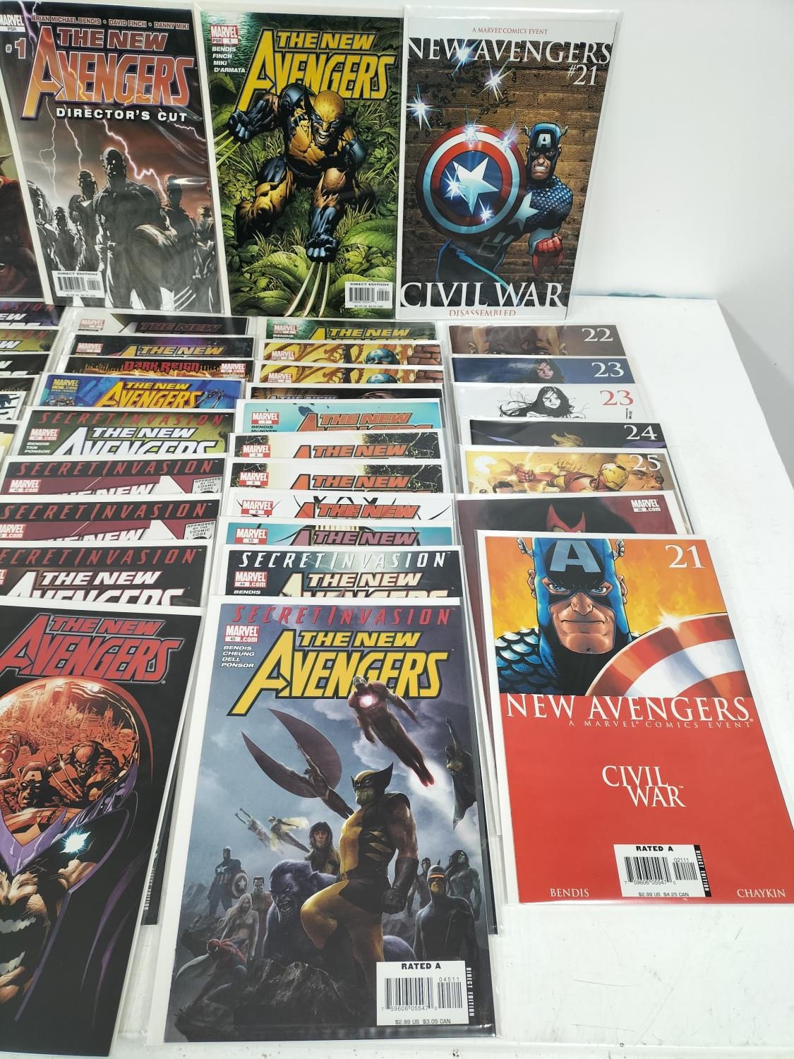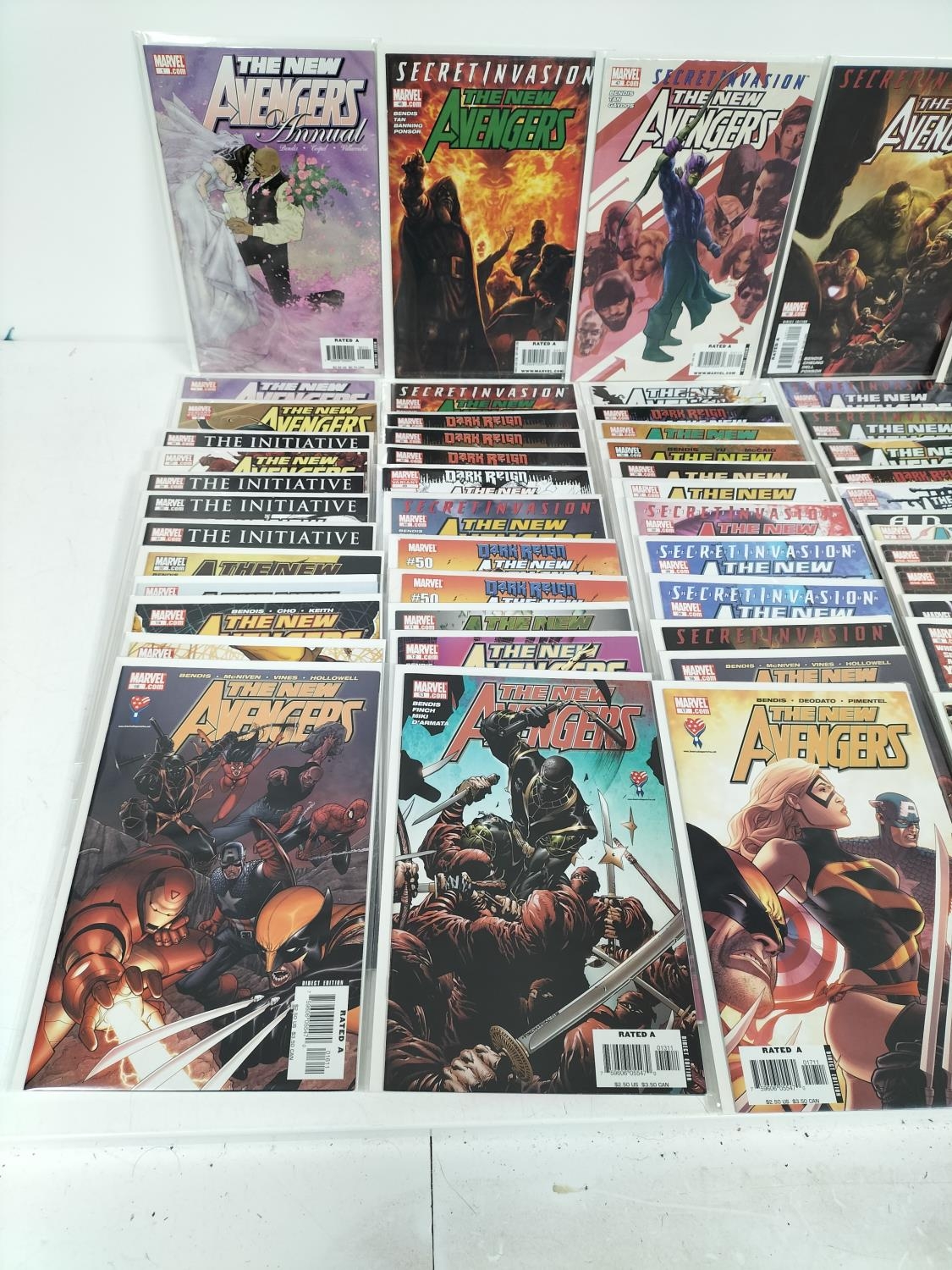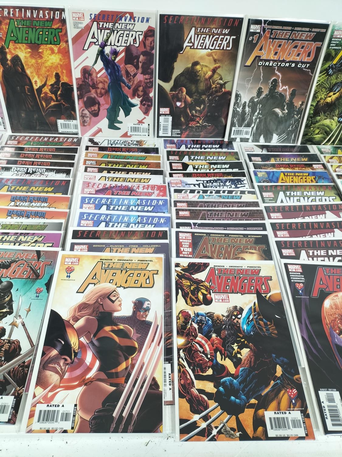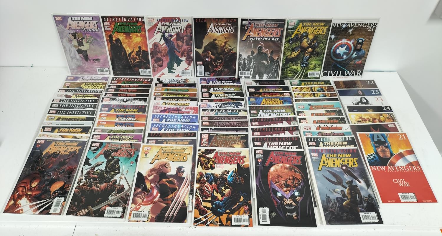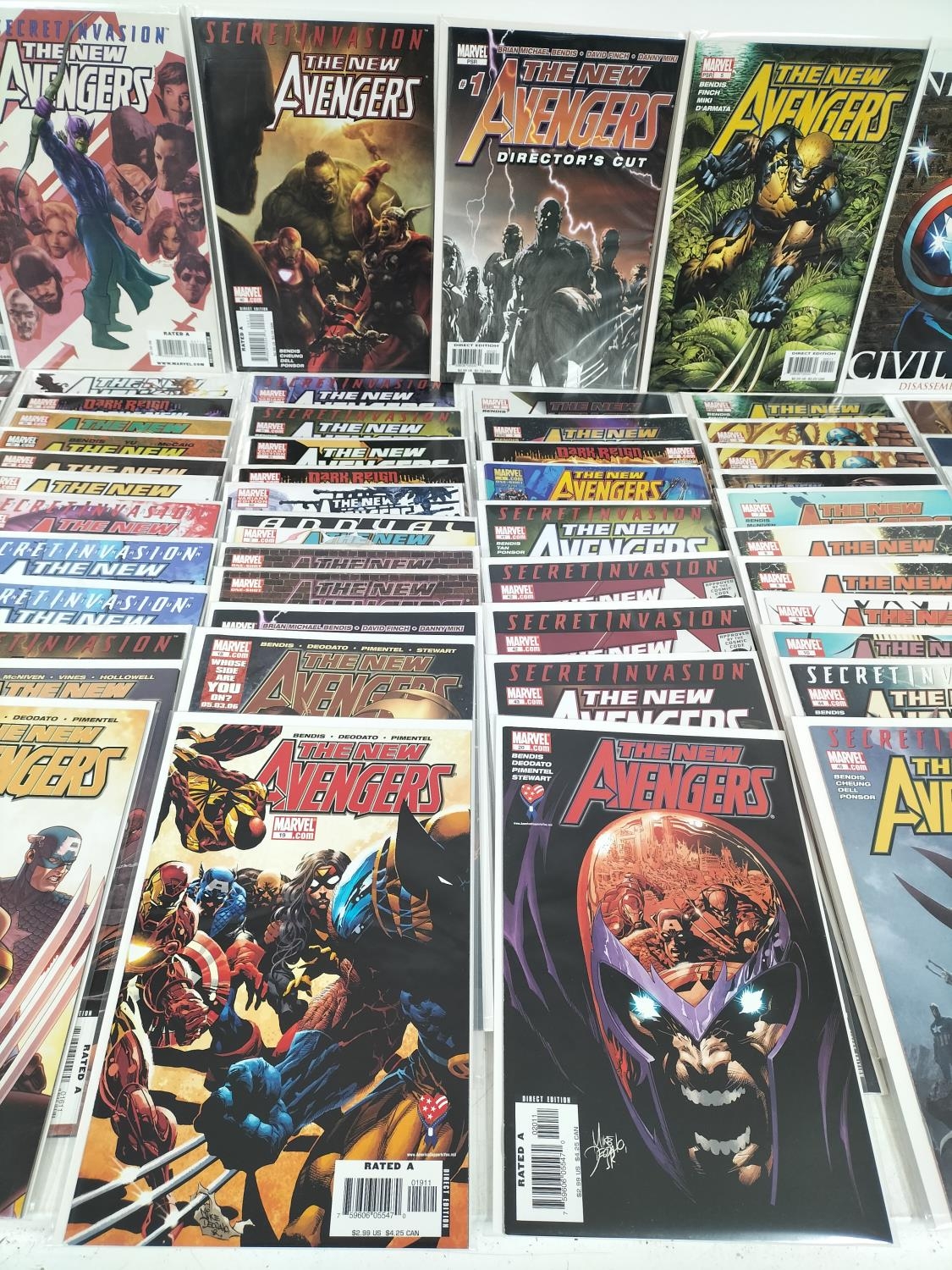 Collection of Marvel 2006- 2010 New Avengers Comics (Approx 80) to include Annuals No 1 x 2 and No 2, Most Wanted Files One Shot x 2, New Avengers 1, 1 Directors Cut, 2, 3, 5x2, 6x2, 6 Variant, 7, 8x2, 9, 10, 11, 12, 13, 14, 15, 16x2, 17, 18, 19, 20, 21 variant, 22, 23, 23 variant, 24, 25, 26, 27, 27 variant, 28, 29, 30, 31, 32, 33, 34, 35, 36, 37, 38, 39x2, 40x2, 40 variant, 41x2, 42x2, 43, 44, 45x2, 46x2, 47, 48x2, 49, 49 variant, 50x2, 50 variant, 51, 51 variant, 52, 52 variant, 53, Finale One Shot. All Bagged and Boarded.