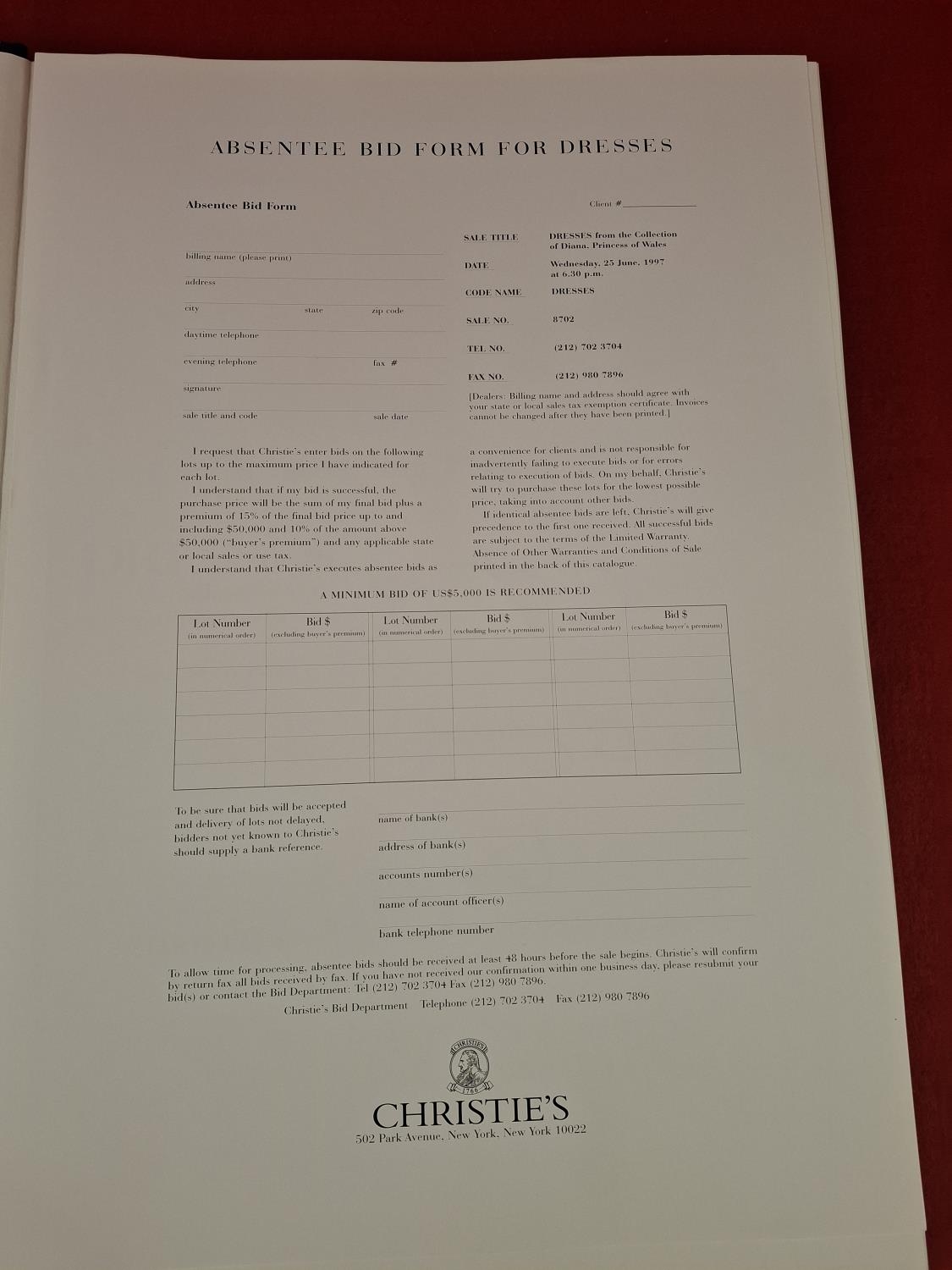 Christie's auction catalogue book "Dresses From The Collection of Diana Princess of Wales"