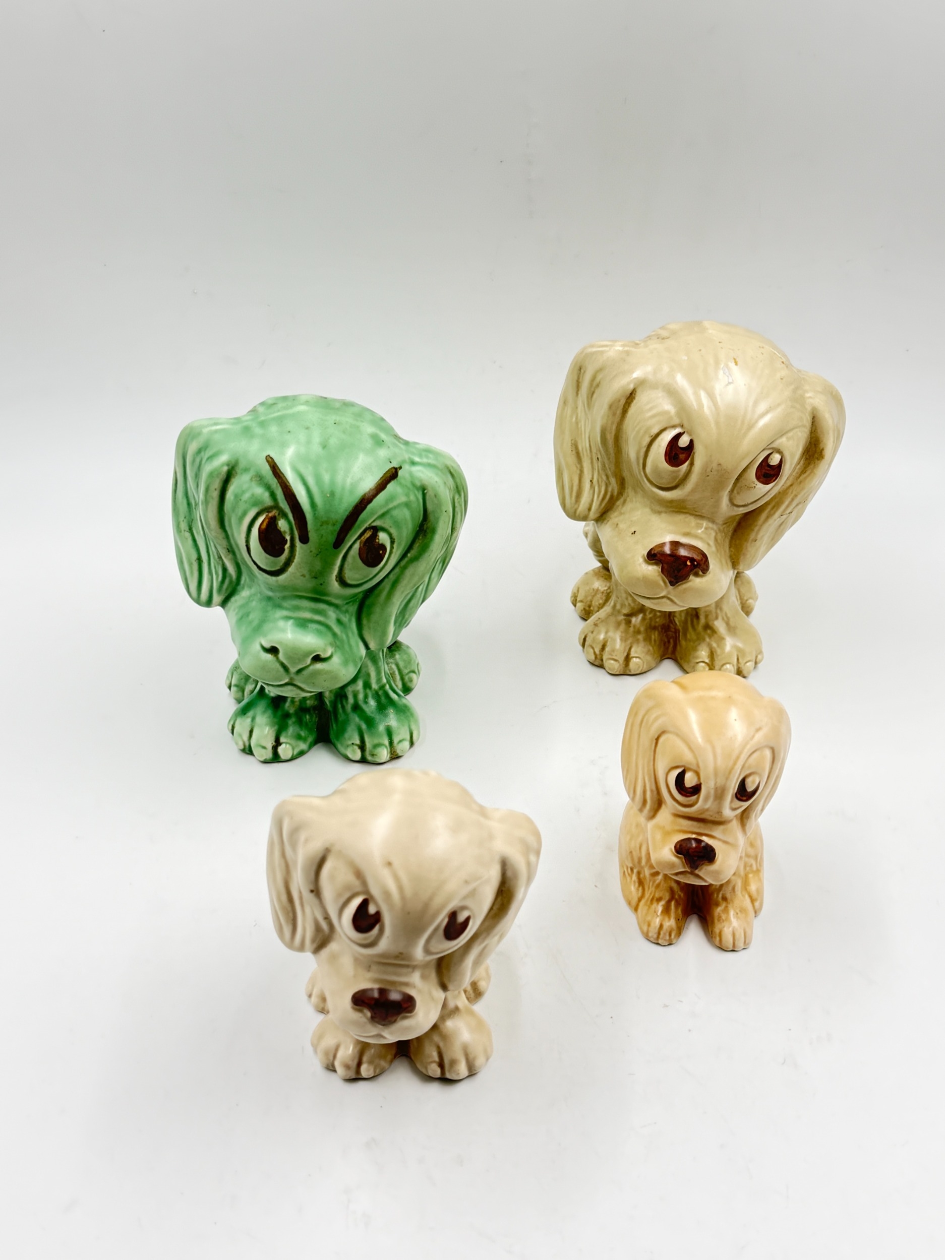 Four mid 20th century Sylvac Sammy the Sad Dog figurines - largest approx. 15cm high