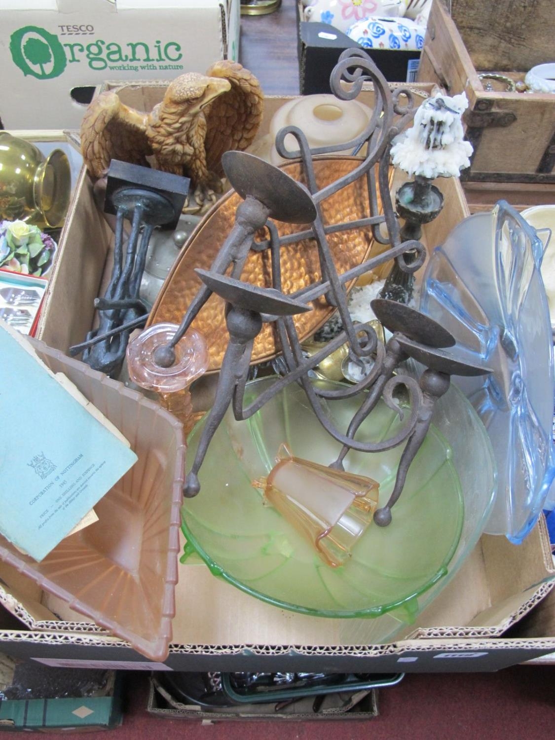 Ballett Dancers Metal Figure Group, pewter tea pot, pressed glass ware, resin eagle, etc:- One Box.