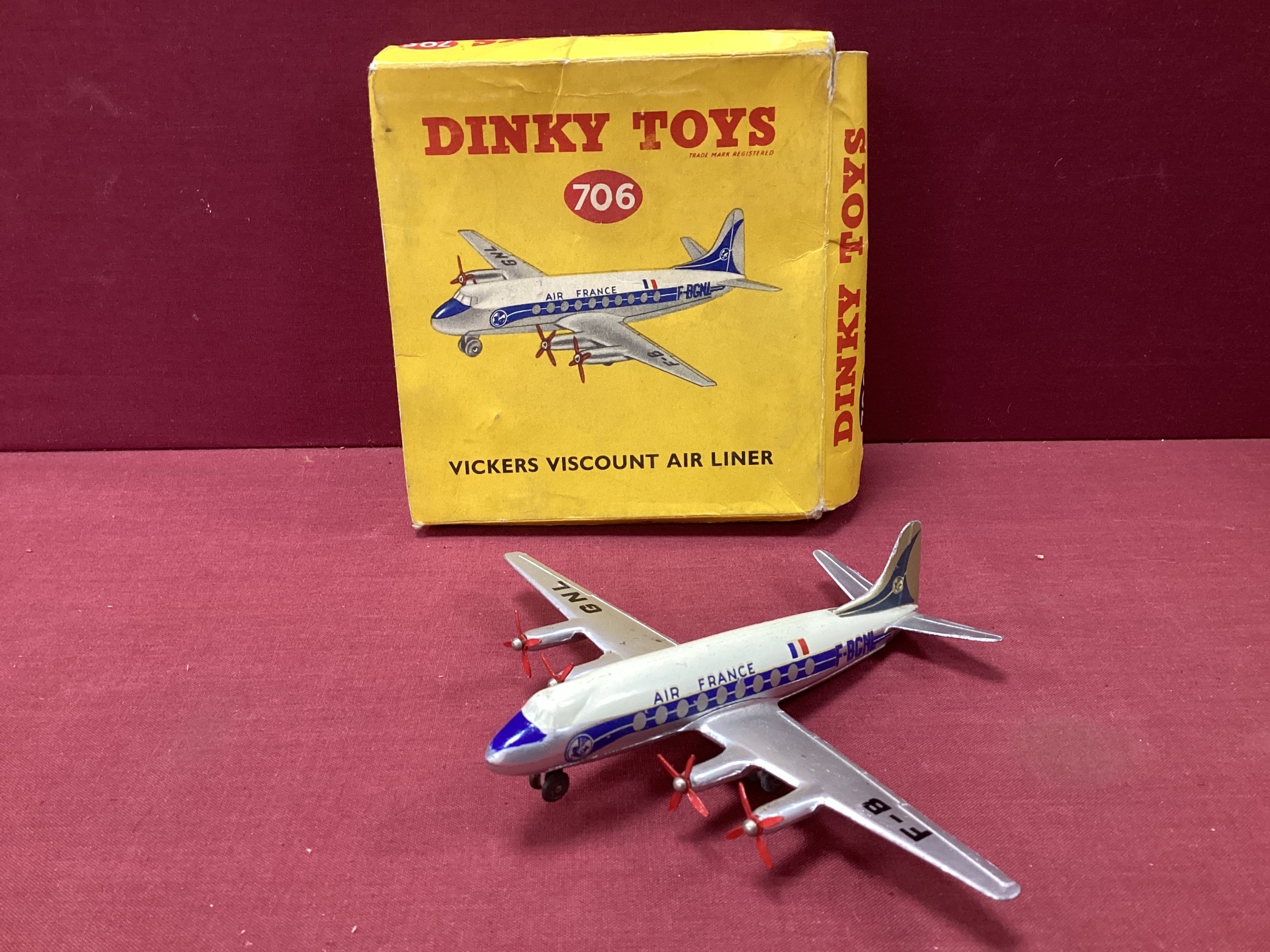 Dinky Toys No 706 Vickers Viscount Airliner, overall very good, boxed, some crushing to box and no insert,