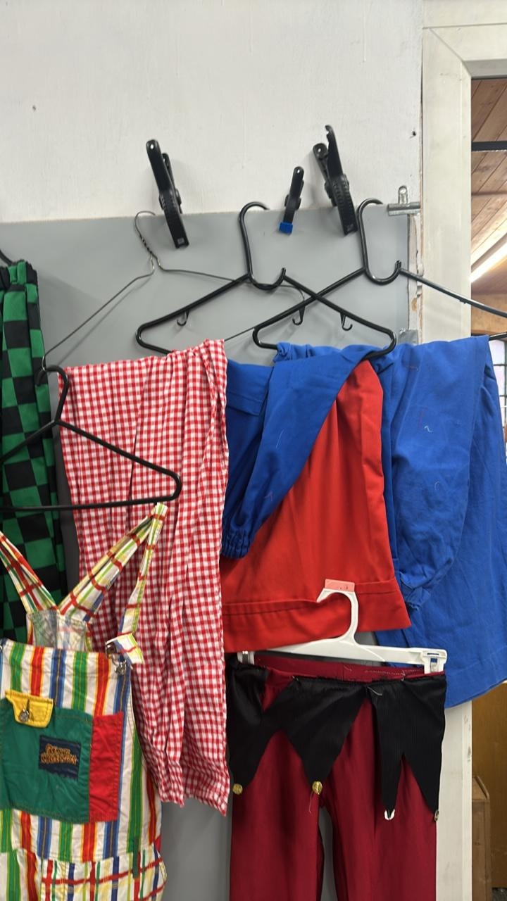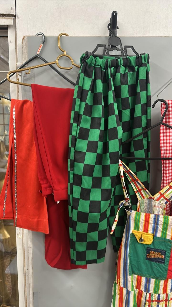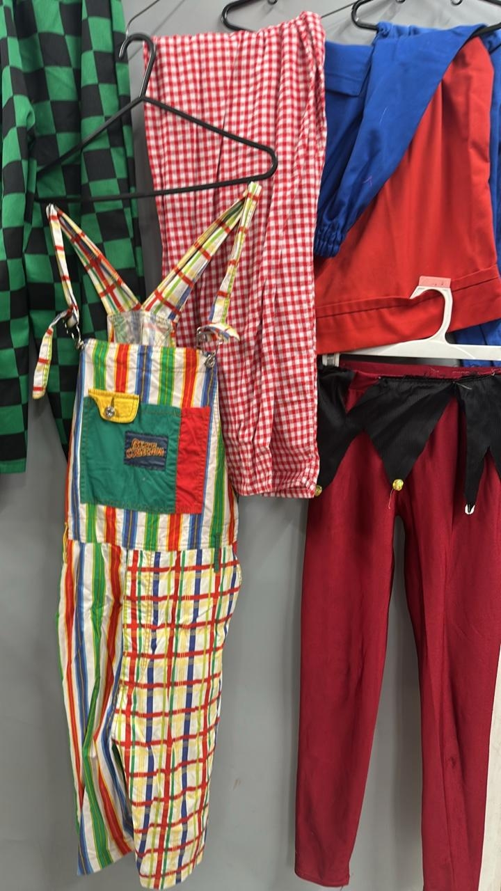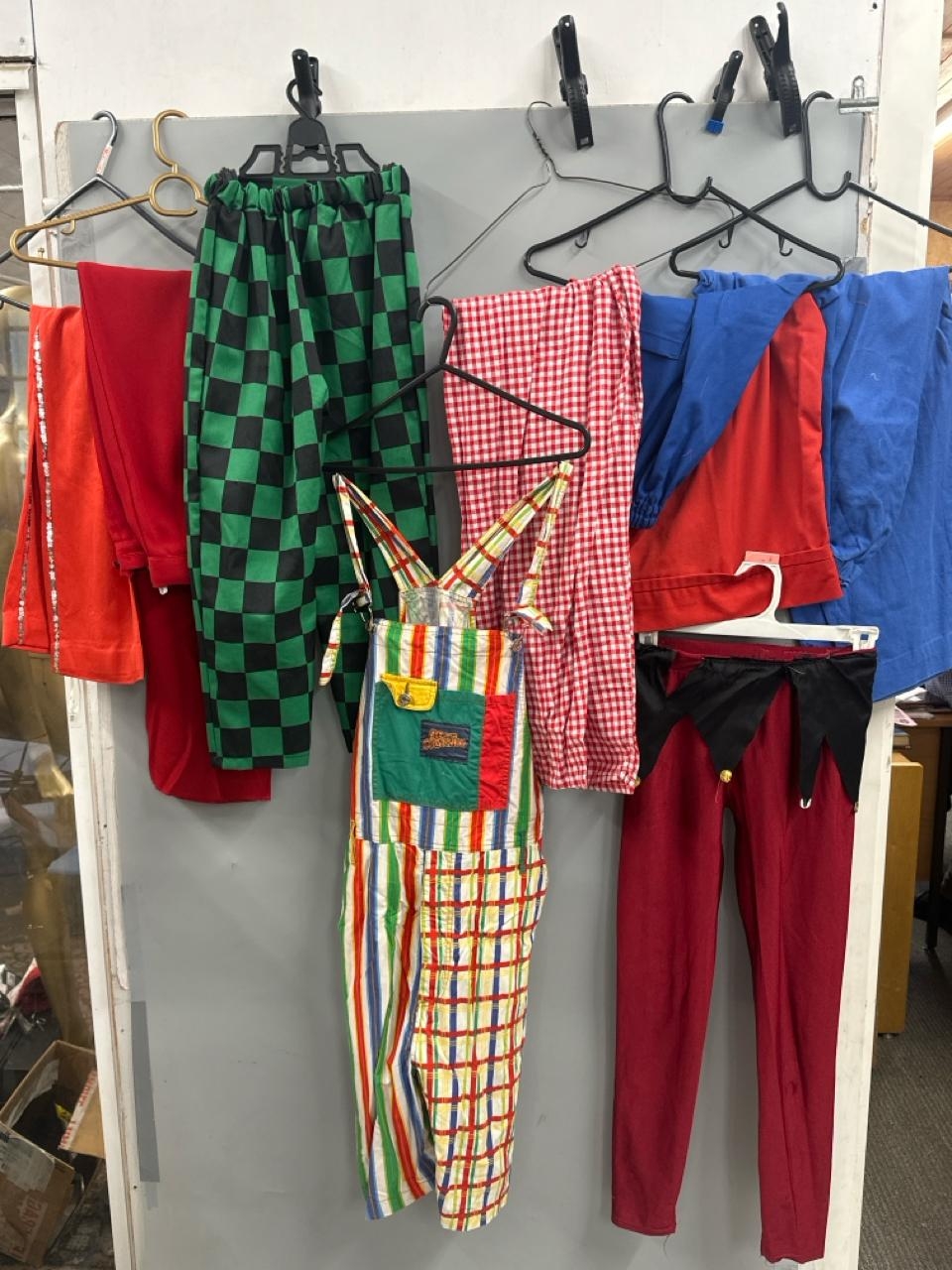 Assorted stage worn clown and circus performers trousers / Rail 4