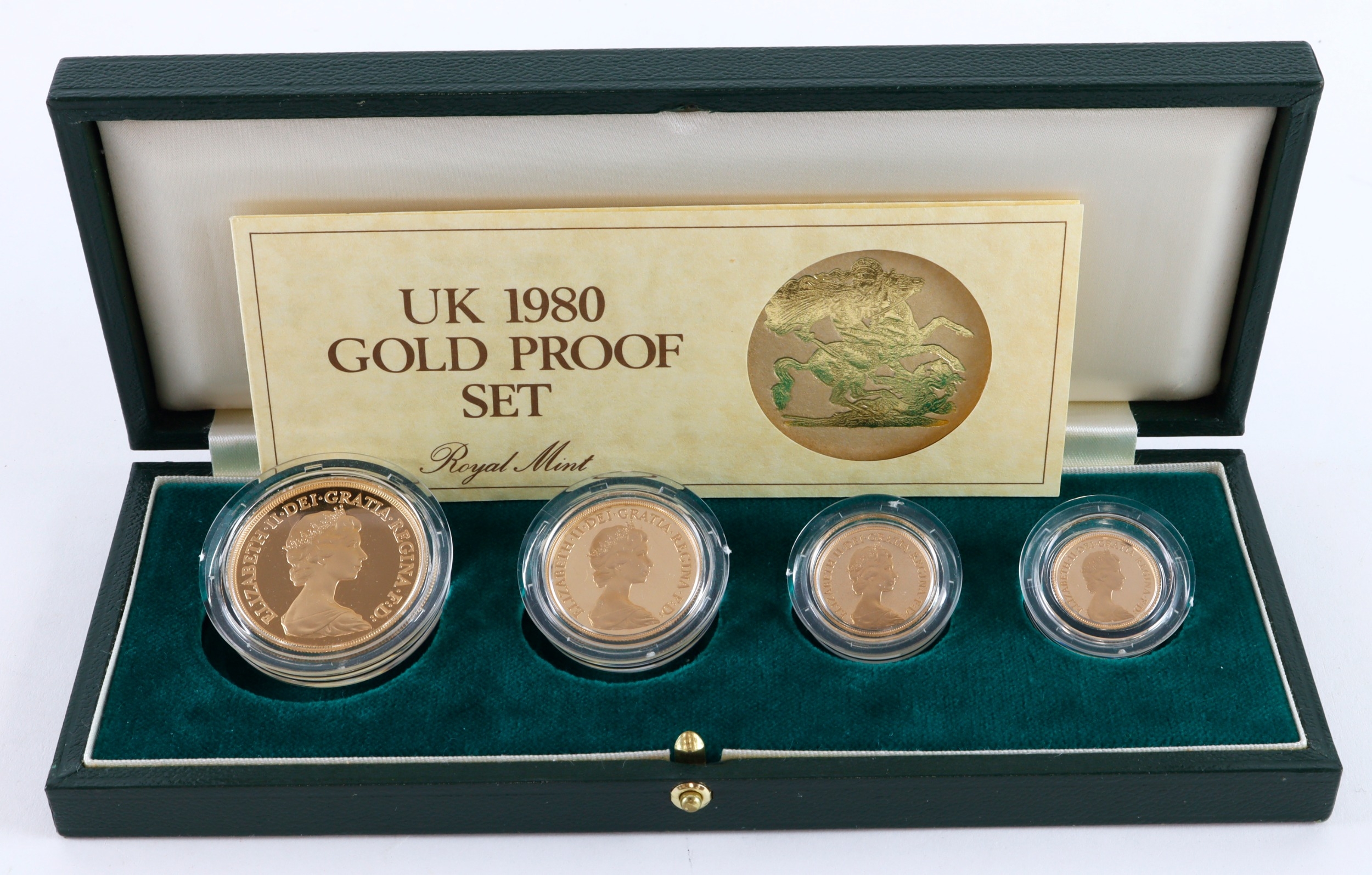 Four coin set 1980 (Five Pounds, Two Pounds, Sovereign & Half Sovereign). Proof FDC boxed as issued