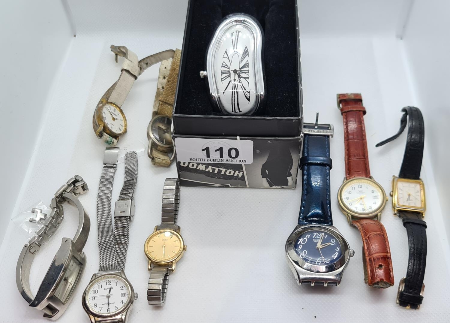 Nine ladies watches. Inc Swatch and Seiko and Salvador Dali Hollywood style watch.