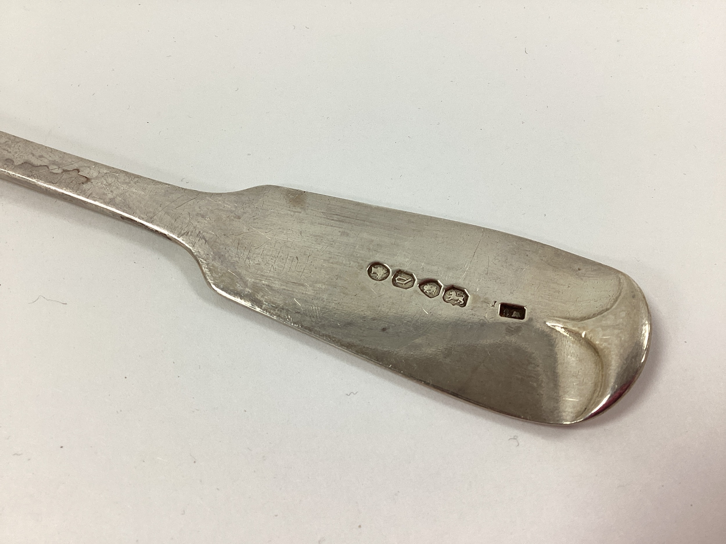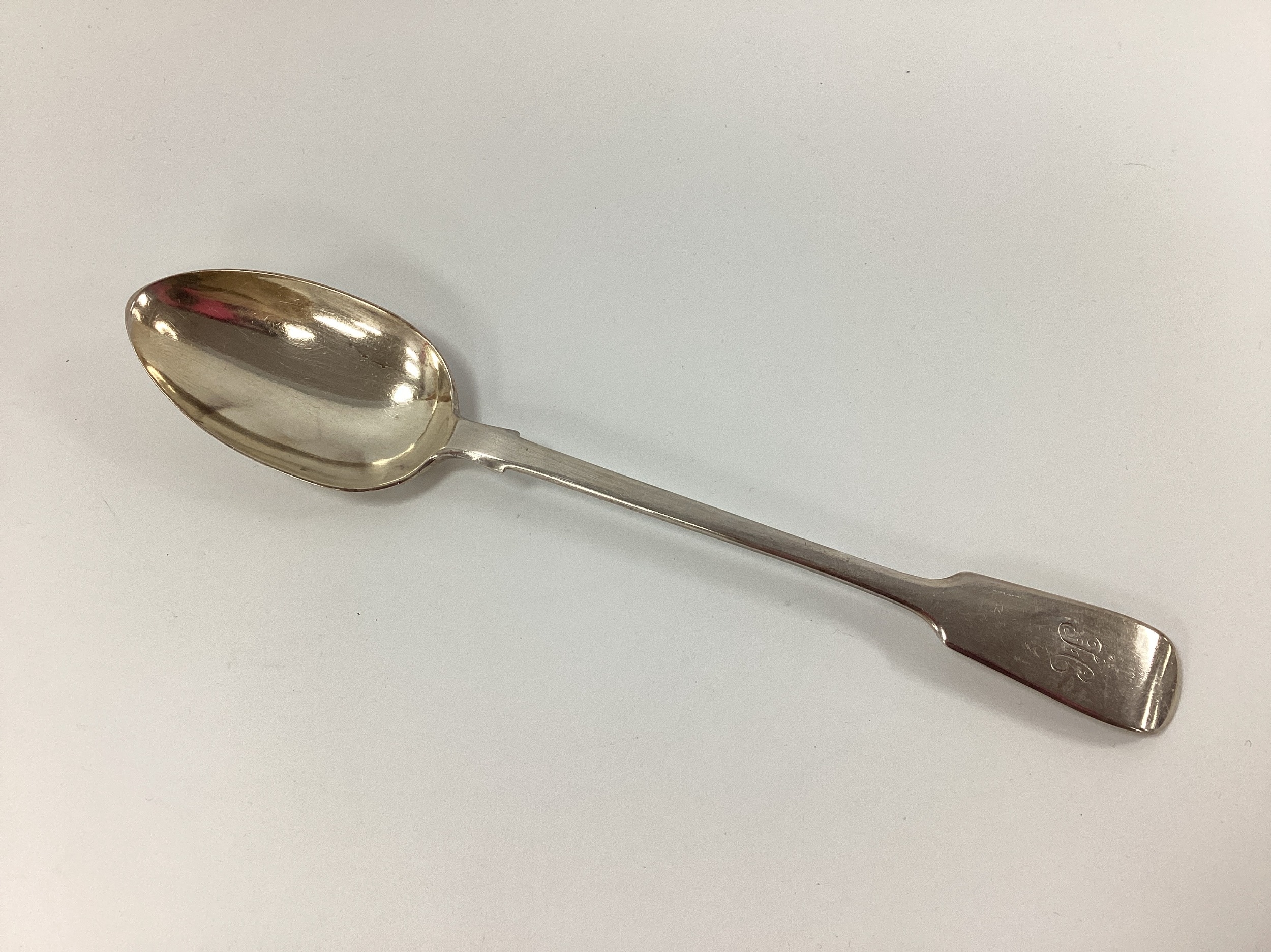 A Victorian Hallmarked Silver Fiddle Pattern Basting Spoon, WS, London 1859, initialled, 30cm long (140grams).