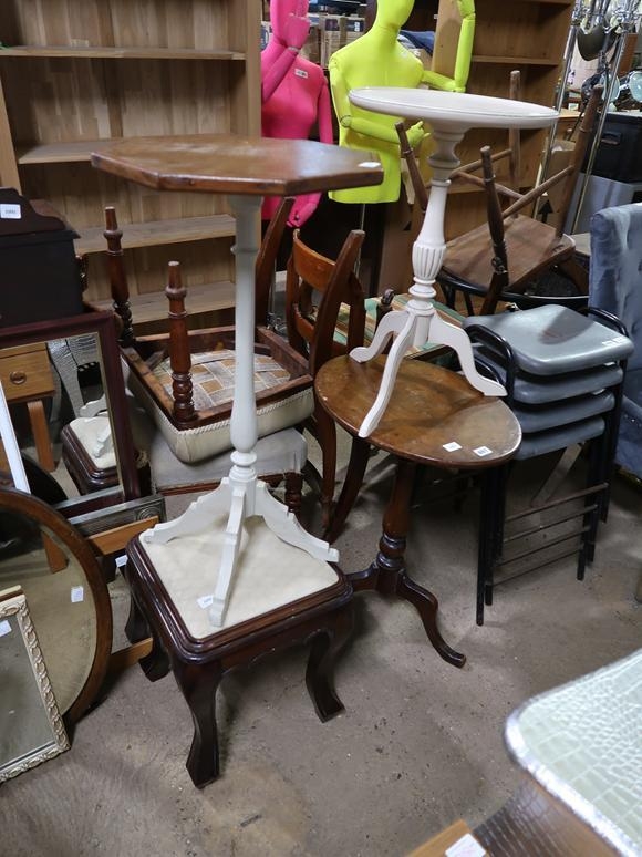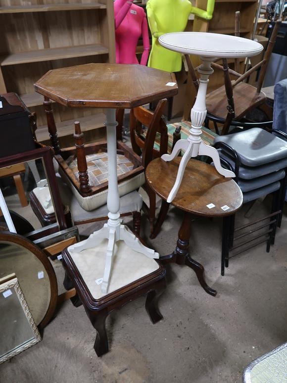 THREE TRIPOD TABLES AND A STOOL