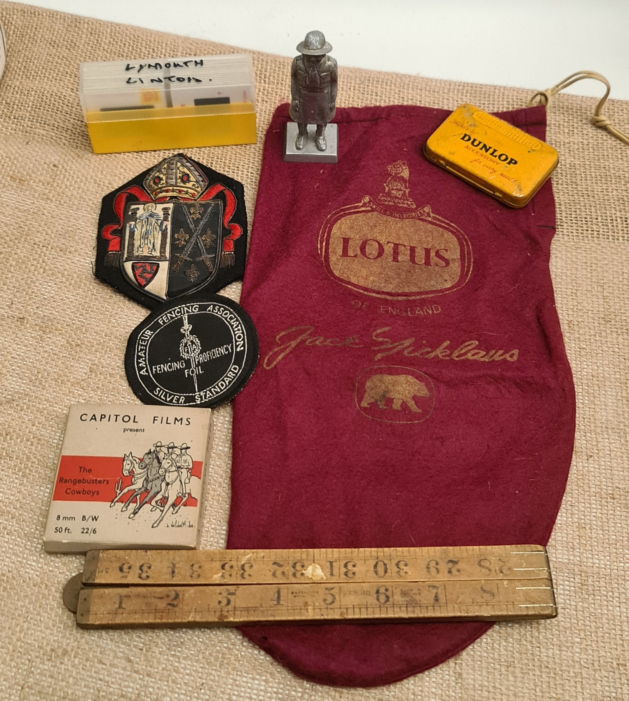 Vintage Parcel of Assorted Items. Includes Lotus Shoes Bag, Female Pewter Scout Figure, Badges, Tin, 8mm Film and Photographic Slides Which Include Motor Racing. Shipping is available. Please ask for a quote before bidding. Where possible we combine shipping costs. Remember, if you are the highest bidder above reserve on this Lot you have bought the item and are legally responsible for the item. Viewing is recommended in either person or via video link. Contact us to arrange.