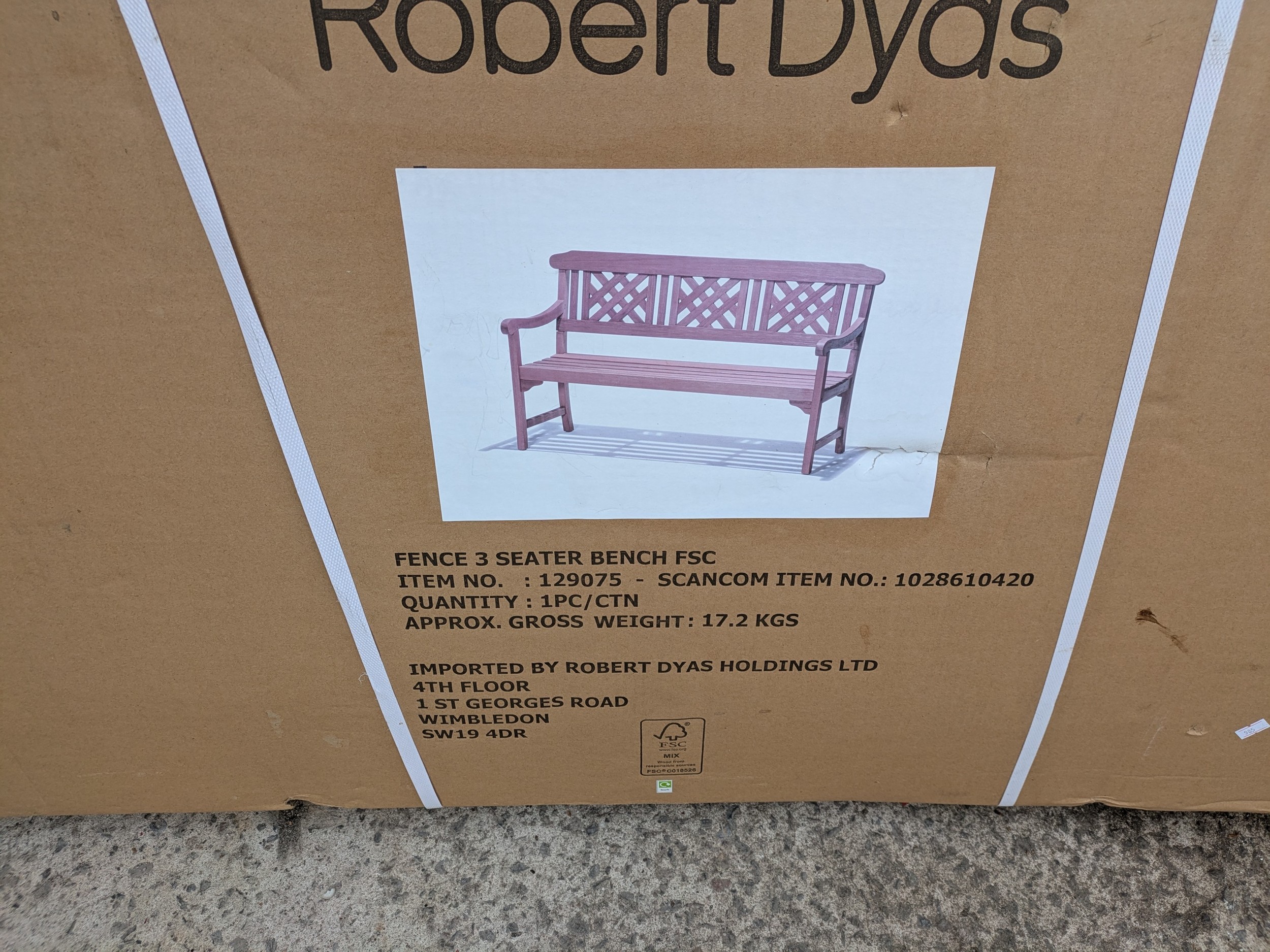 An unused Robert Days fence 3 seater bench