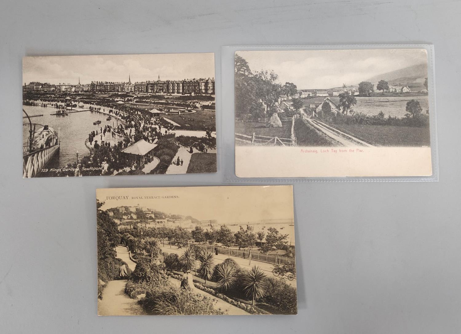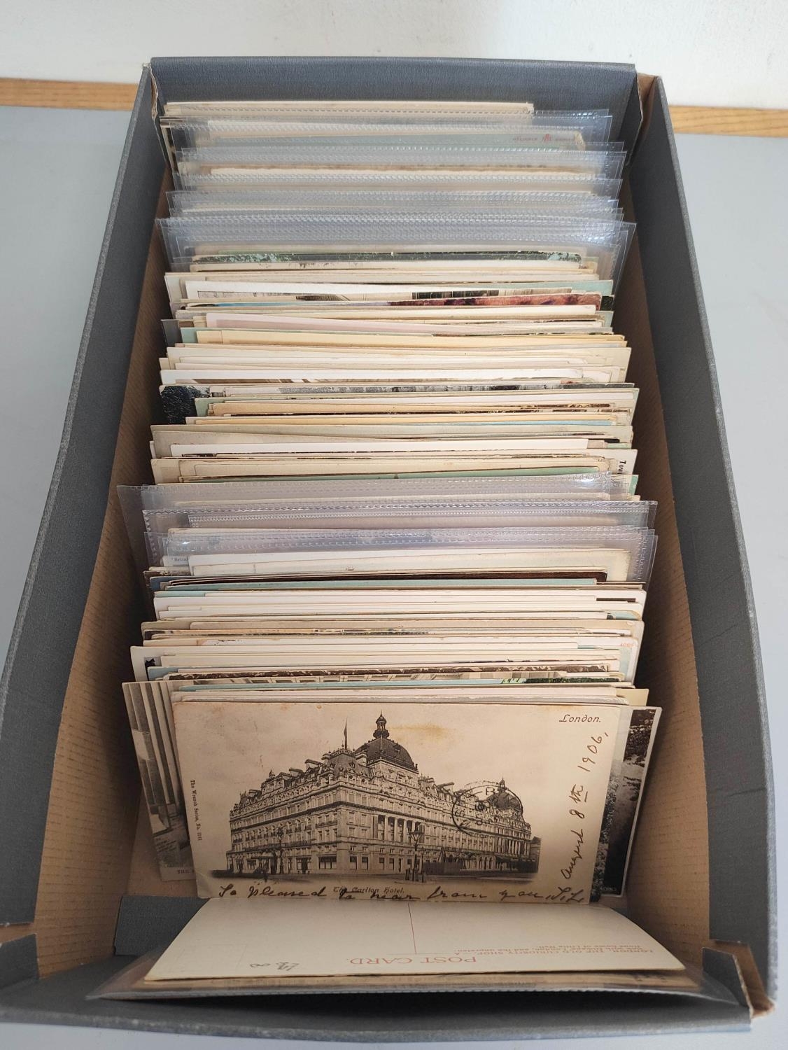 Carton containing over 420 early 20th century postcards mostly of British cityscapes and coastal views. To include a First World War field service postcard.