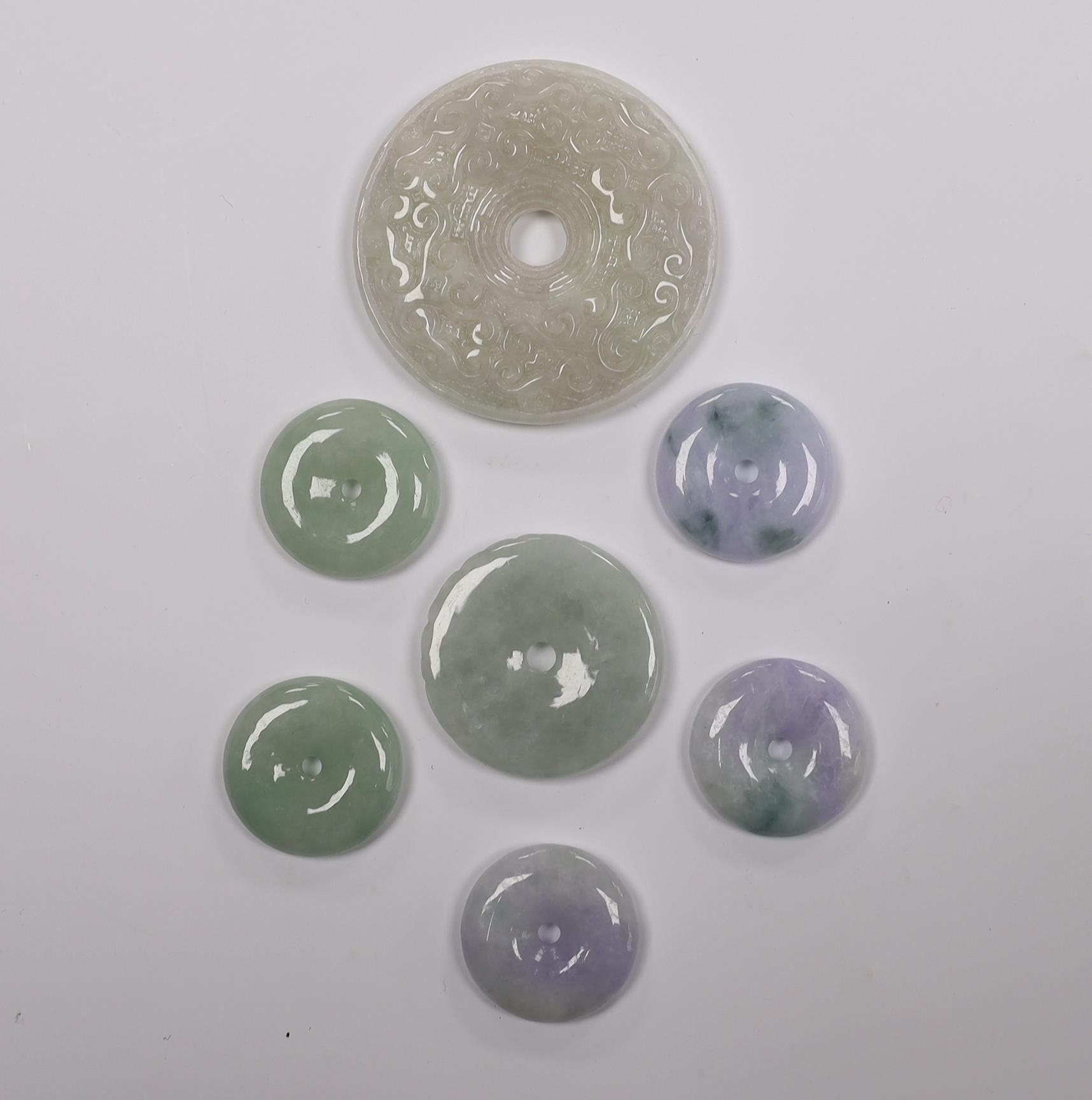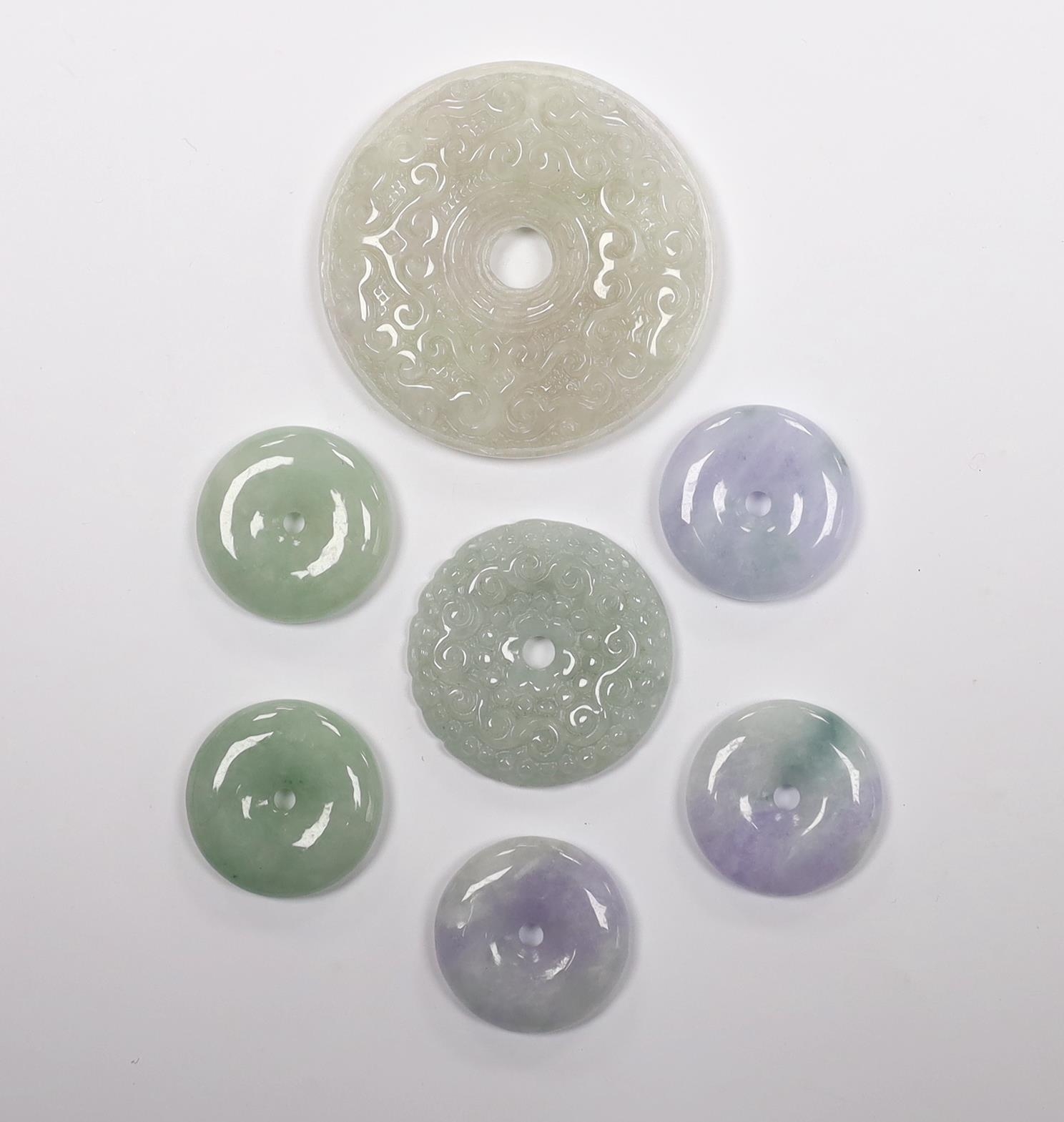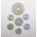 Seven Chinese carved jadeite bi discs