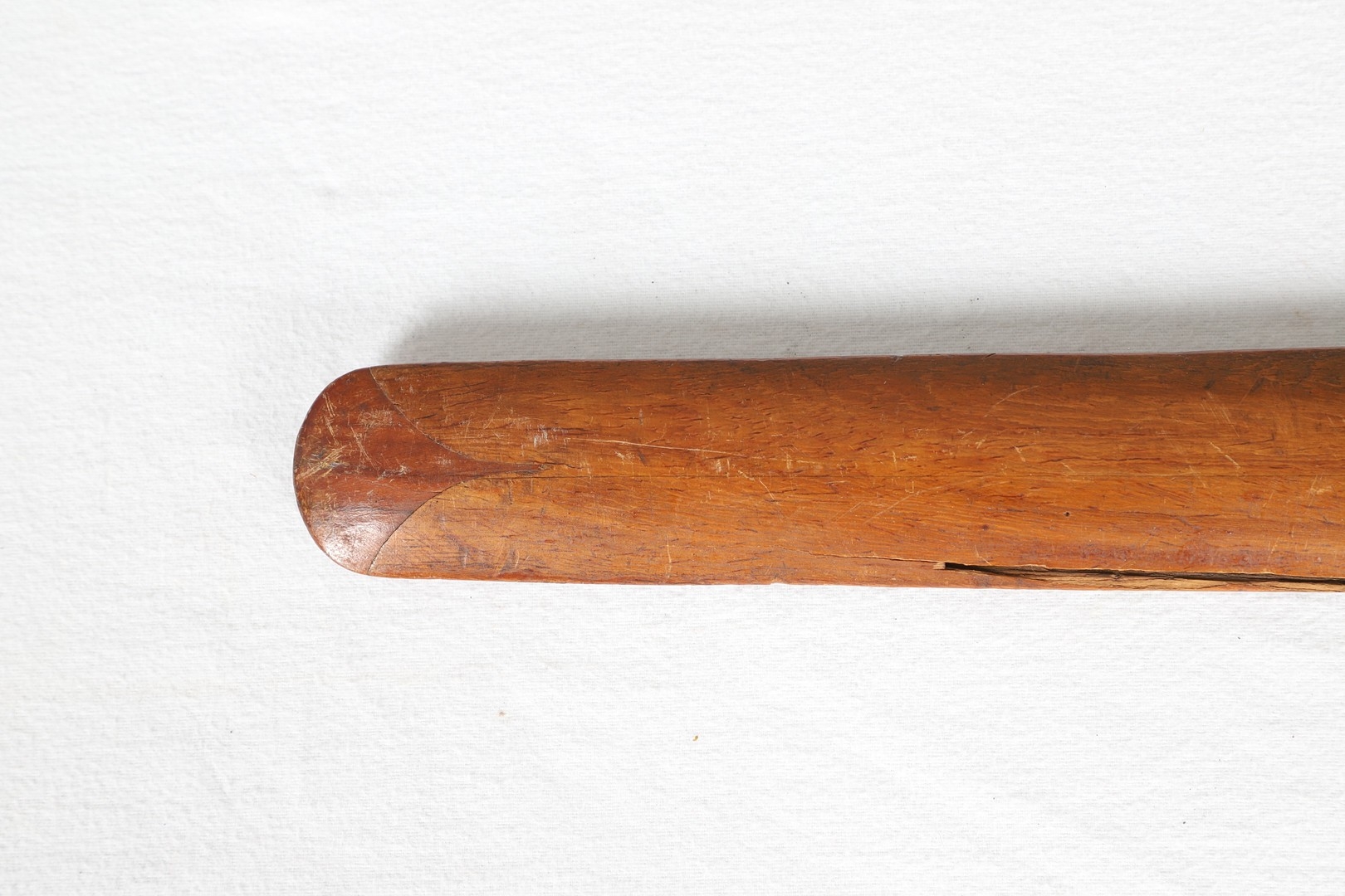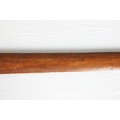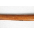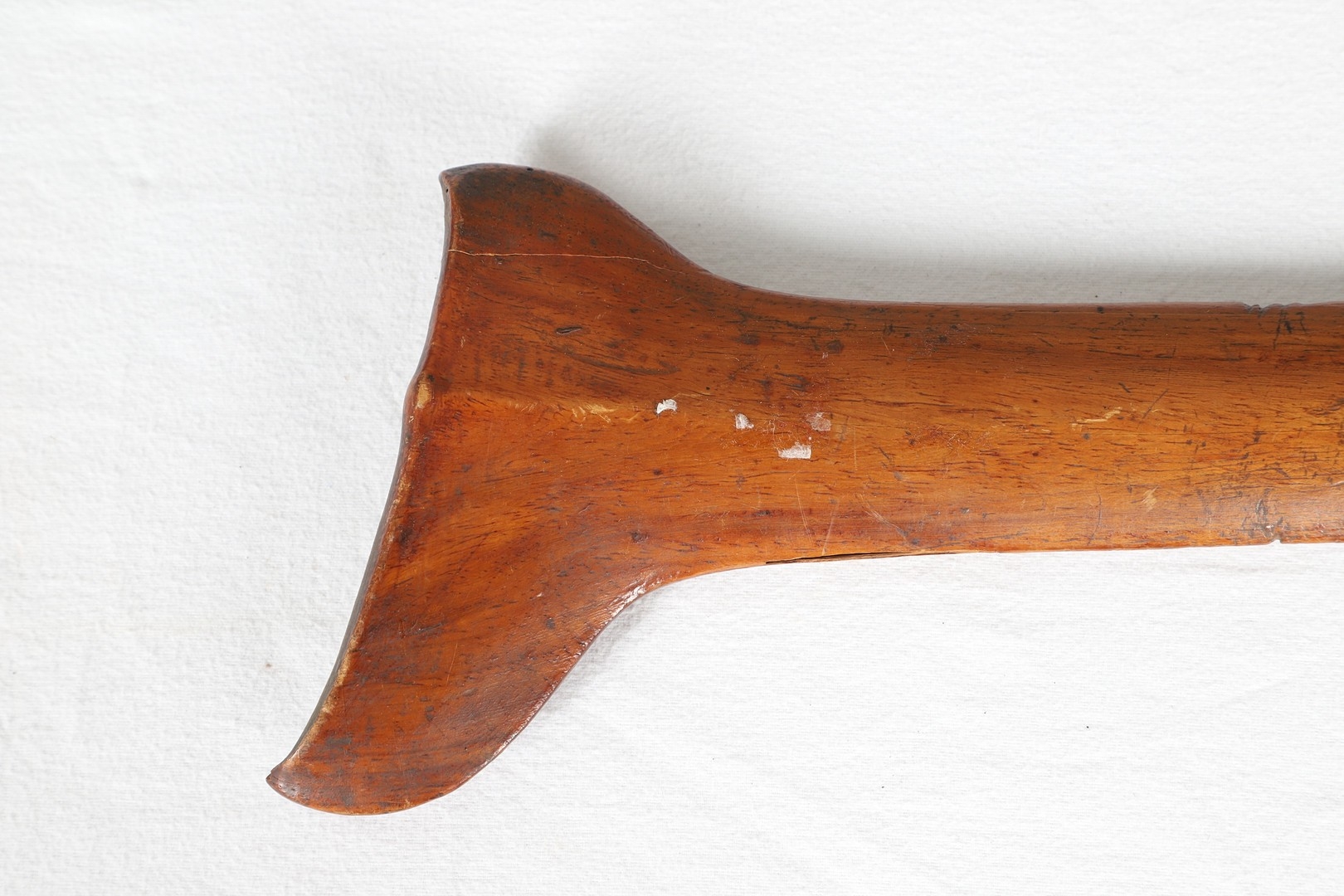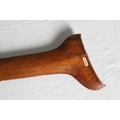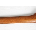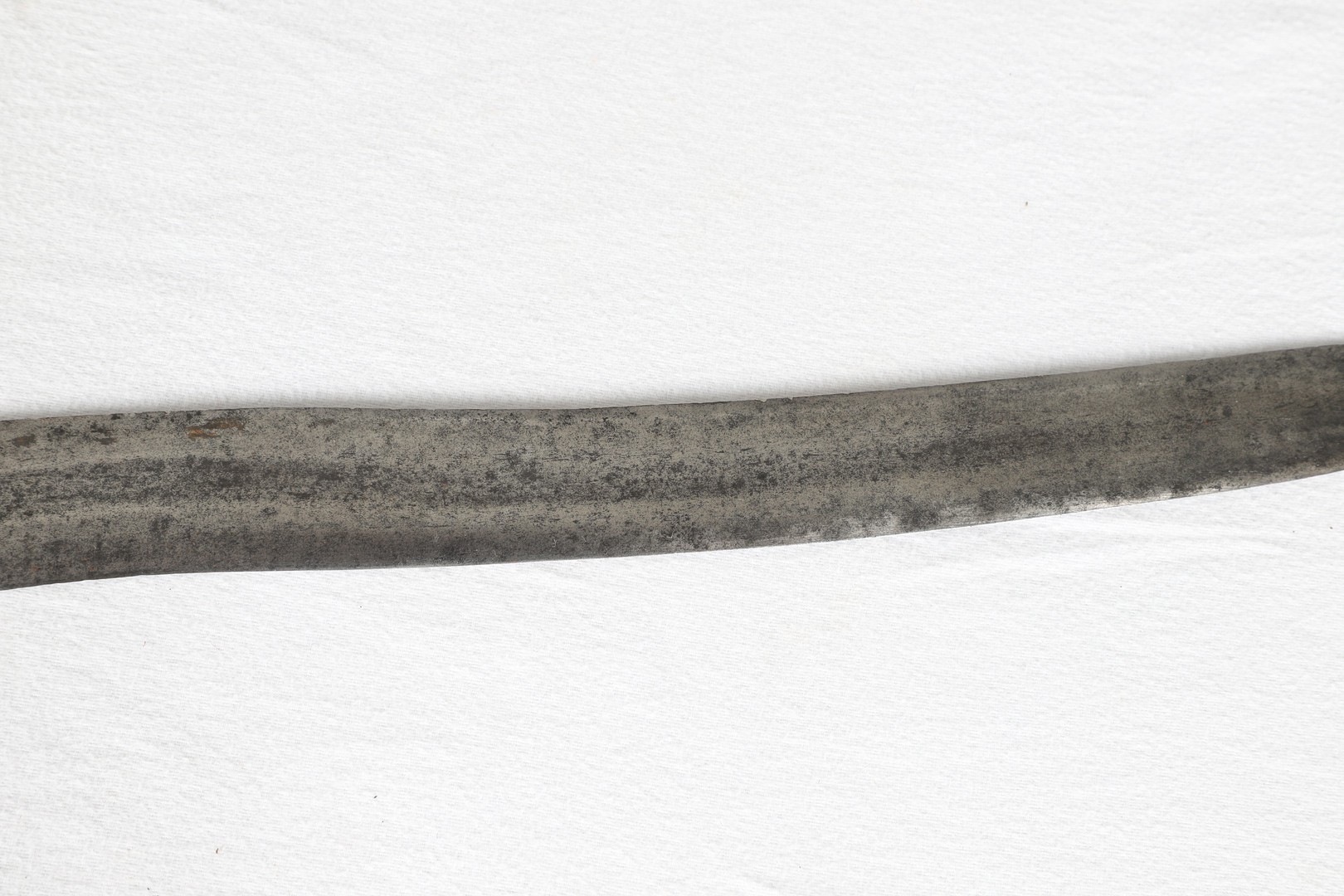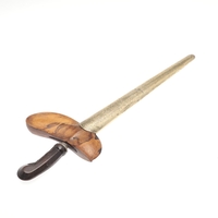 A PHILIPPINES KRIS SUNDANG AND SCABBARD. The 53 cm blade with six or seven faint curves and a central fuller, the cross piece with a decorated edge. On a wooden grip with a hooked pommel. In a plain wooden scabbard in the 'Sandang Wakikat' style. 68 cm.