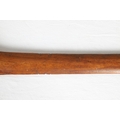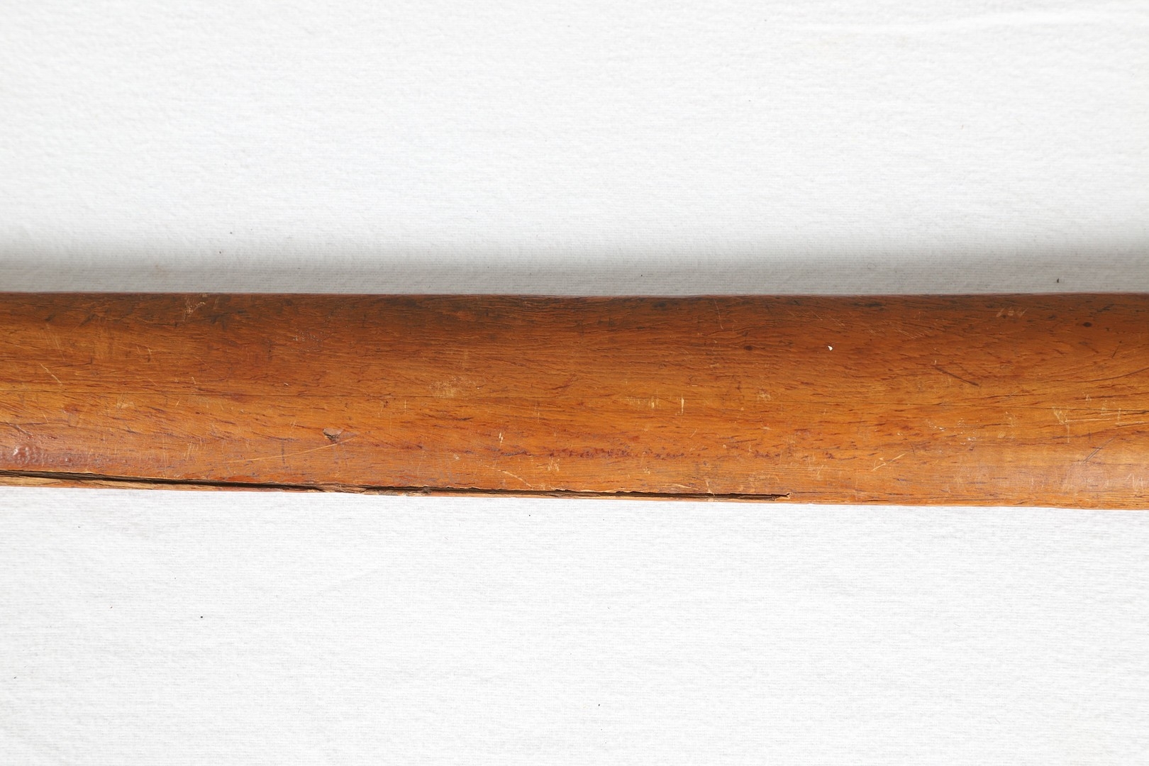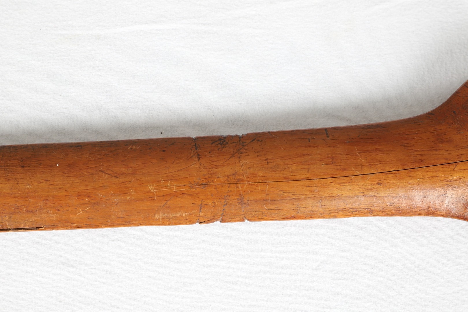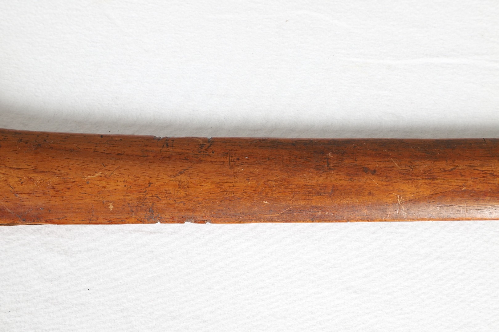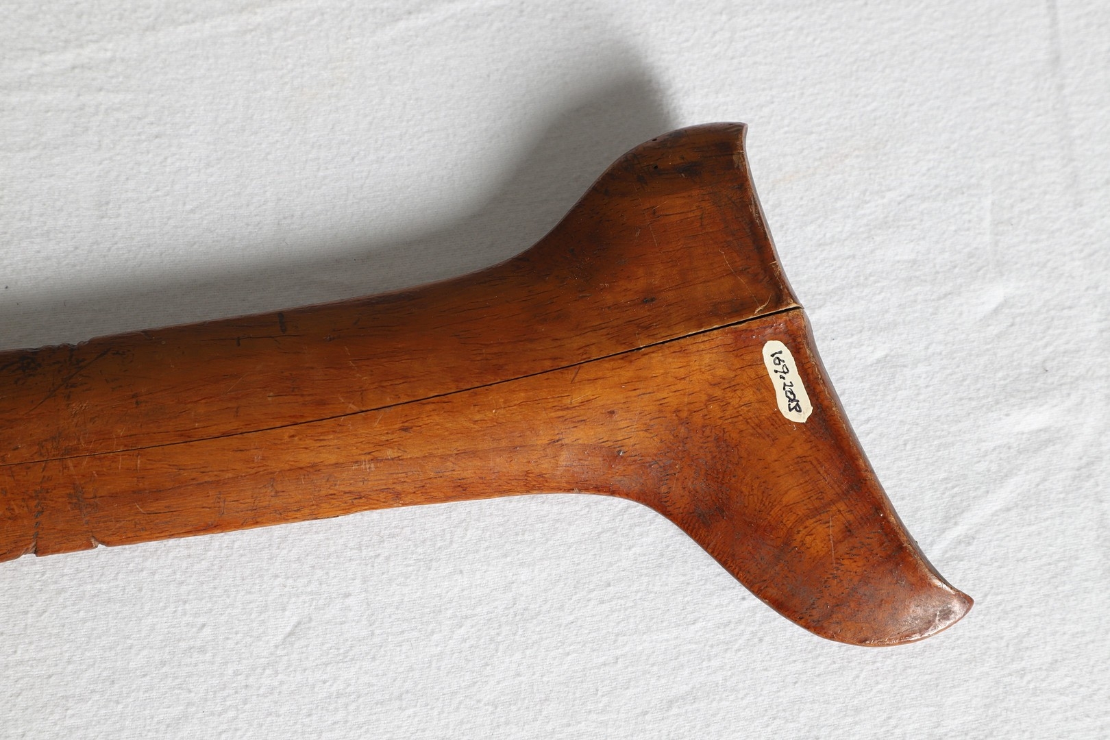 A PHILIPPINES KRIS SUNDANG AND SCABBARD. The 53 cm blade with six or seven faint curves and a central fuller, the cross piece with a decorated edge. On a wooden grip with a hooked pommel. In a plain wooden scabbard in the 'Sandang Wakikat' style. 68 cm.