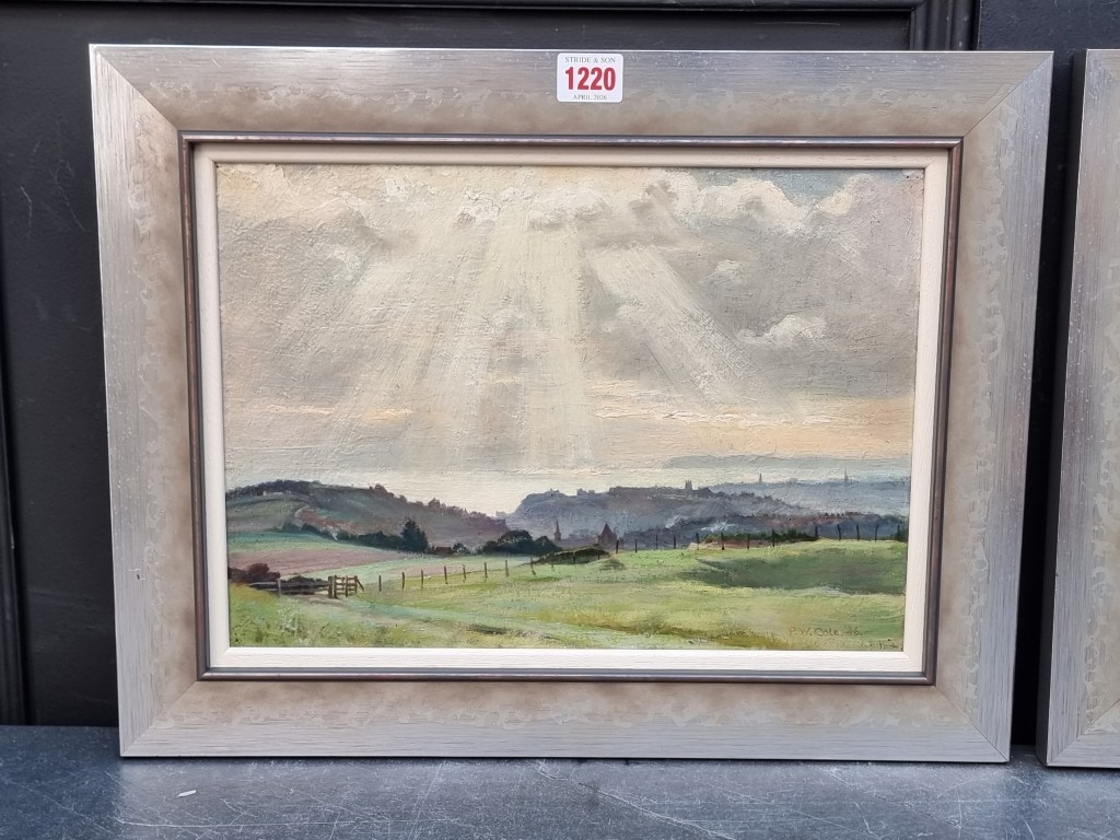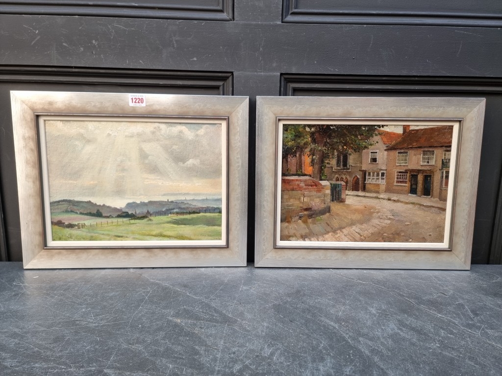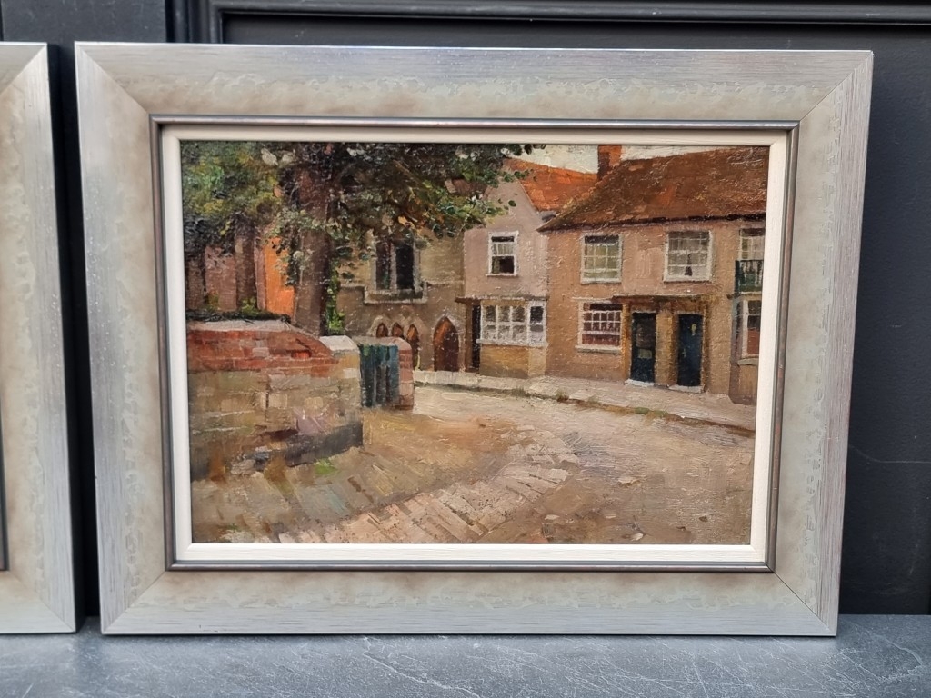 Philip W Cole, South Coast Scene; Town Scene, a pair, one signed and dated '46, oil on board, 24.5 x 34.5cm. (2)