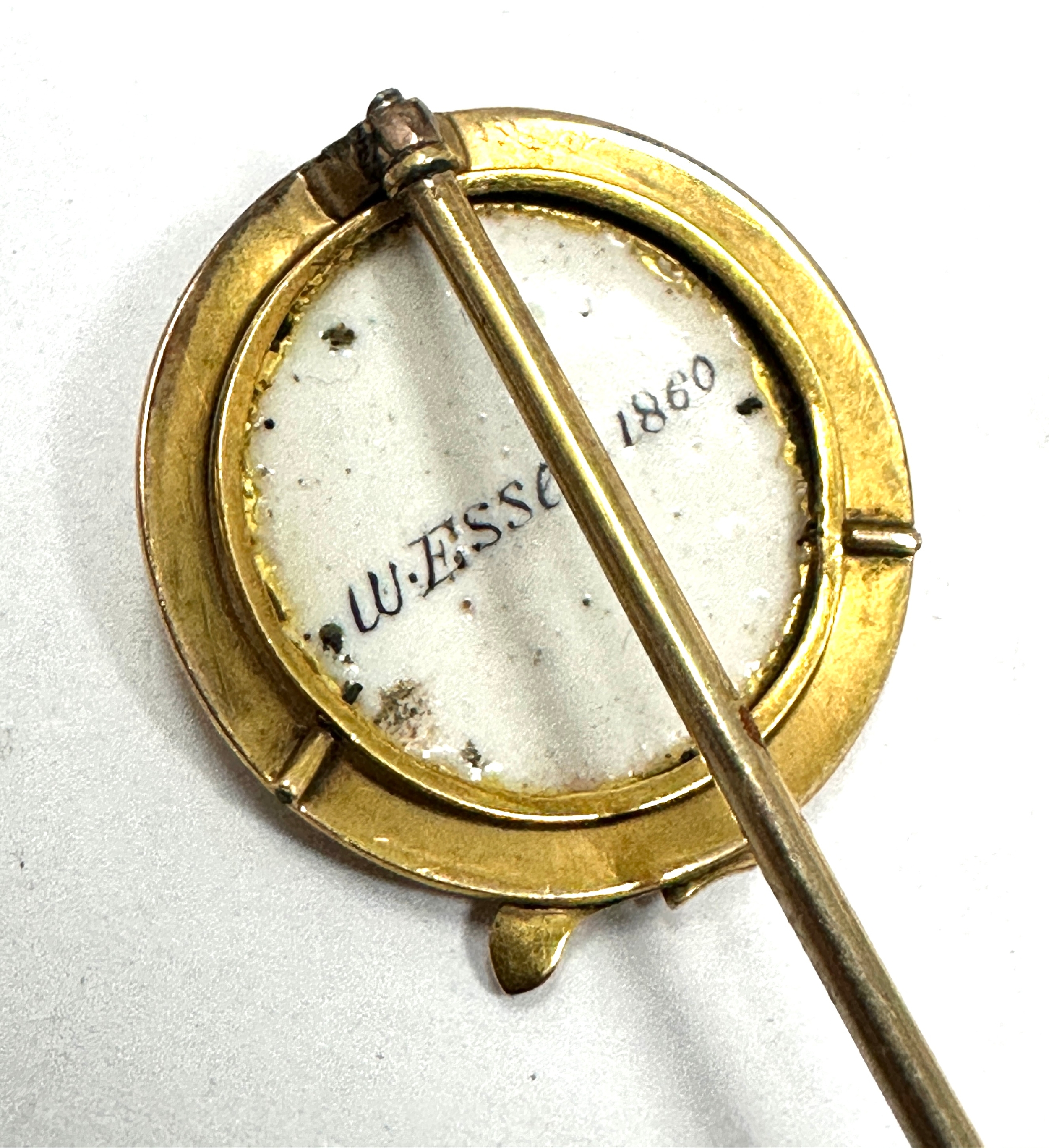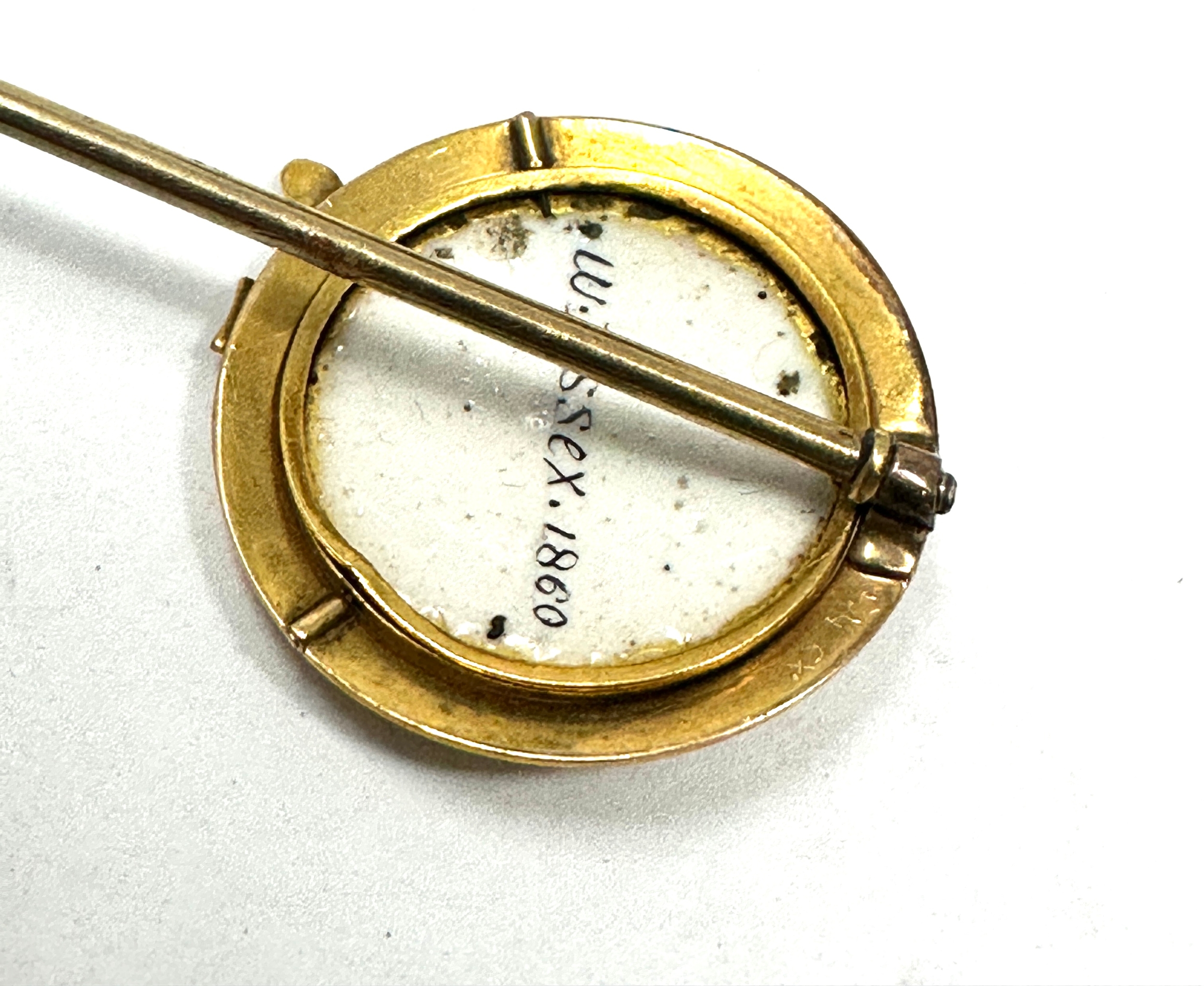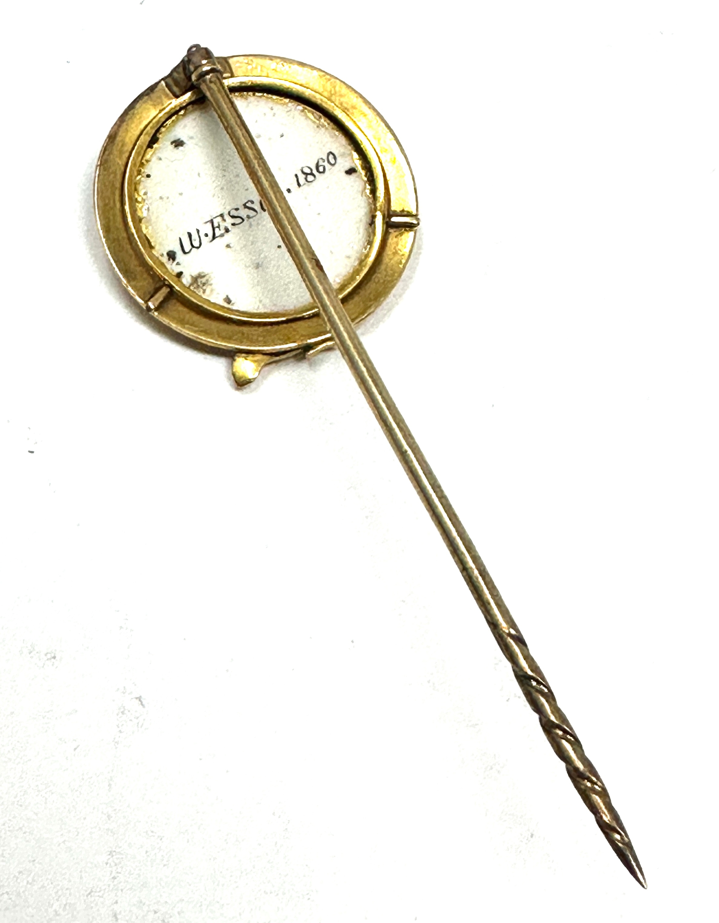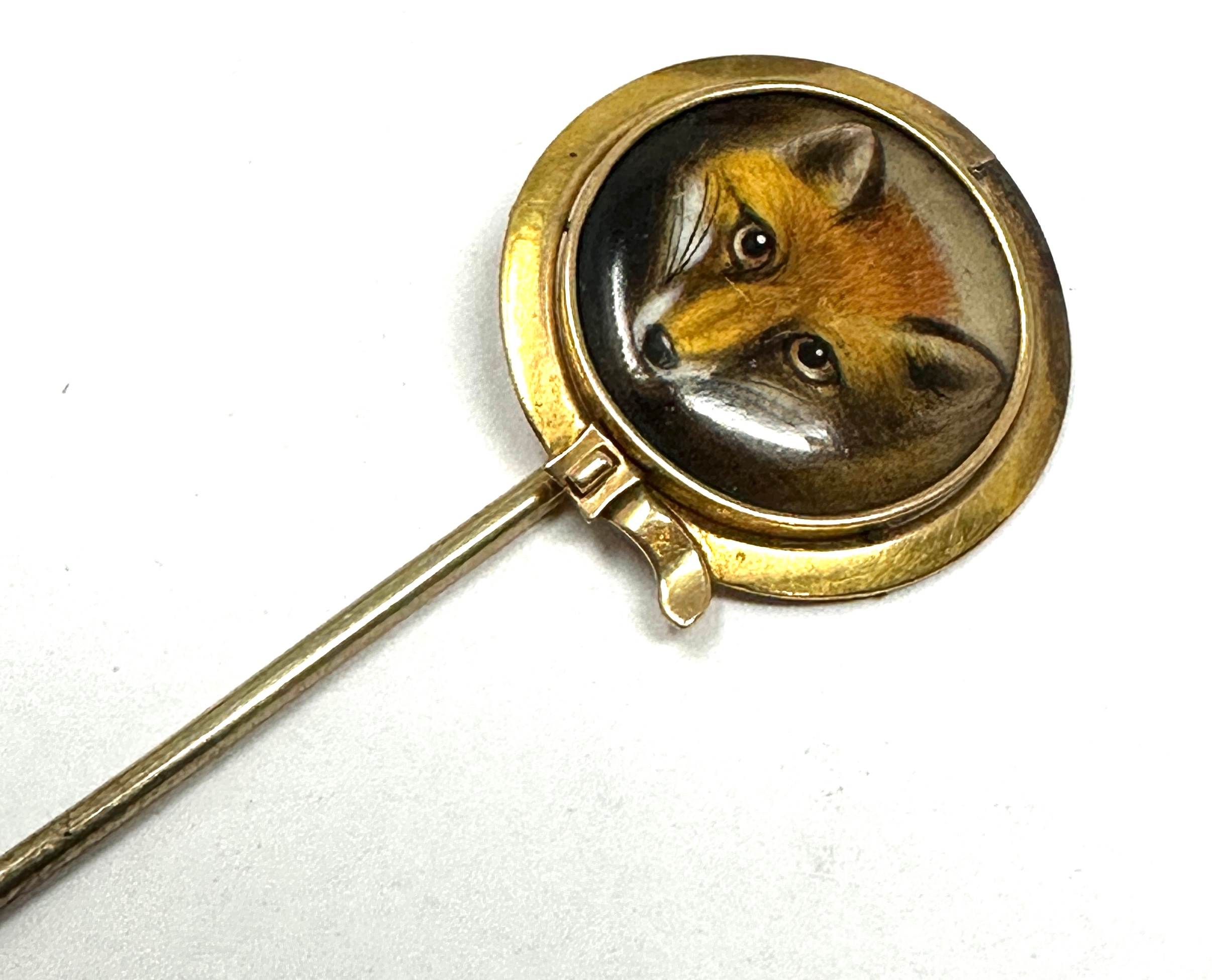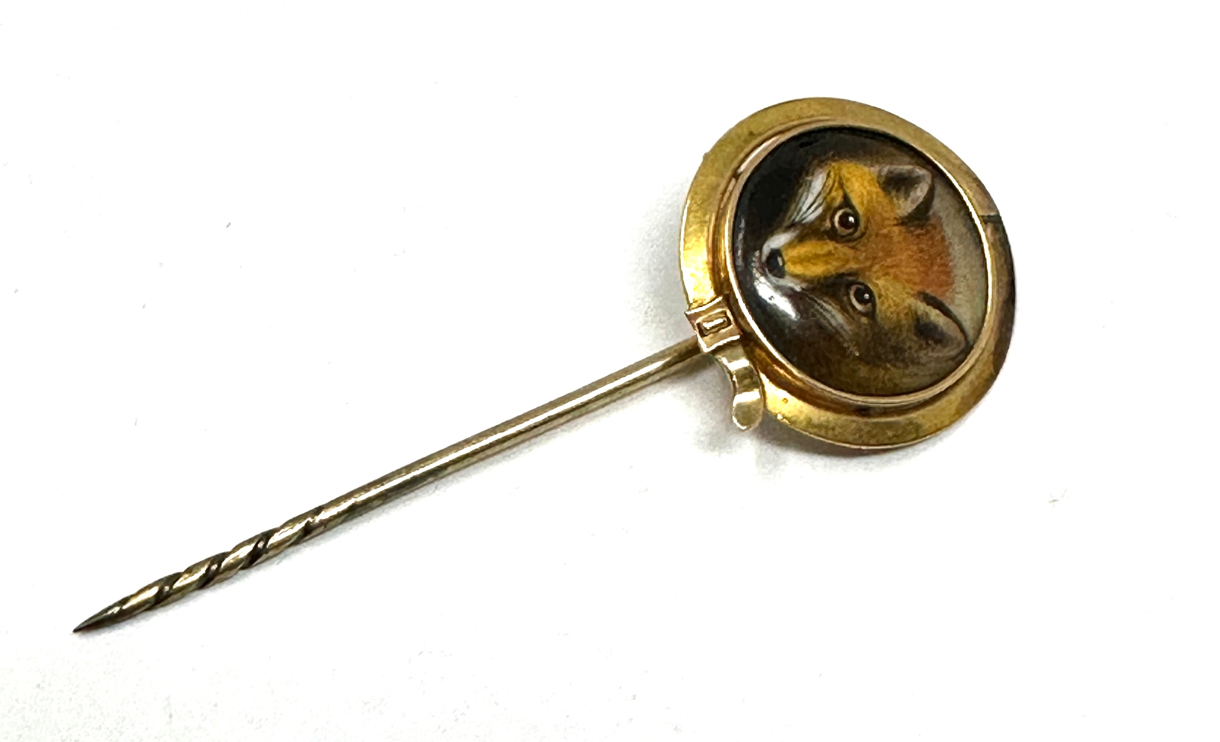 Rare Antique Gold signed W. Essex 1860 Fox's Head Stickpin measures approx 6.2cm head measures approx 2.3cm dia