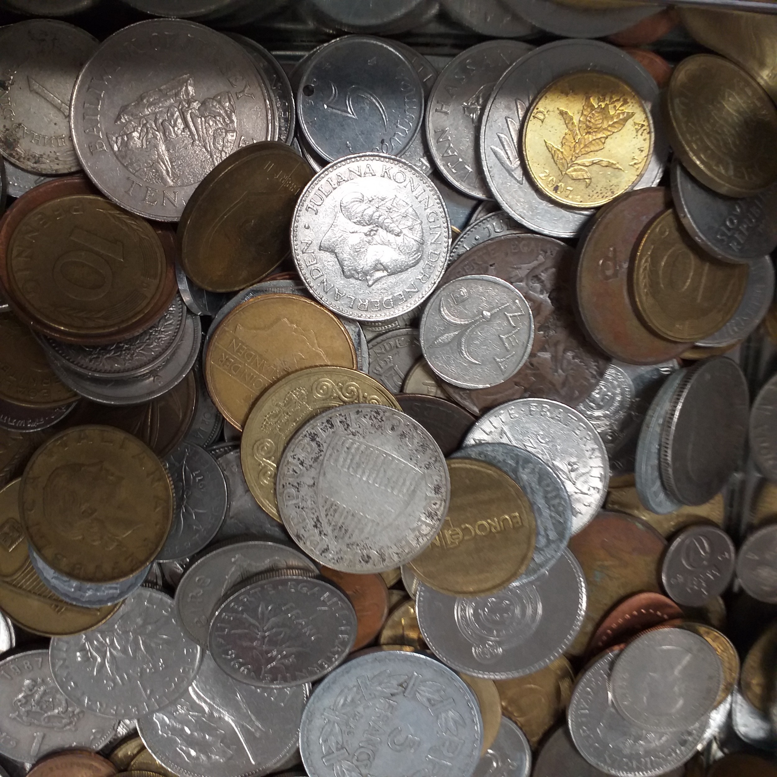 Tin of world coins - 2.5kg approimately