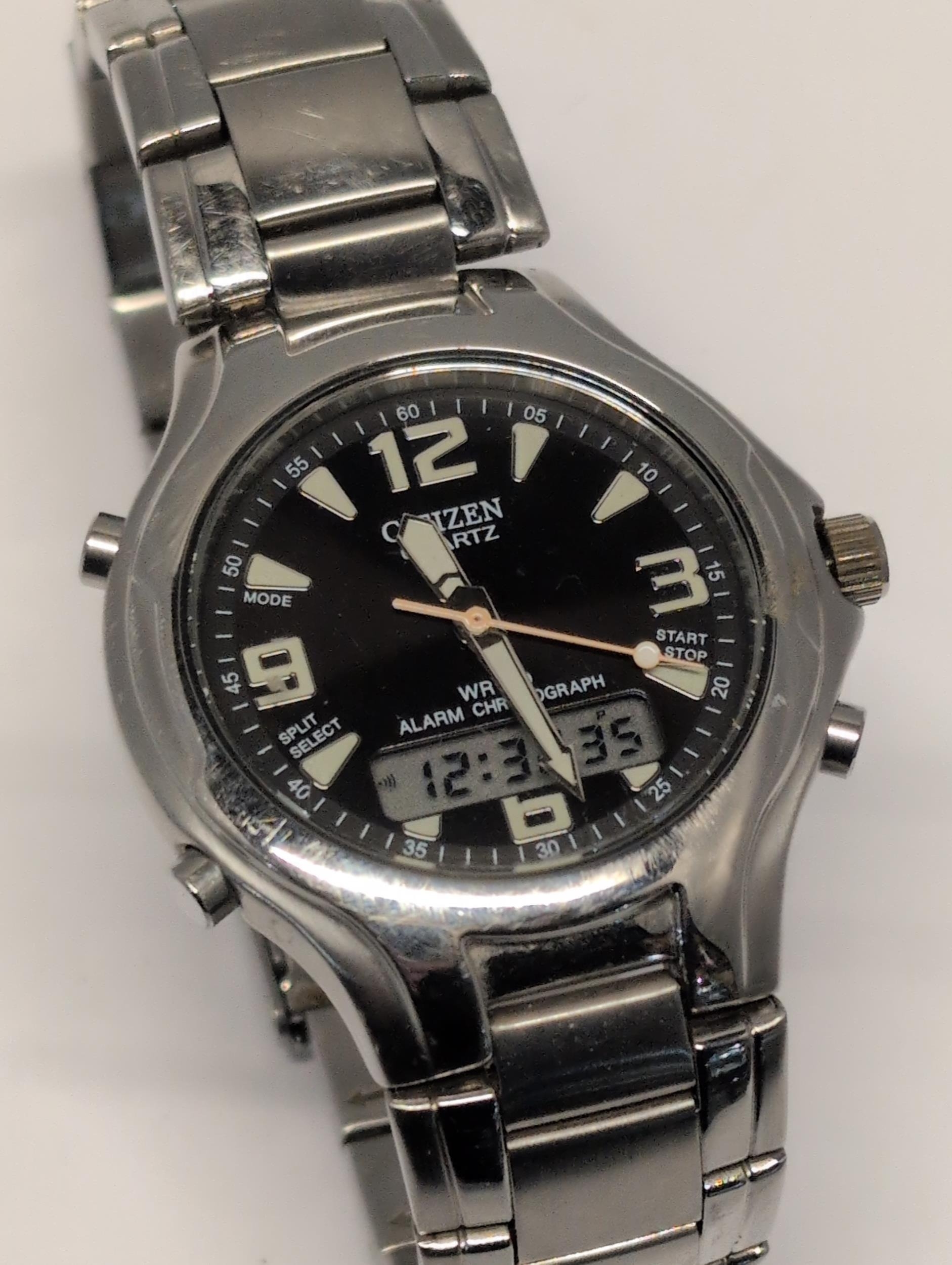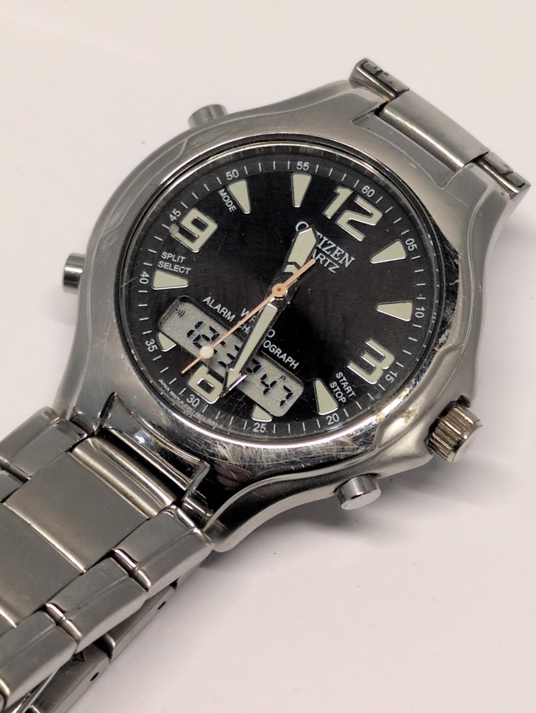 Citizen C201 Ana-Digi Alarm Chronograph Stainless Steel Wristwatch, Working