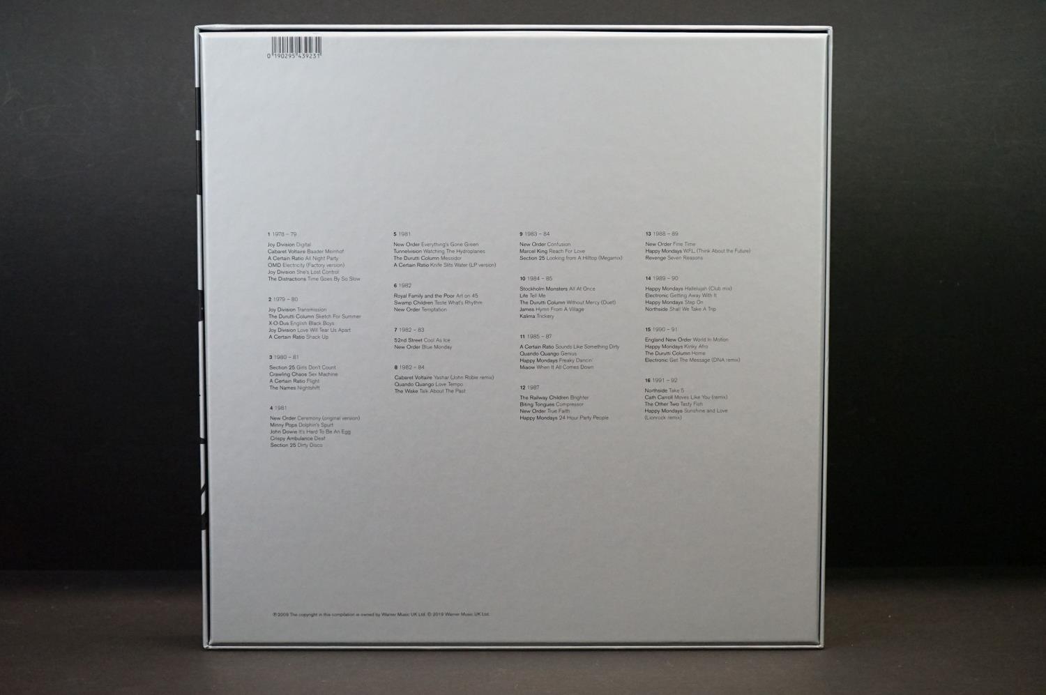 Vinyl - Various – Factory Communications 1978-92. 2019 UK 8 album box set + 40 page booklet on Warner Music 0190295663841 (Including : Joy Division, Cabaret Voltaire, OMD, A Certain Ratio, New Order, James, Happy Mondays and many more). EX
