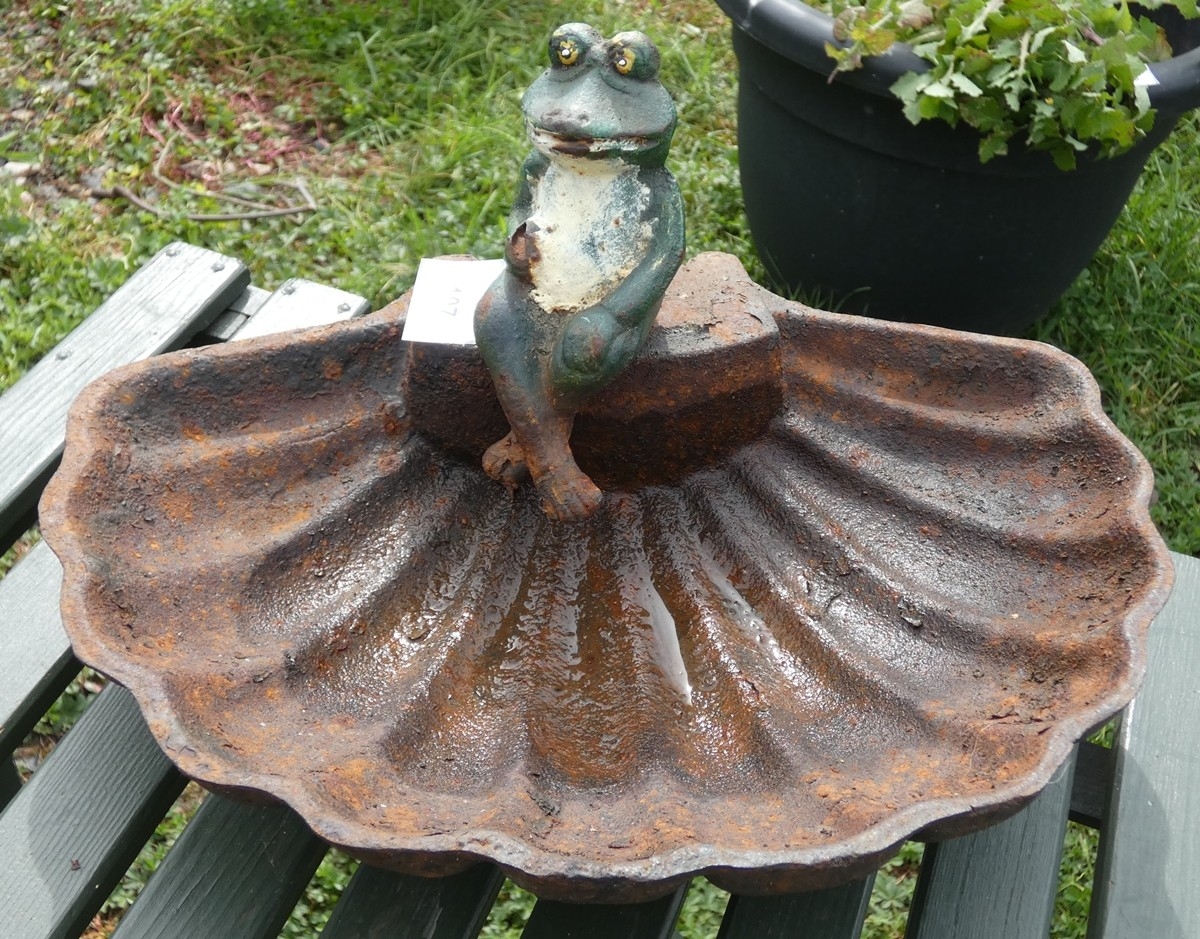Cast iron bird bath with sitting frog