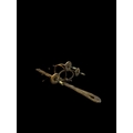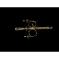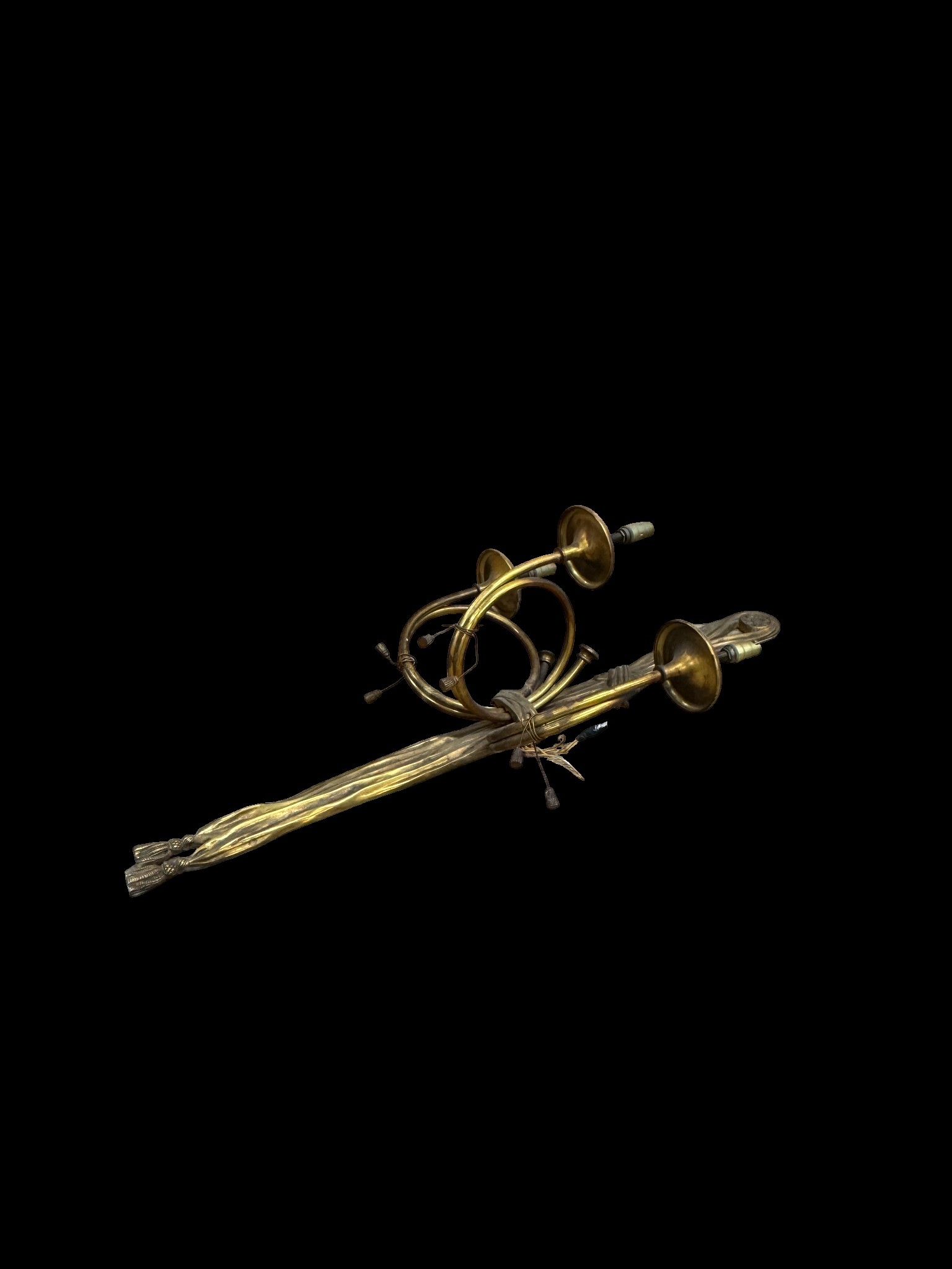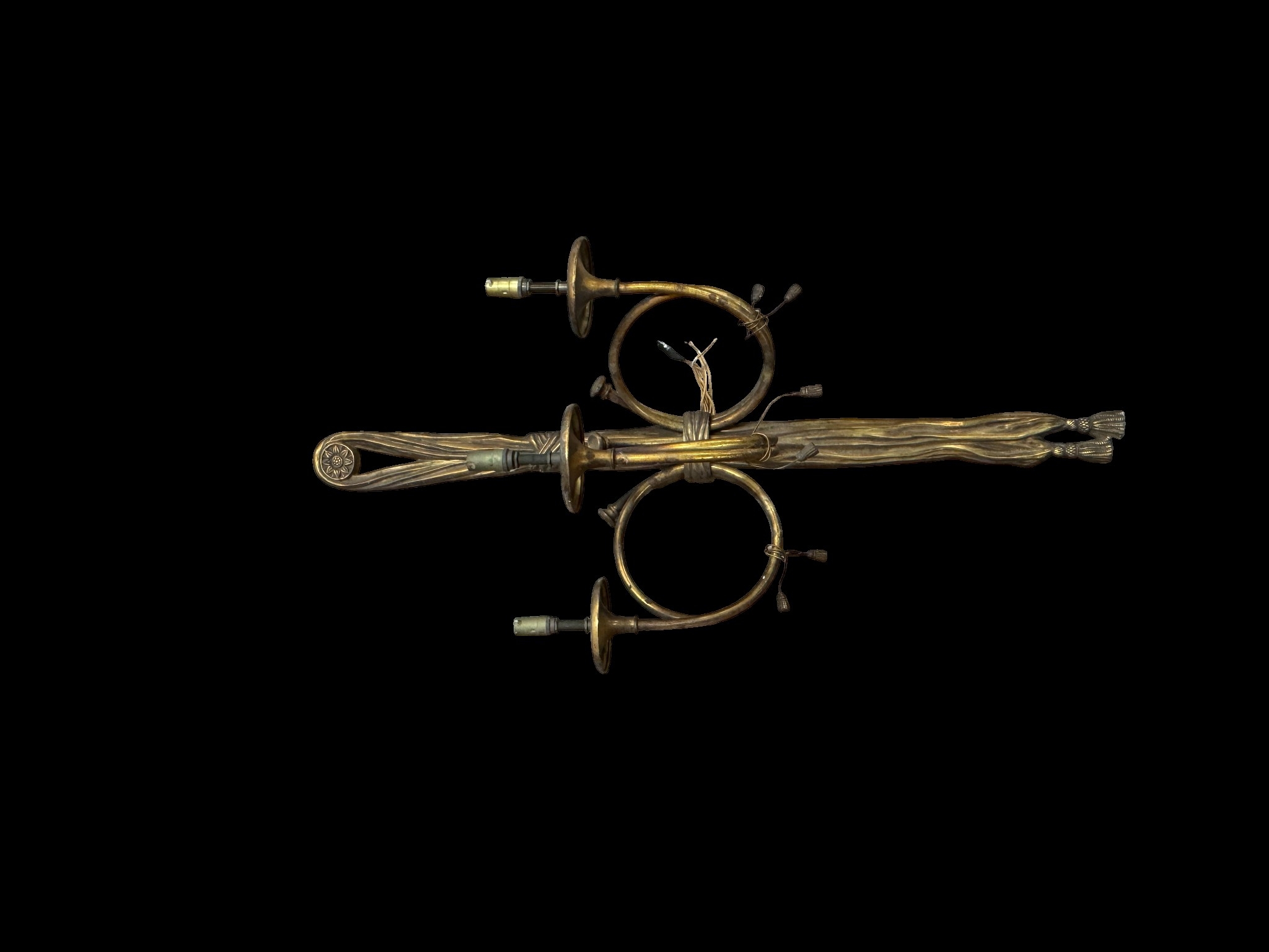 Large French bronze Neo-Classical wall light with three branch trumpet design lights, L 80cm